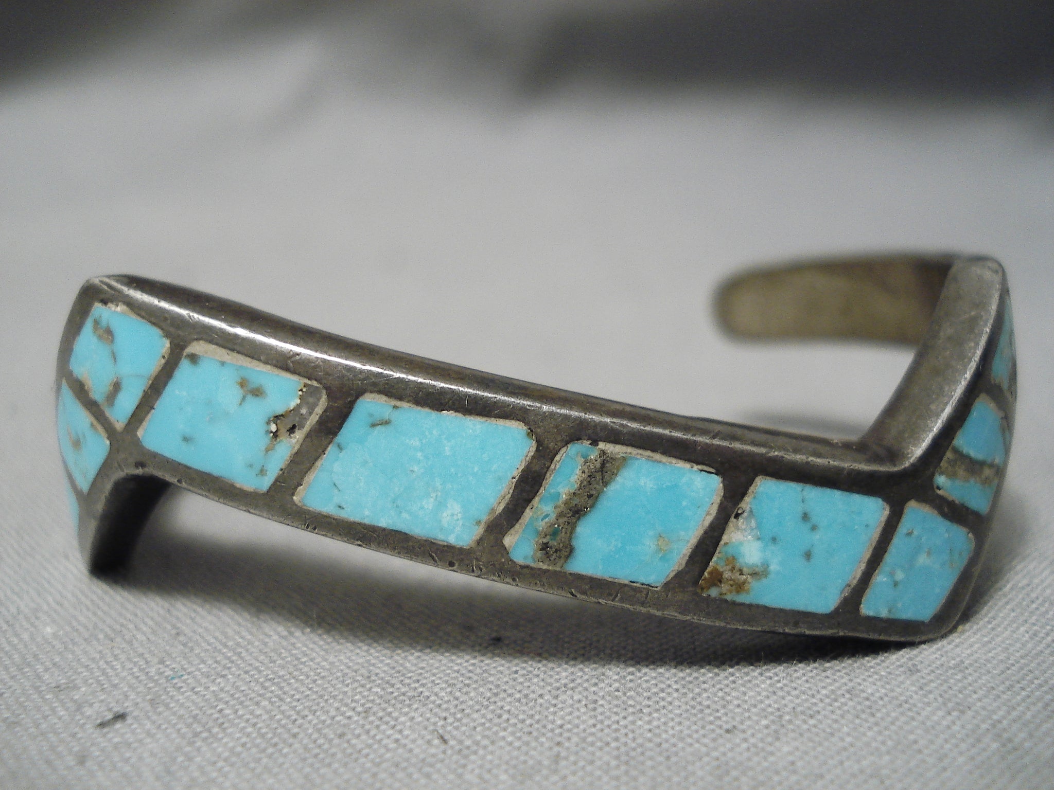 Rare Zig Zag Vintage Native American Navajo #8 Turquoise Sterling Silver Zig Zag Bracelet Old