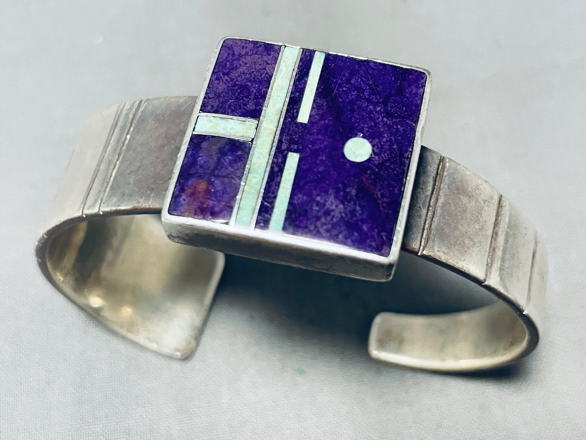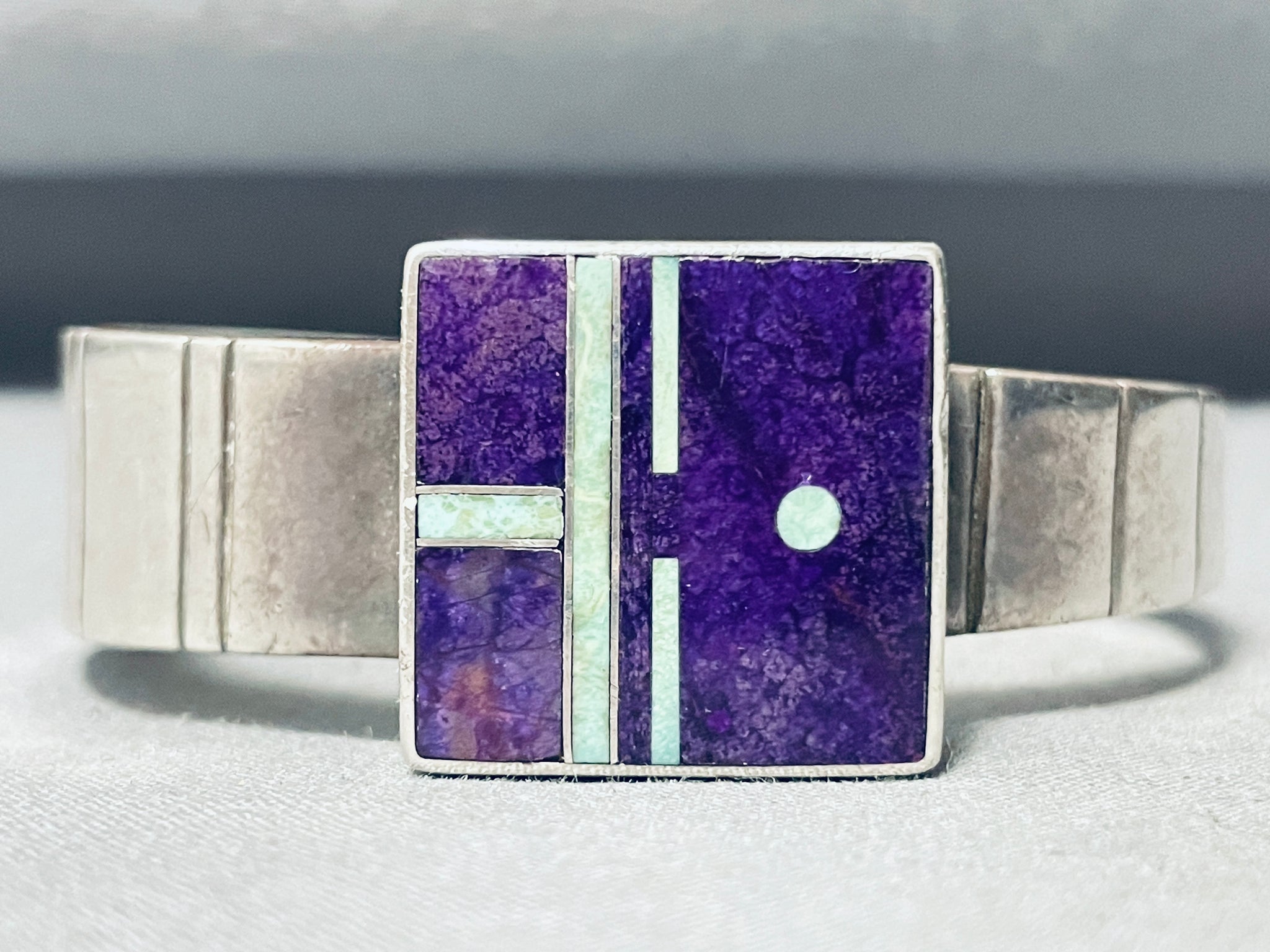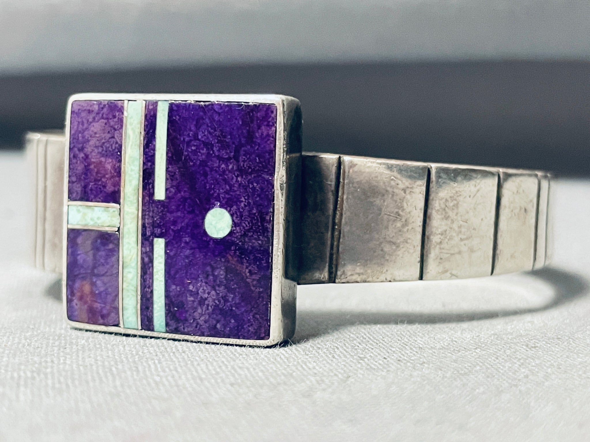 Ray Tracey Vintage Native American Navajo Sugulite Sterling Silver Inlay Bracelet