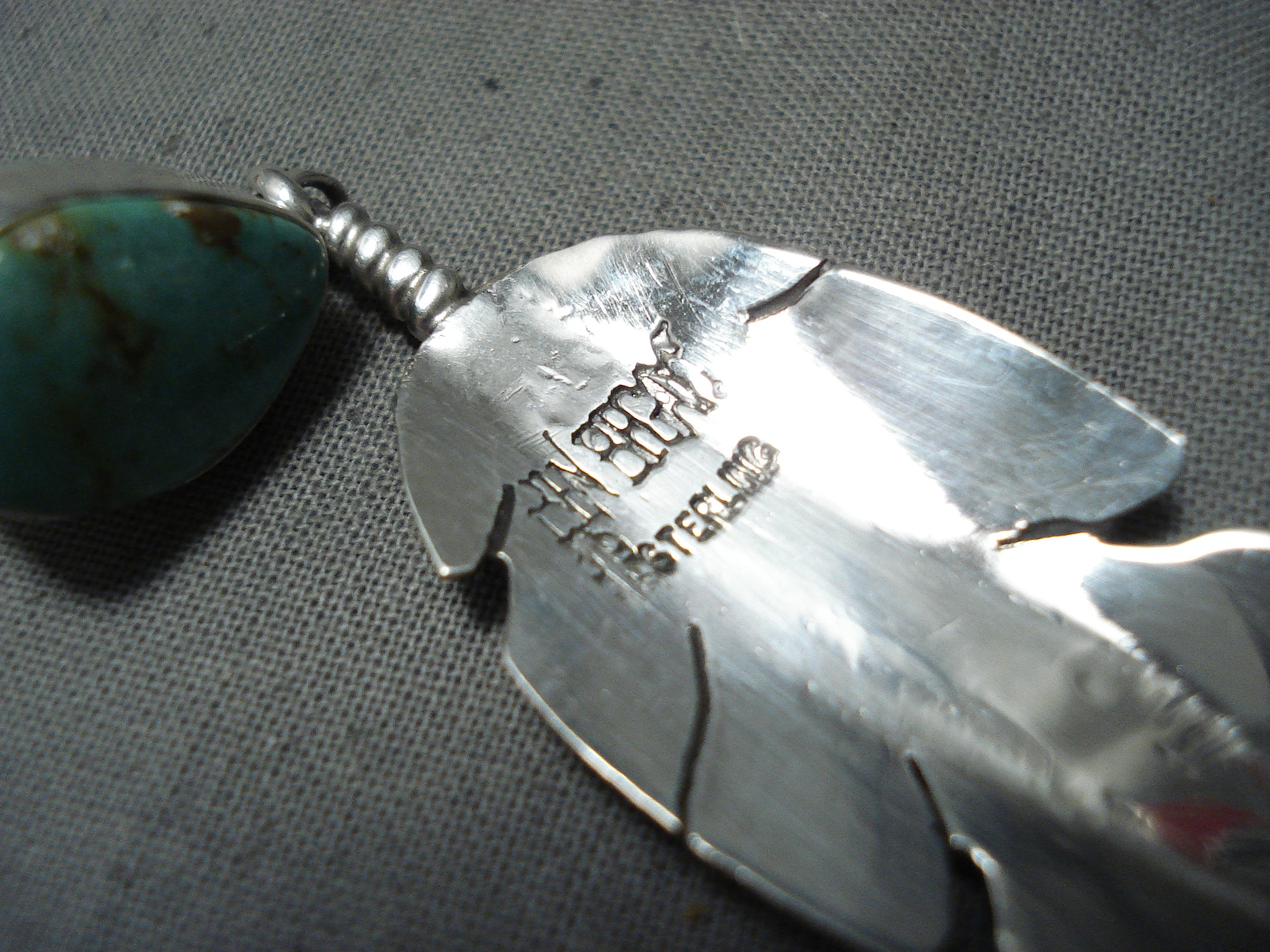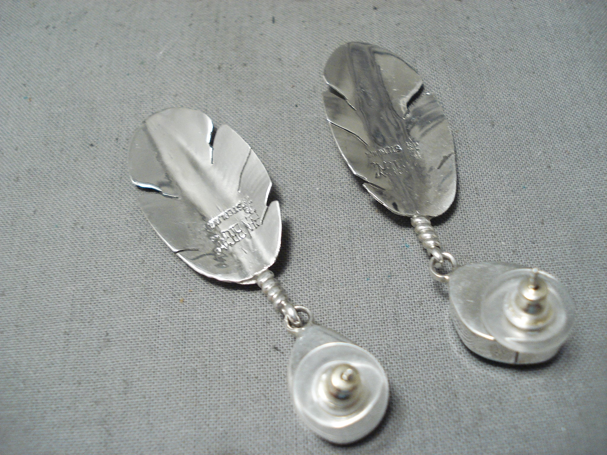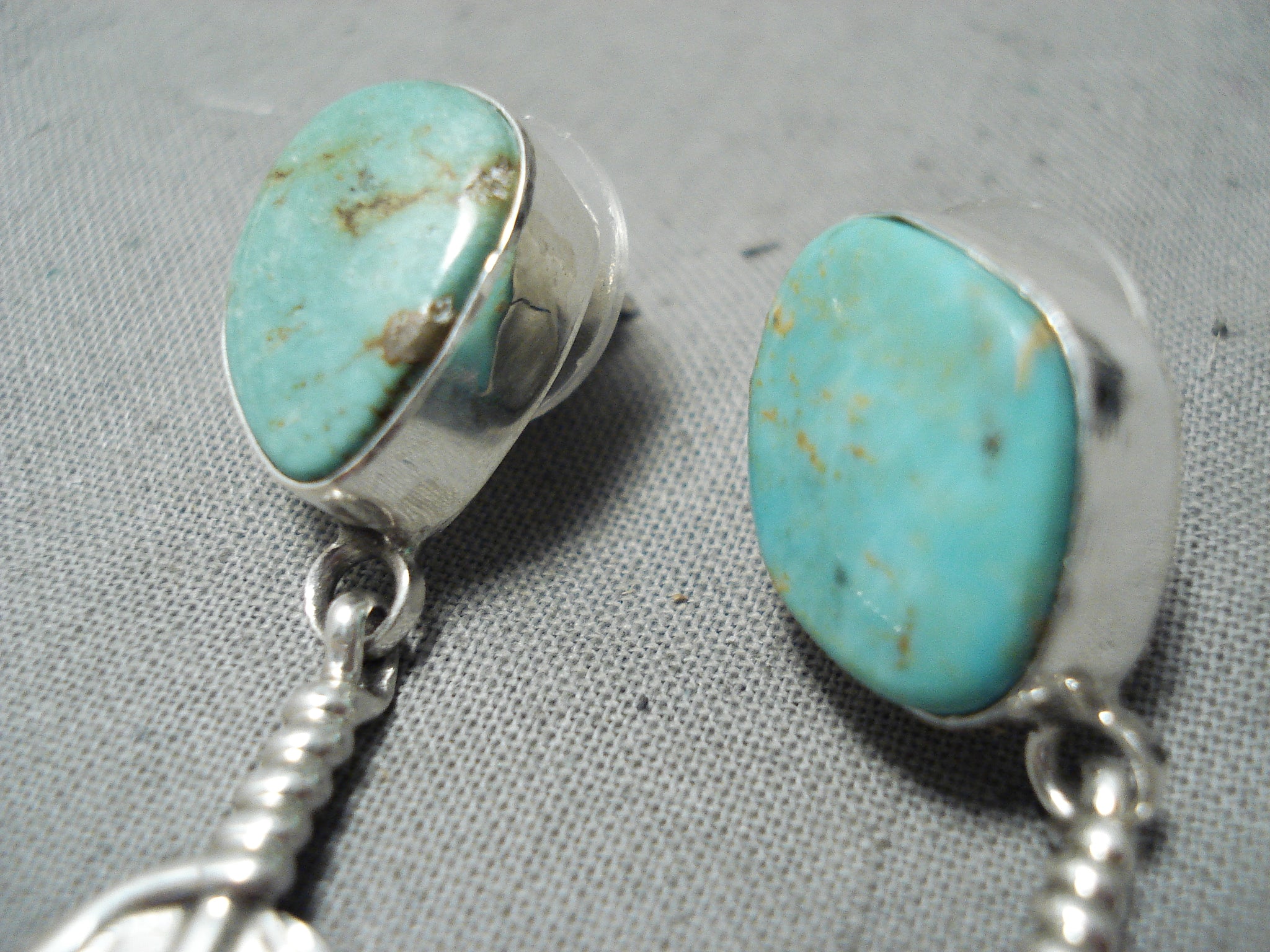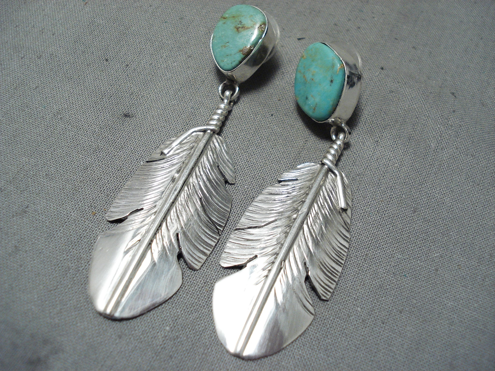 Remarkable Native American Navajo Royston Turquoise Sterling Silver Feather Earrings