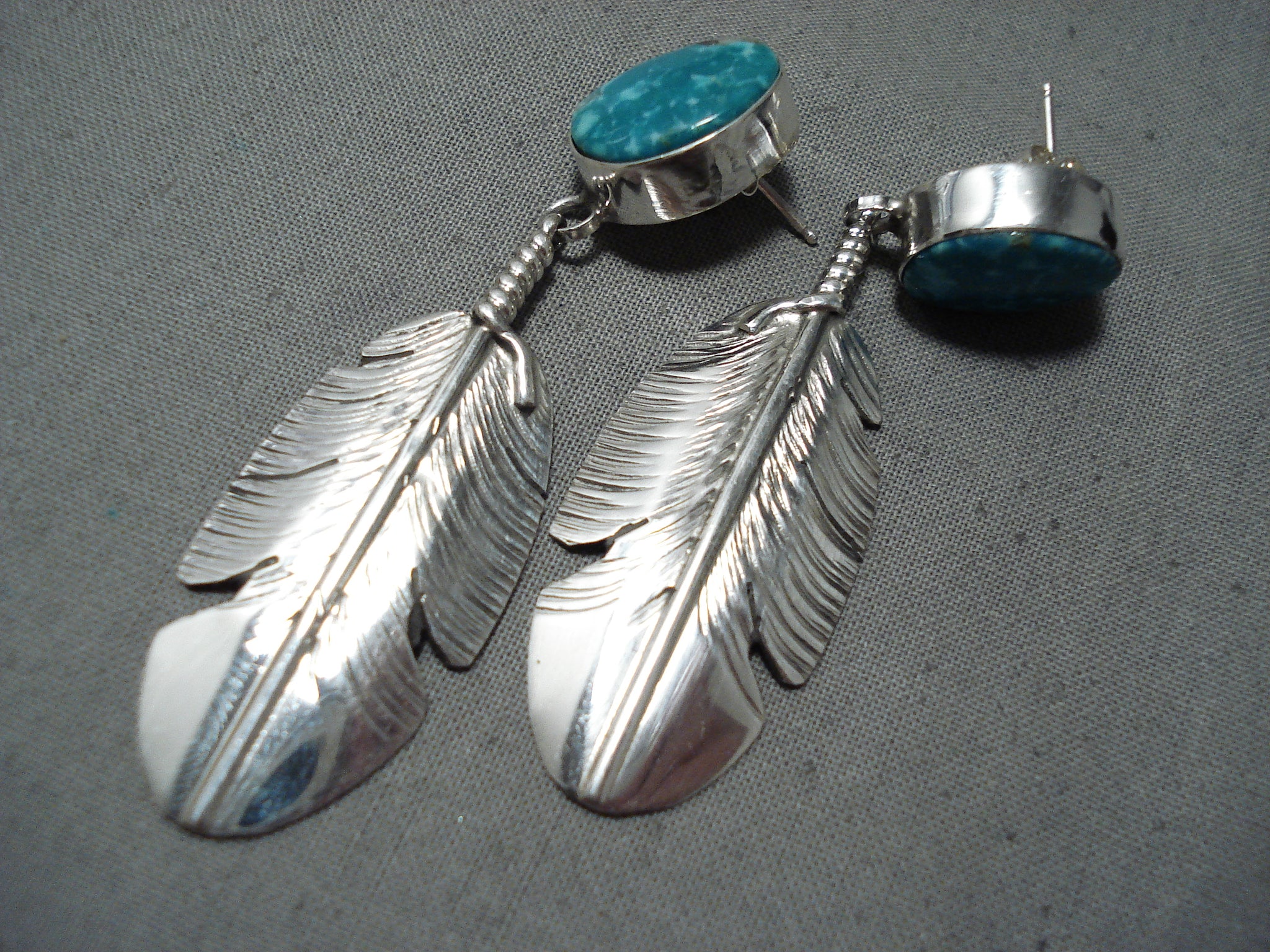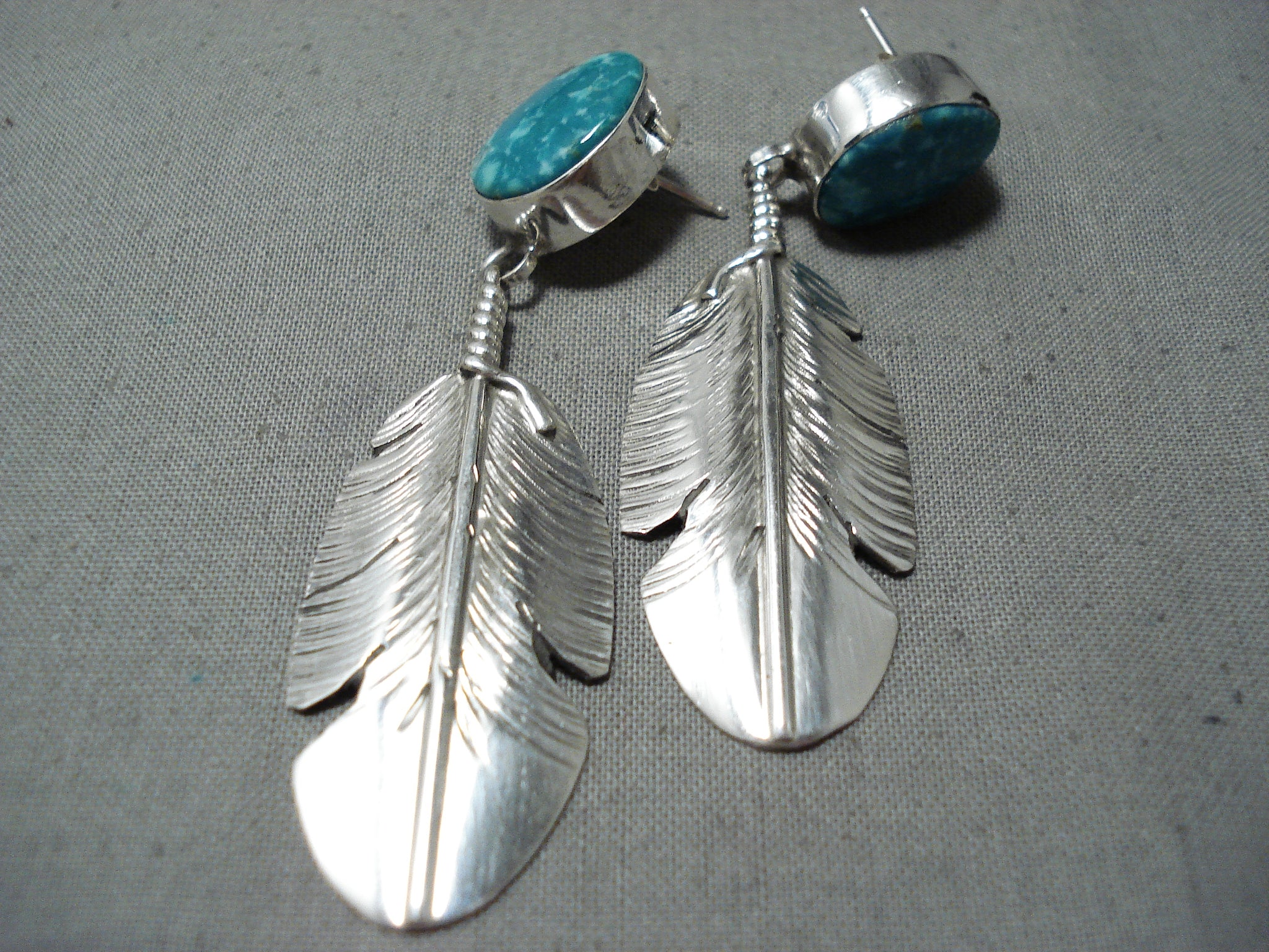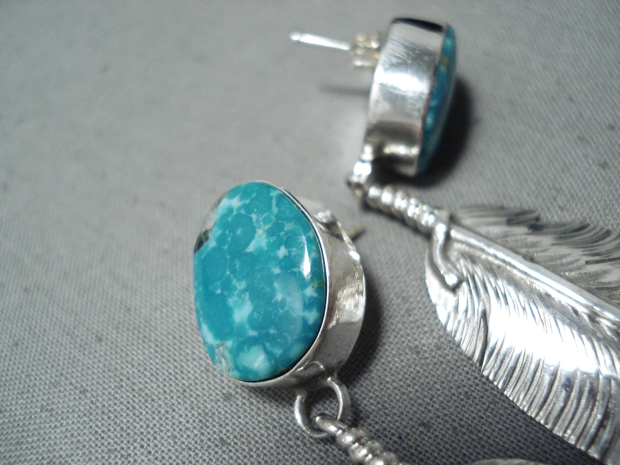Remarkable Navajo Kingman Turquoise Sterling Silver Earrings Native American