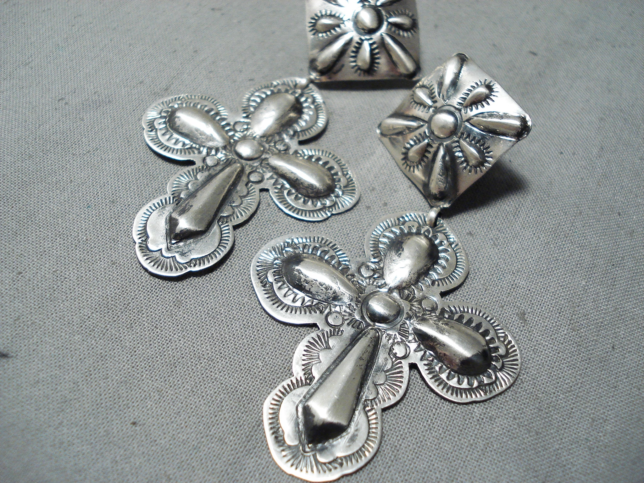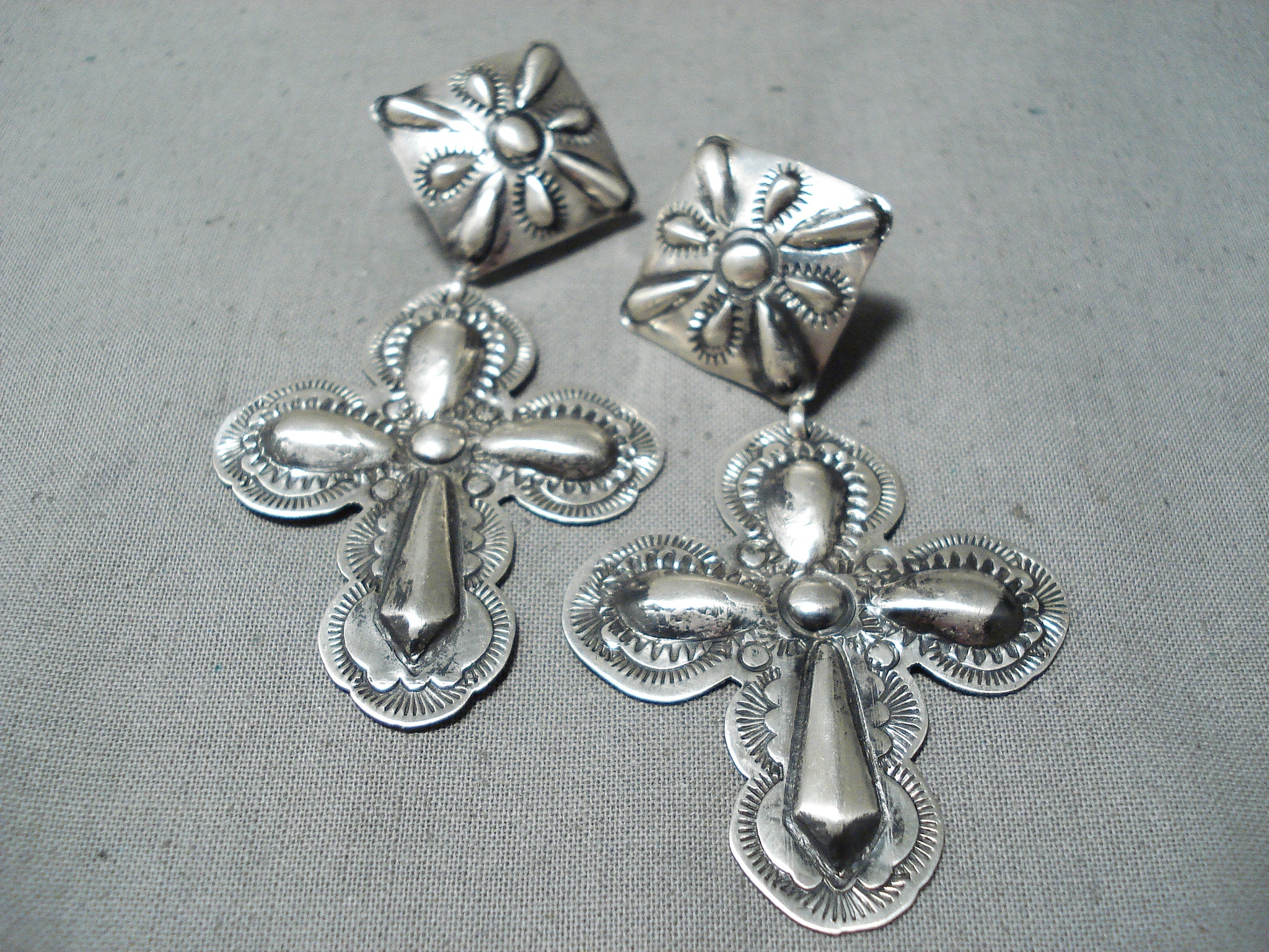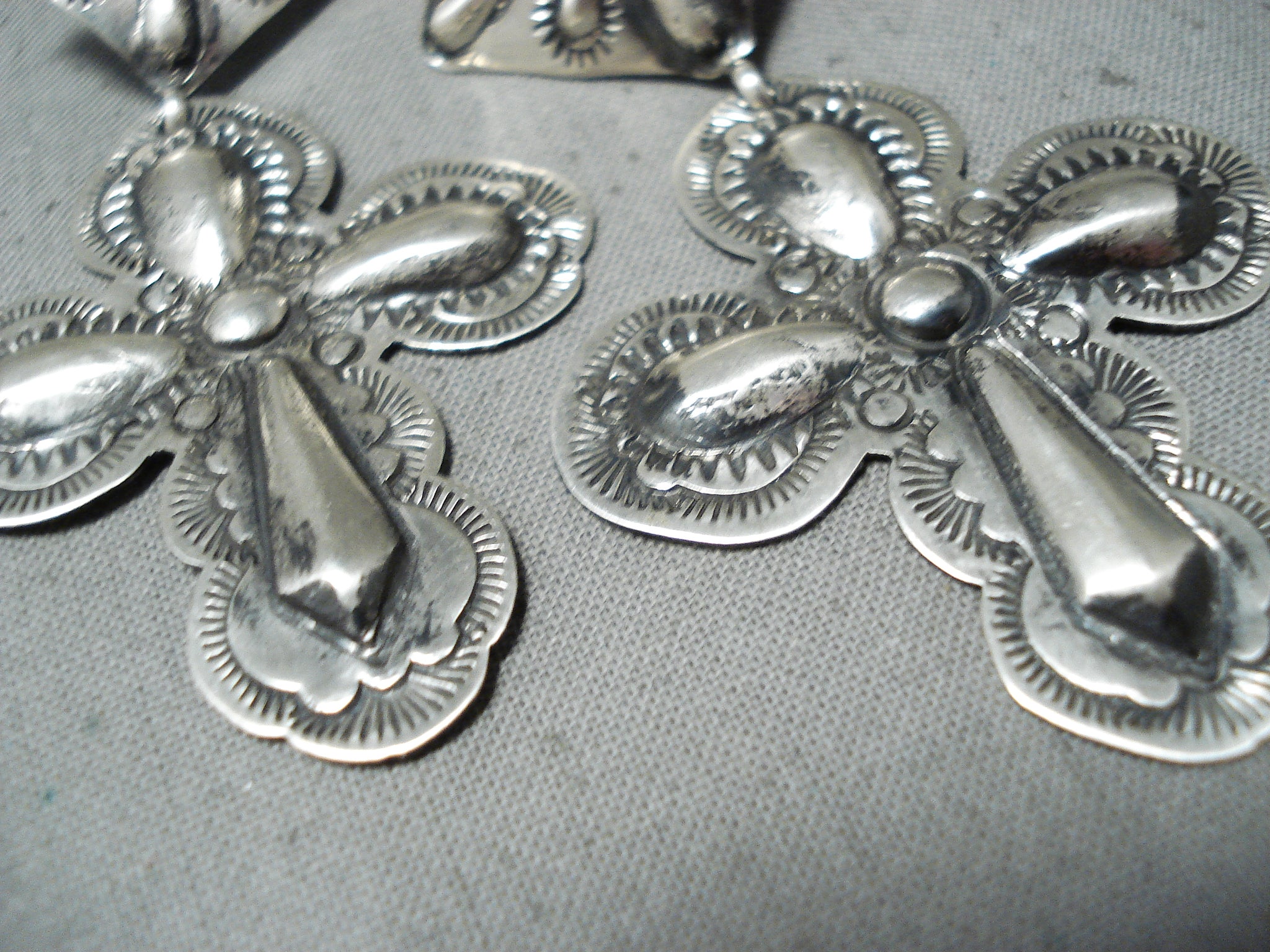 Remarkable Navajo Sterling Silver Cross Earrings Native American