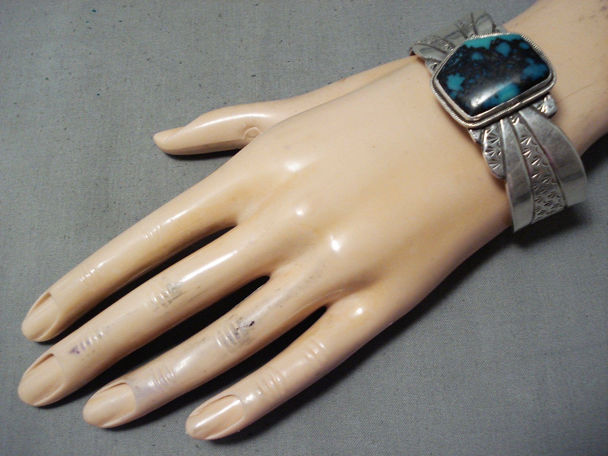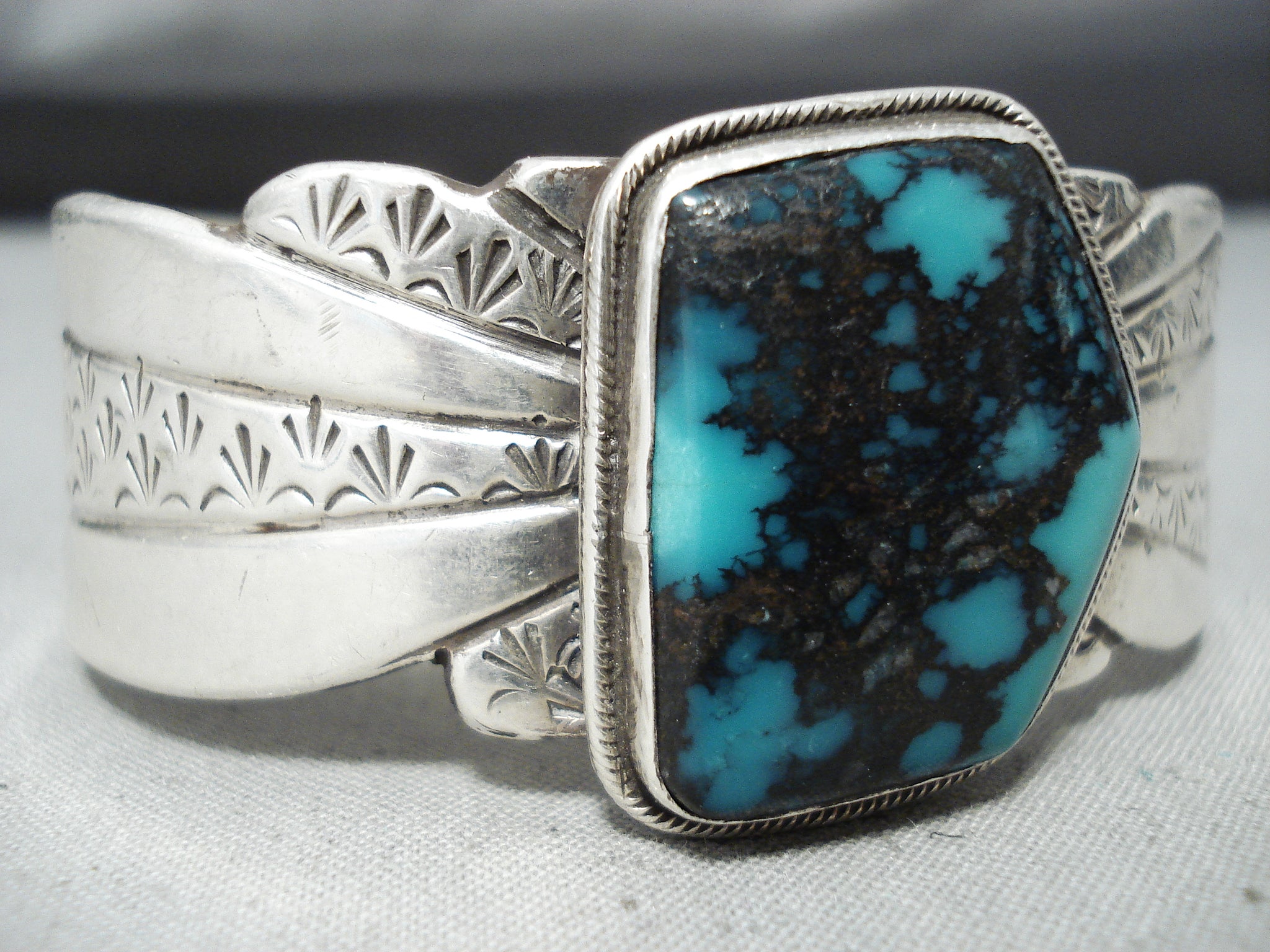 Rich Jim Native American Navajo Turquoise Mountain Turquoise Sterling Silver Bracelet