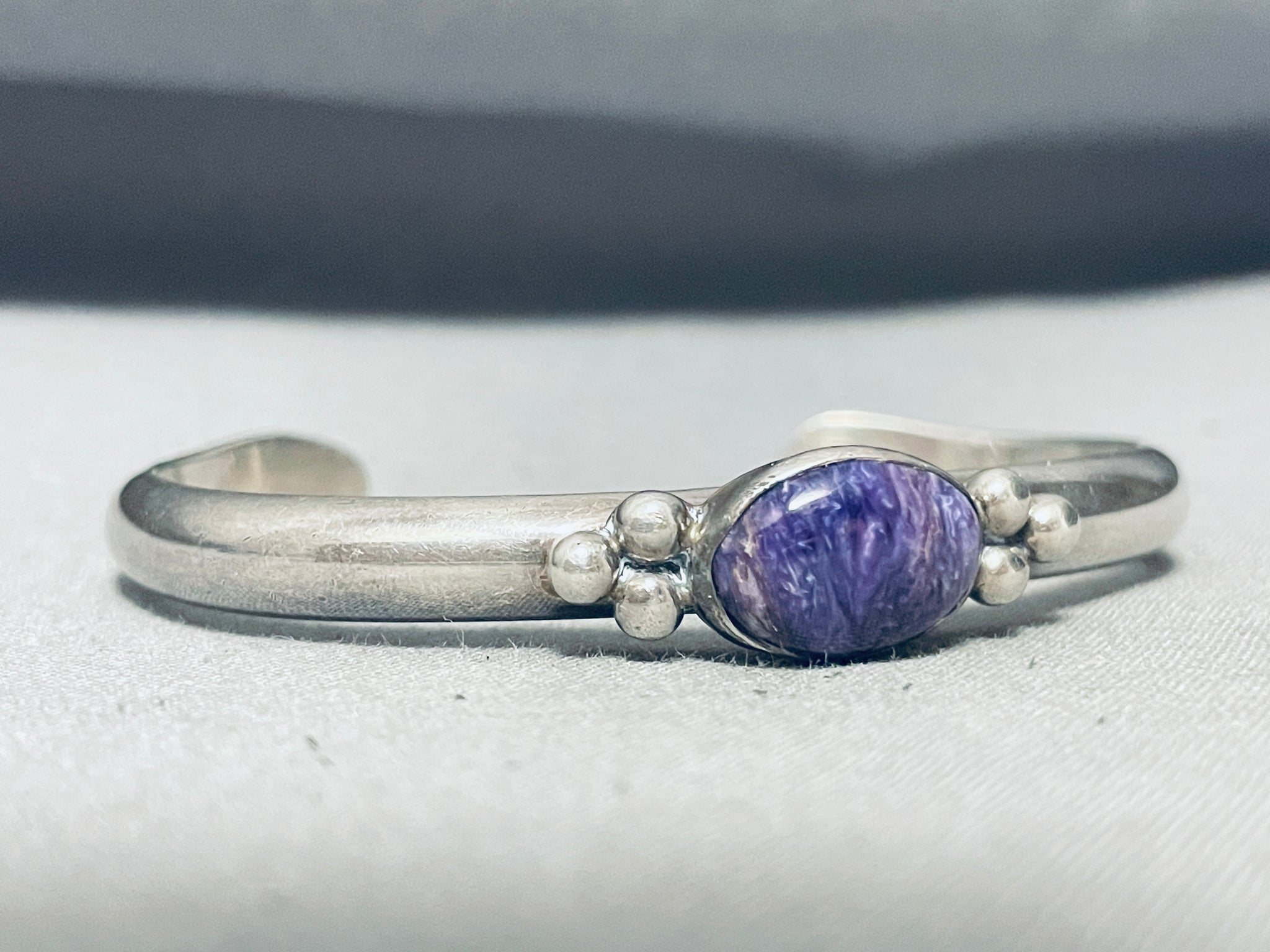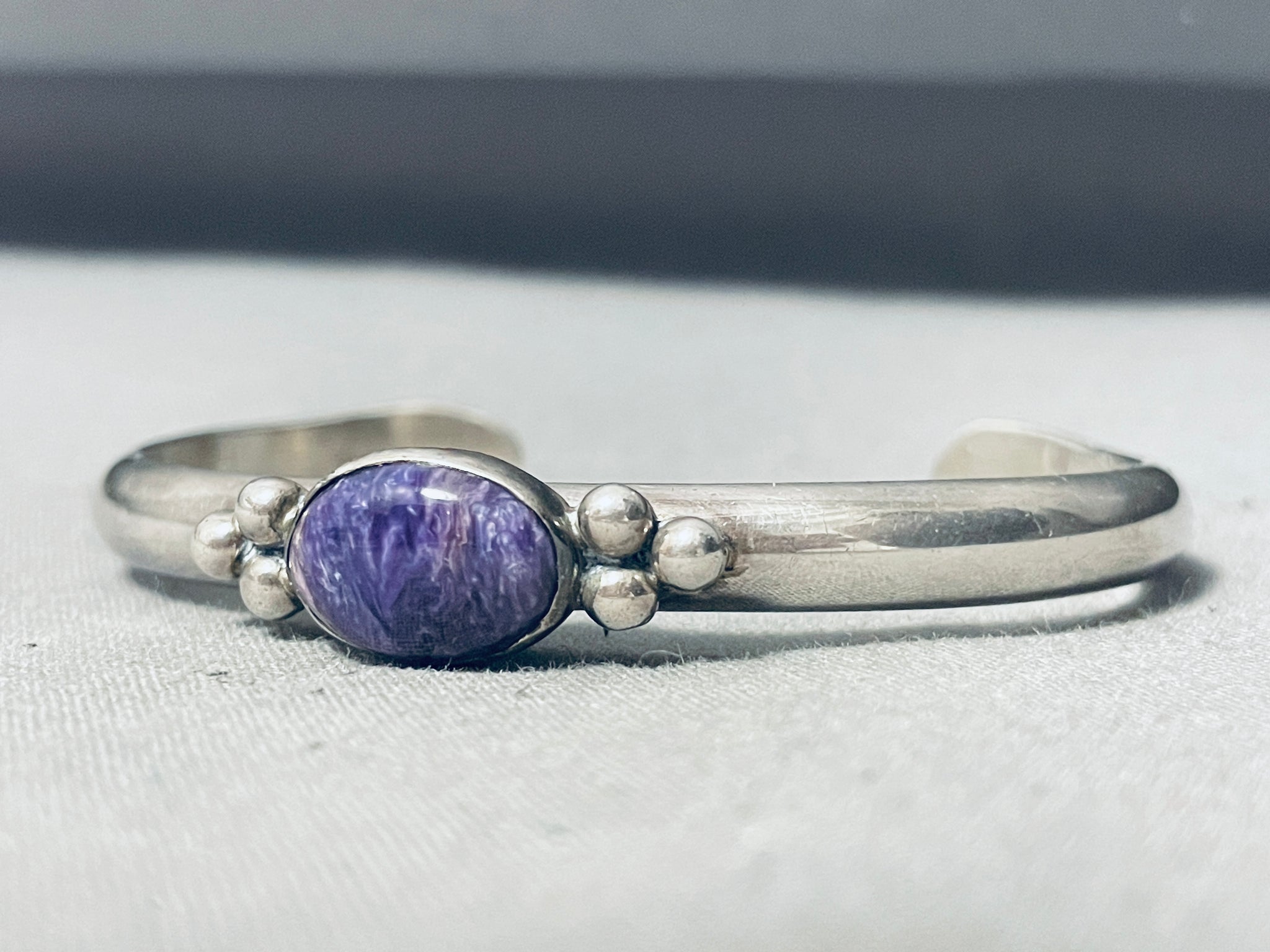 Robby Johnson Vintage Native American Navajo Charoite Sterling Silver Bracelet Cuff