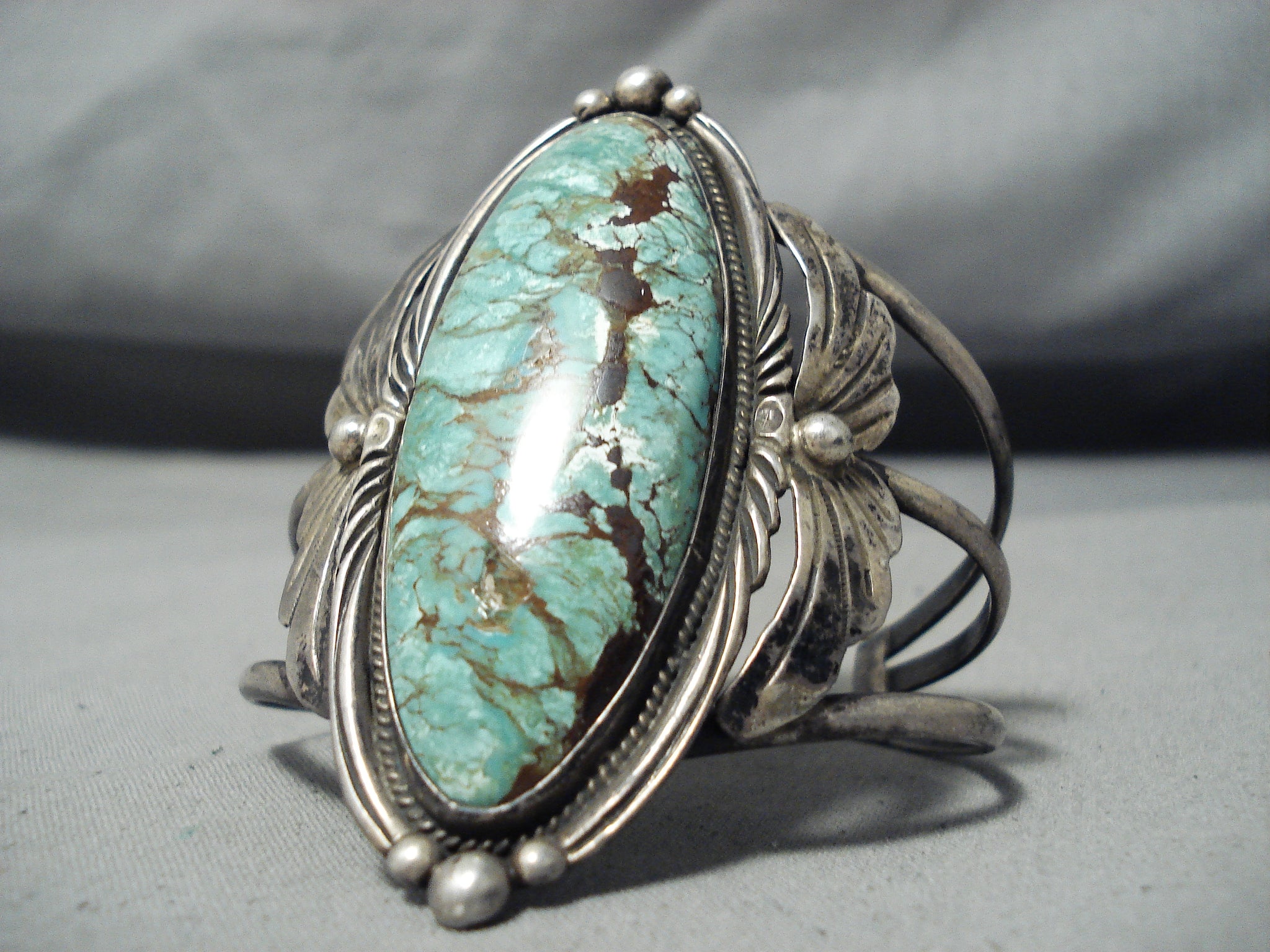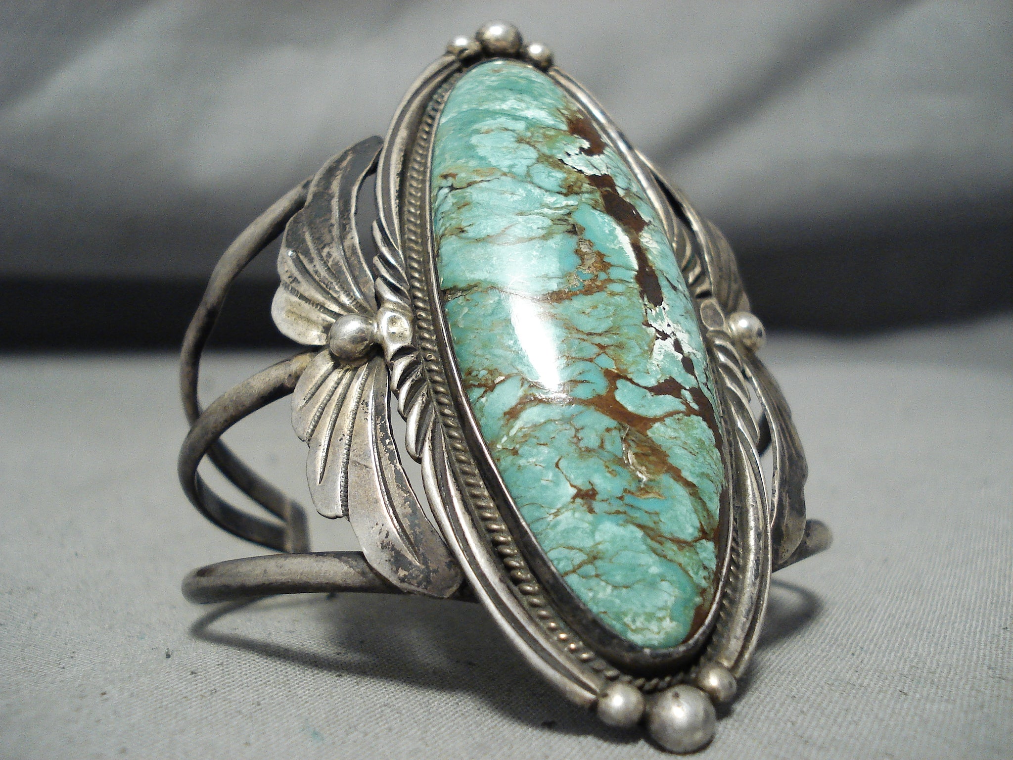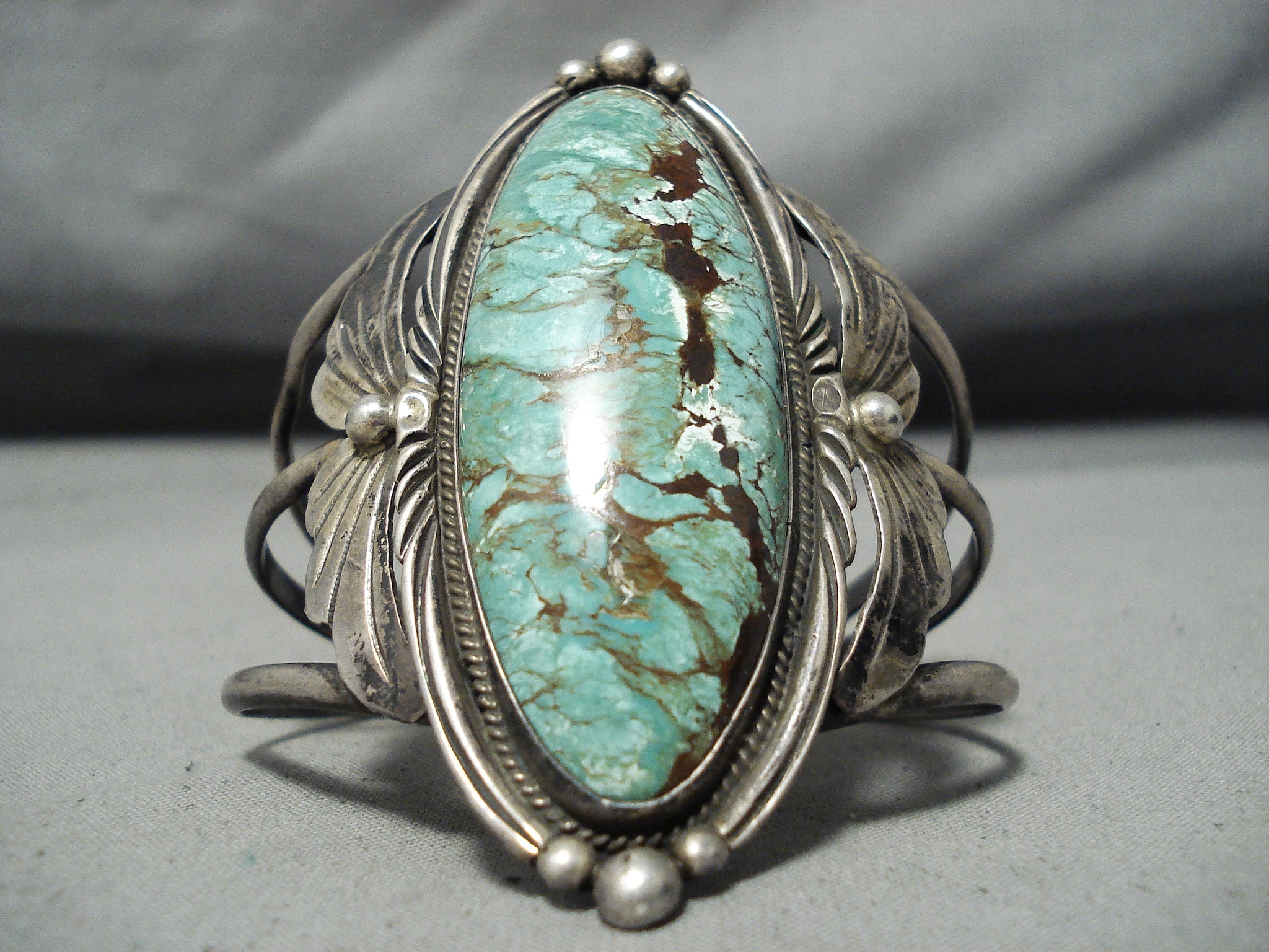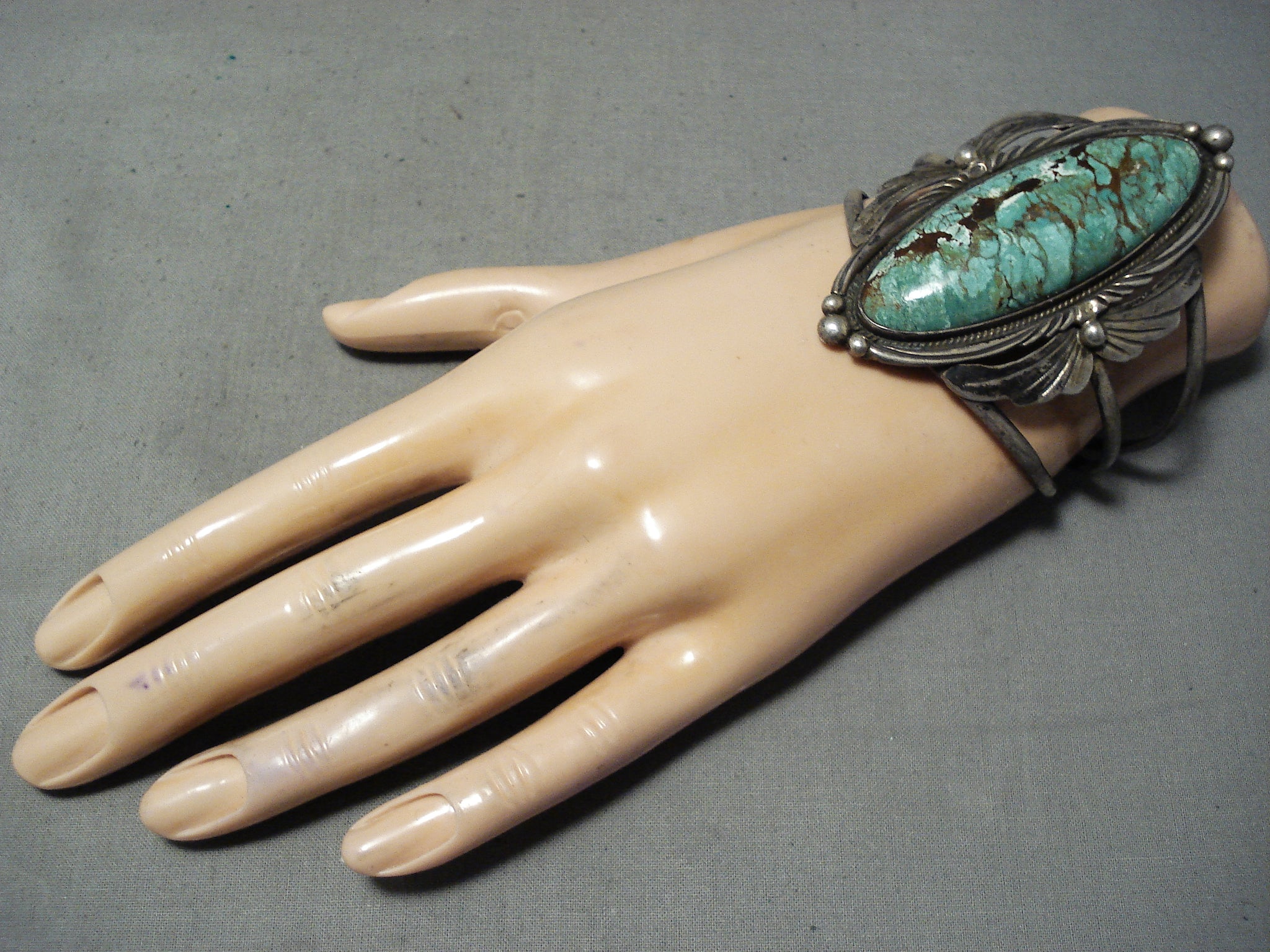 Robert Nez Vintage Native American Navajo Green Turquoise Sterling Silver Bracelet Old