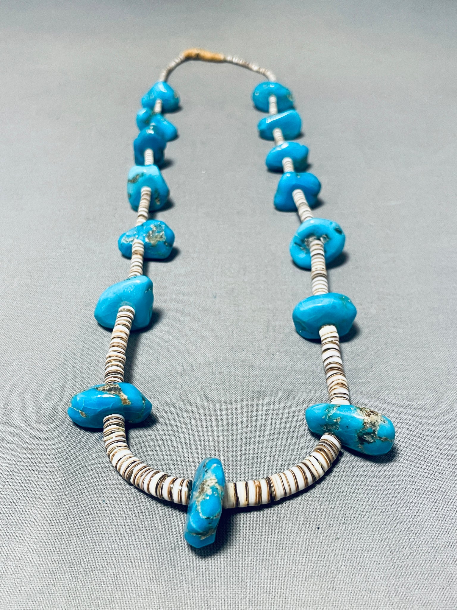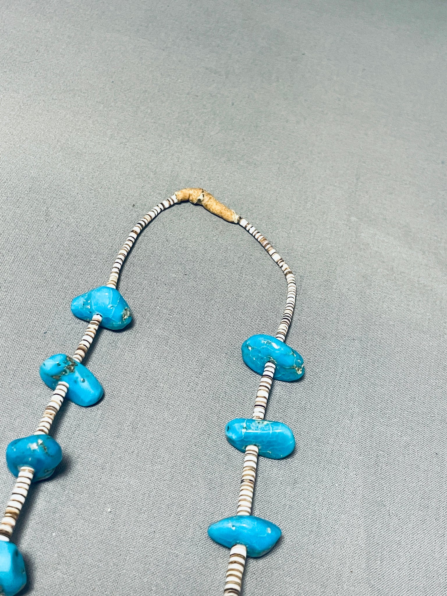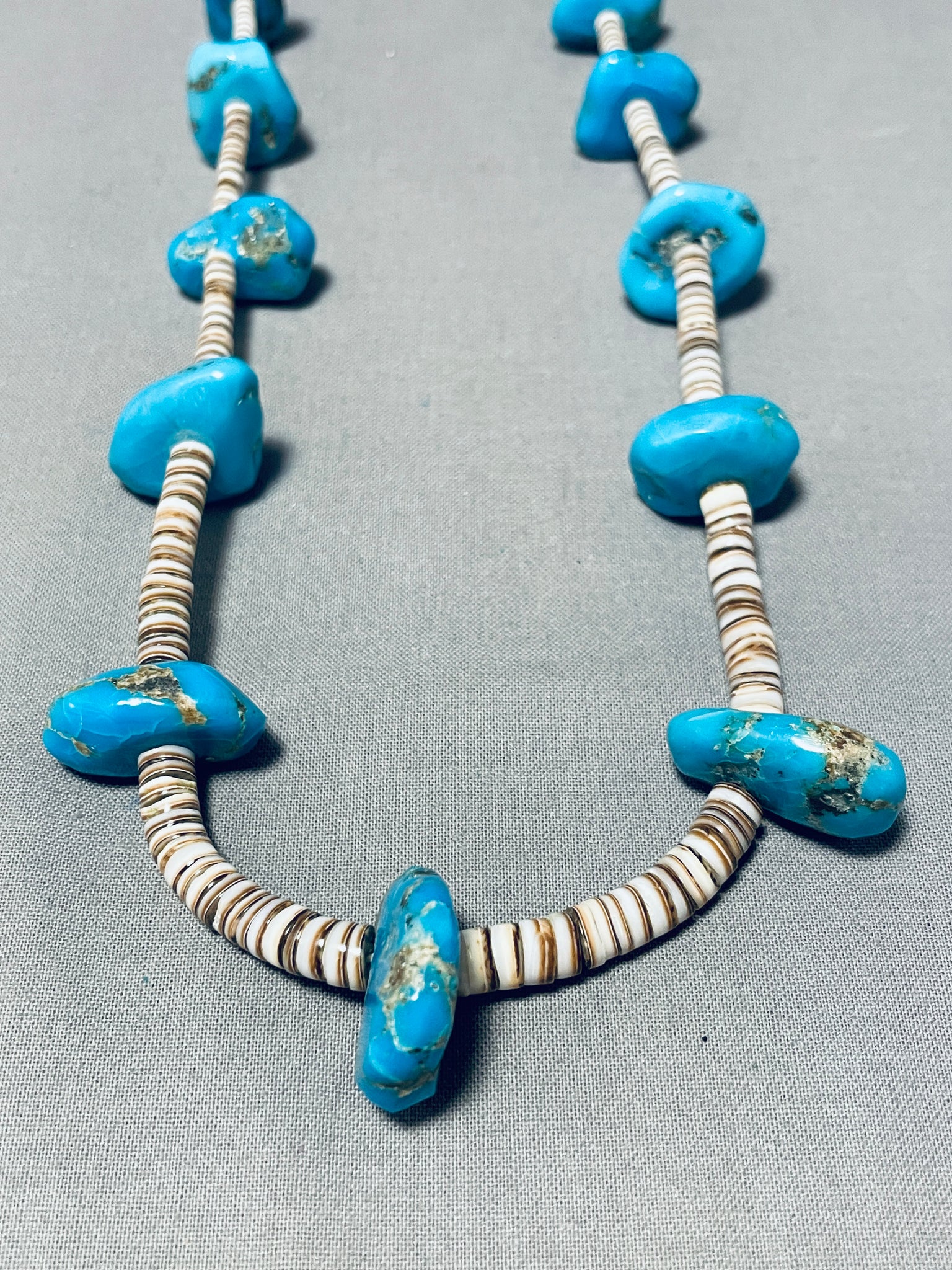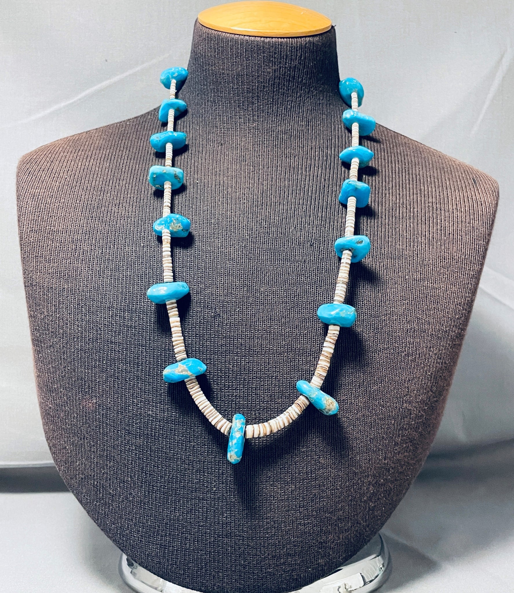 Sensational Native American Navajo Large Kingman Turquoise Heishi Necklace