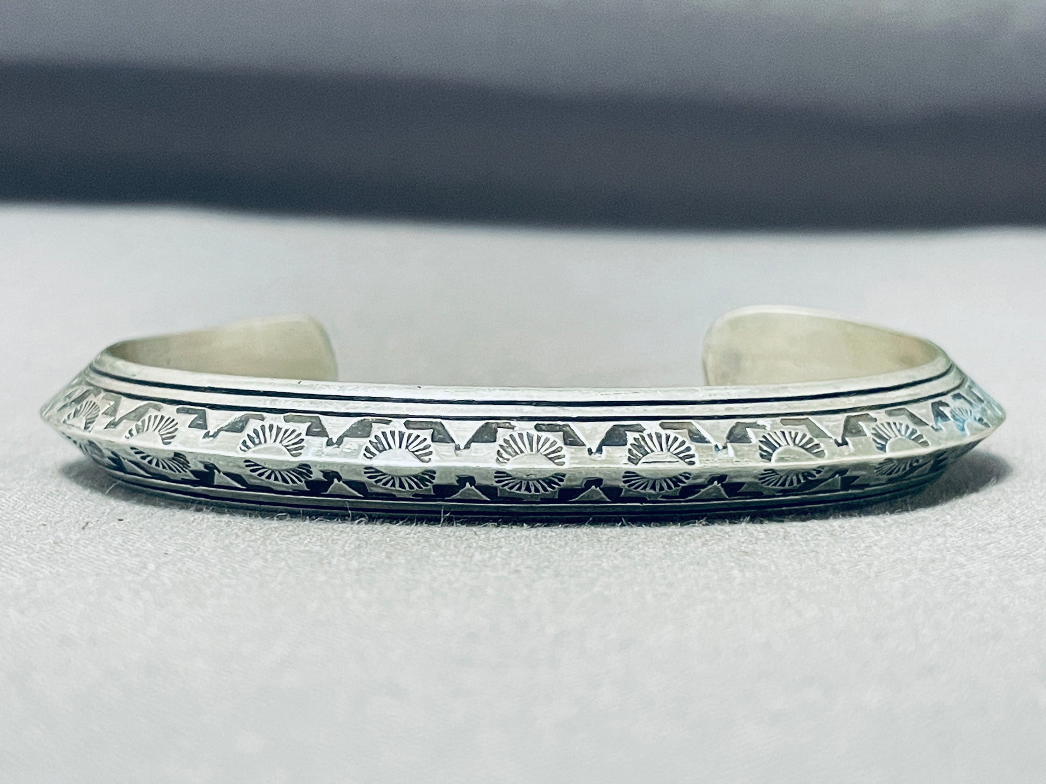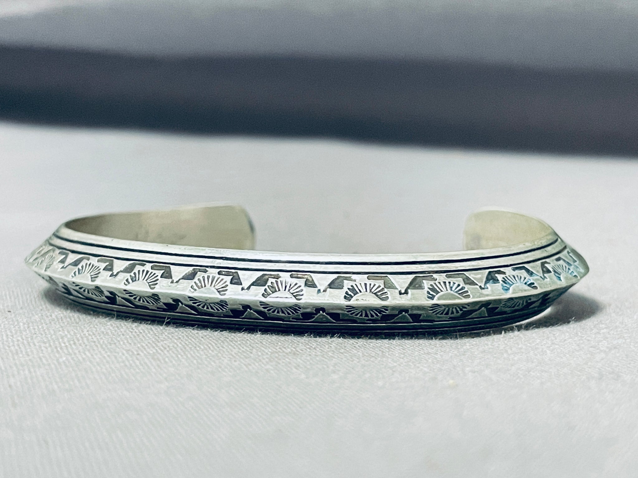 Sensational Native American Navajo Signed Sterling Silver Handstamped Bracelet