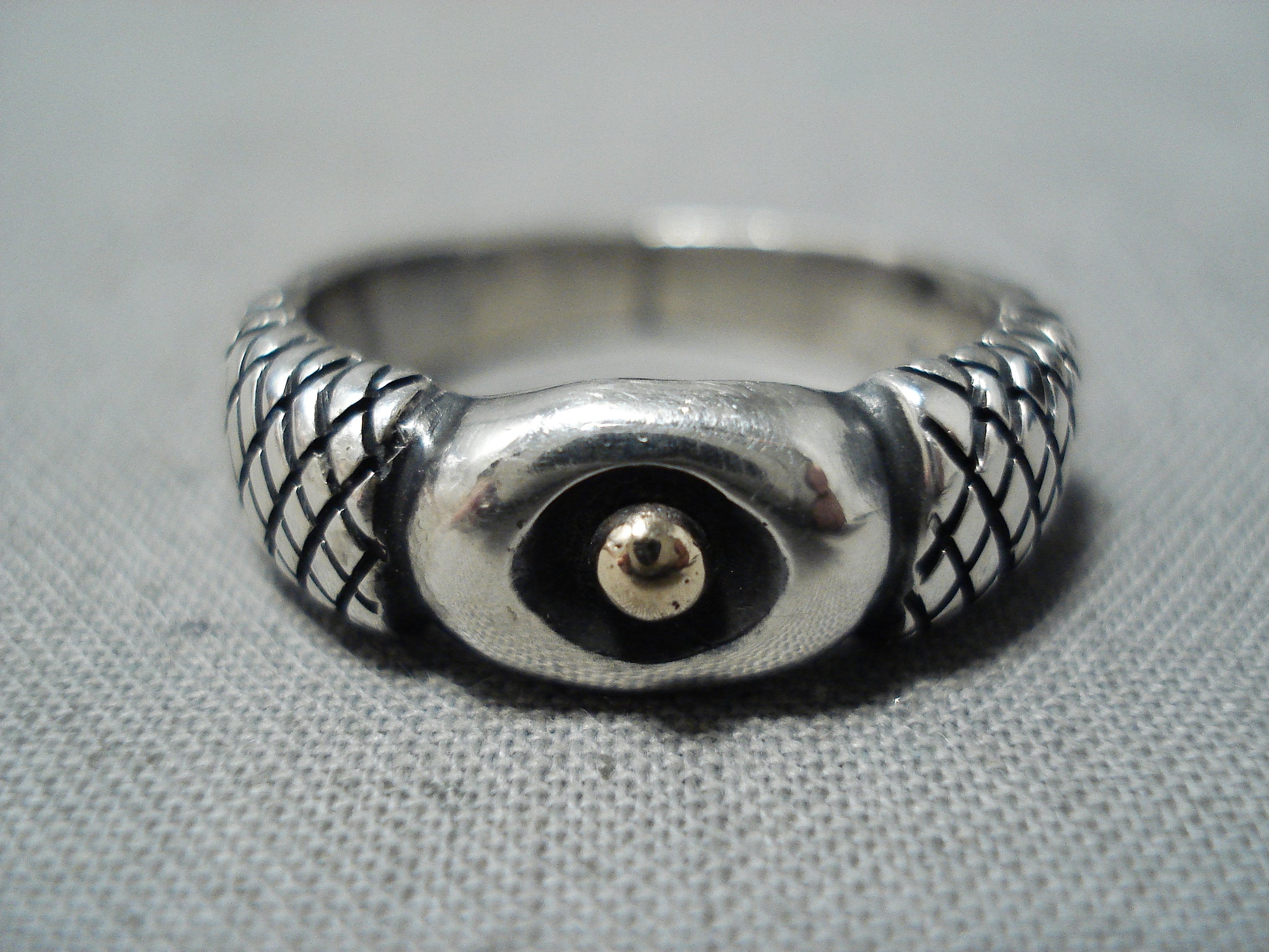 Sensational Navajo Sterling Silver & 14k Gold Band Ring Native American
