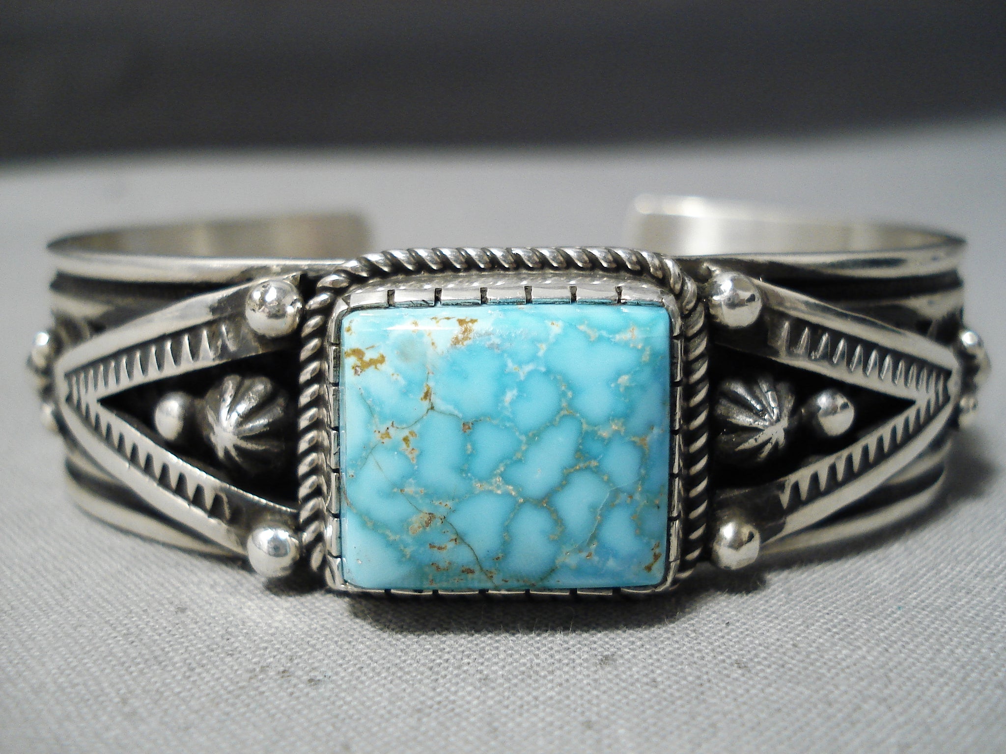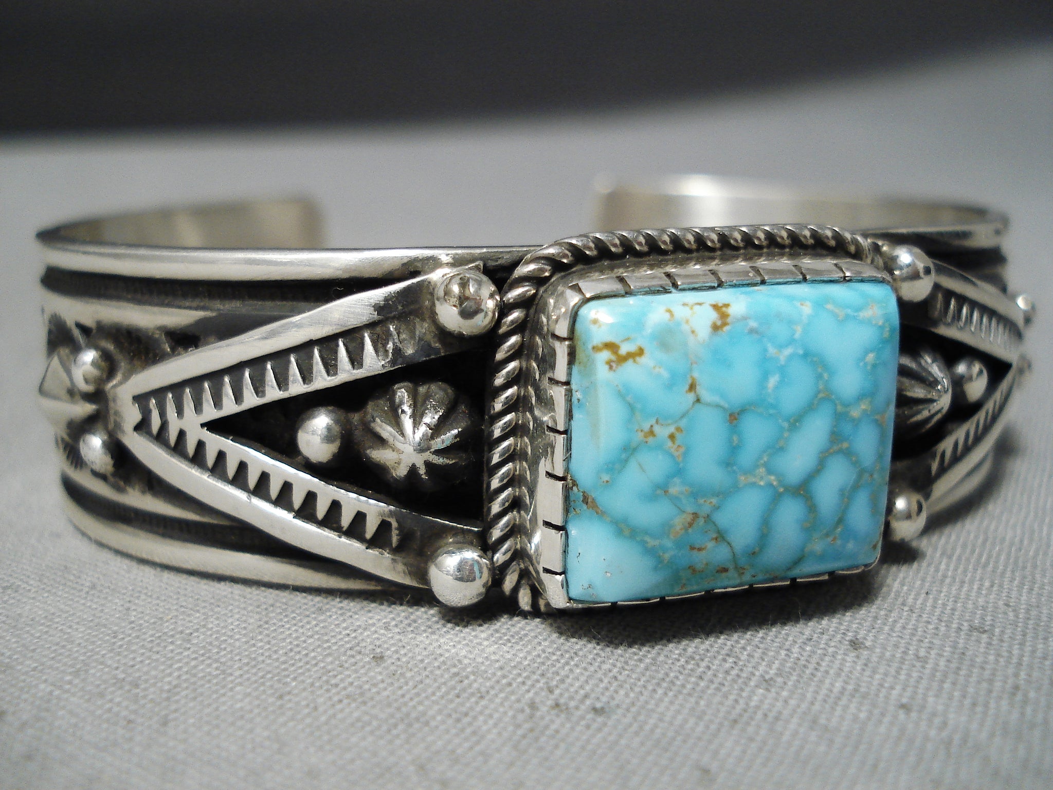 Sensational Vintage Native American Navajo Albert Jake Turquoise Sterling Silver Bracelet