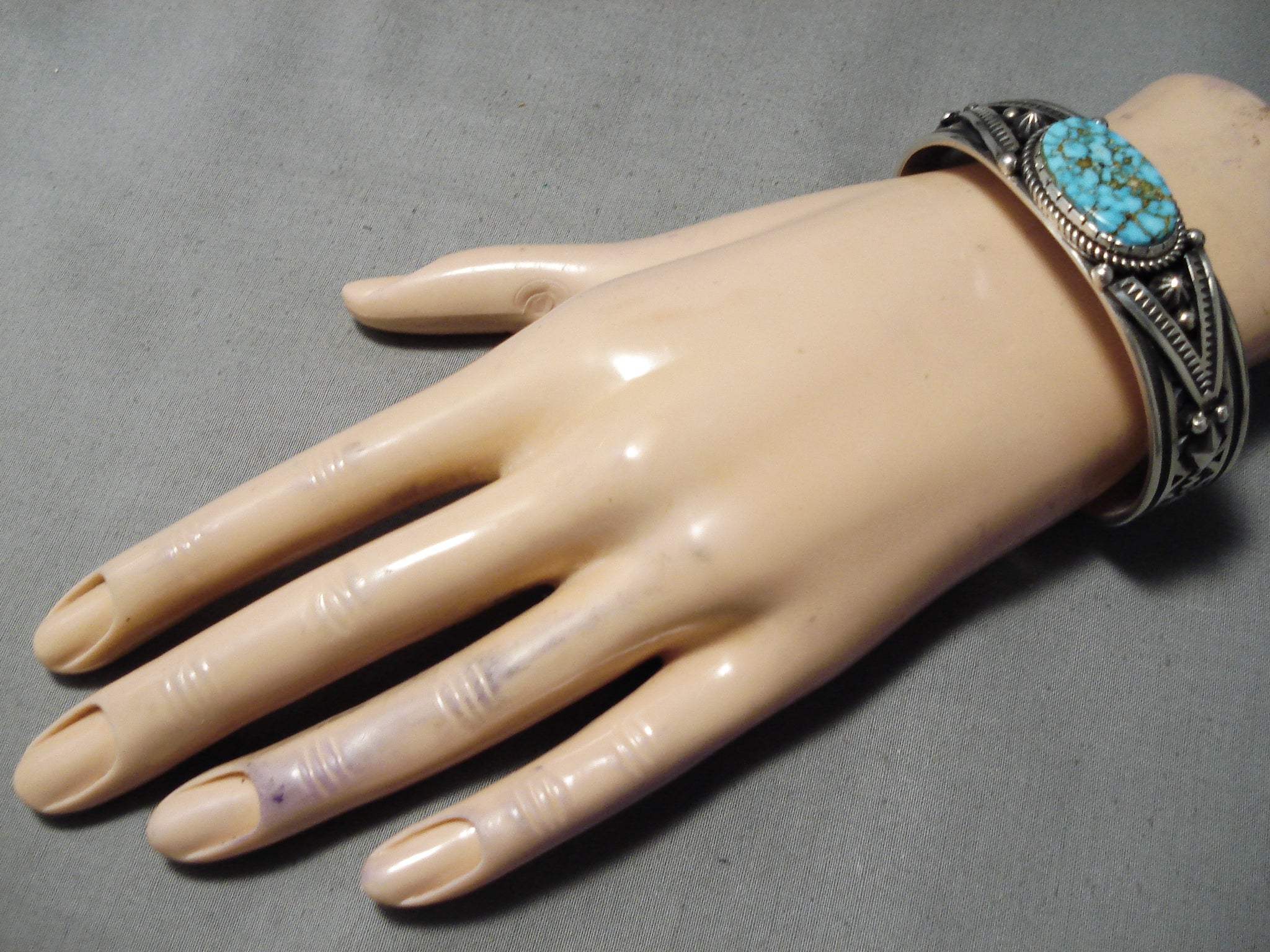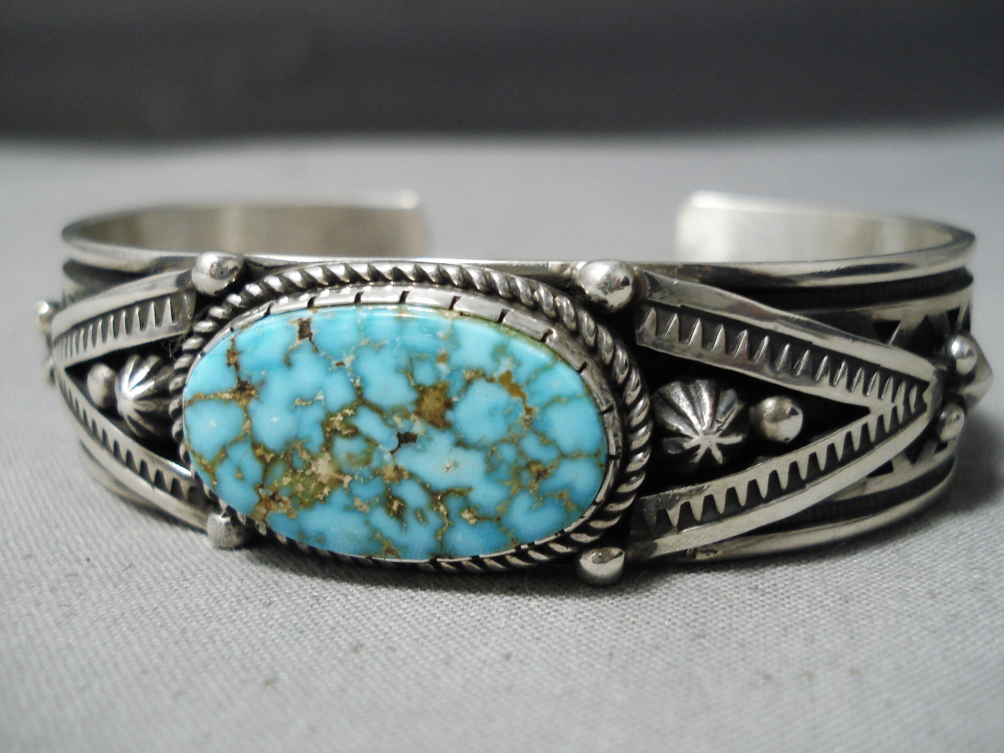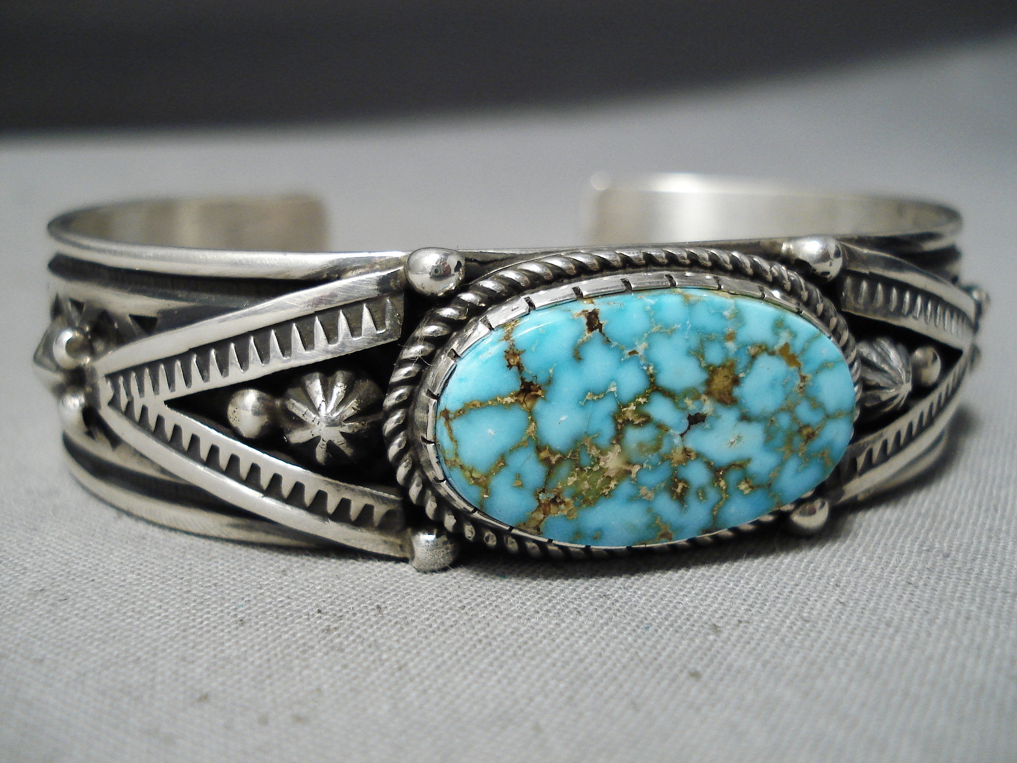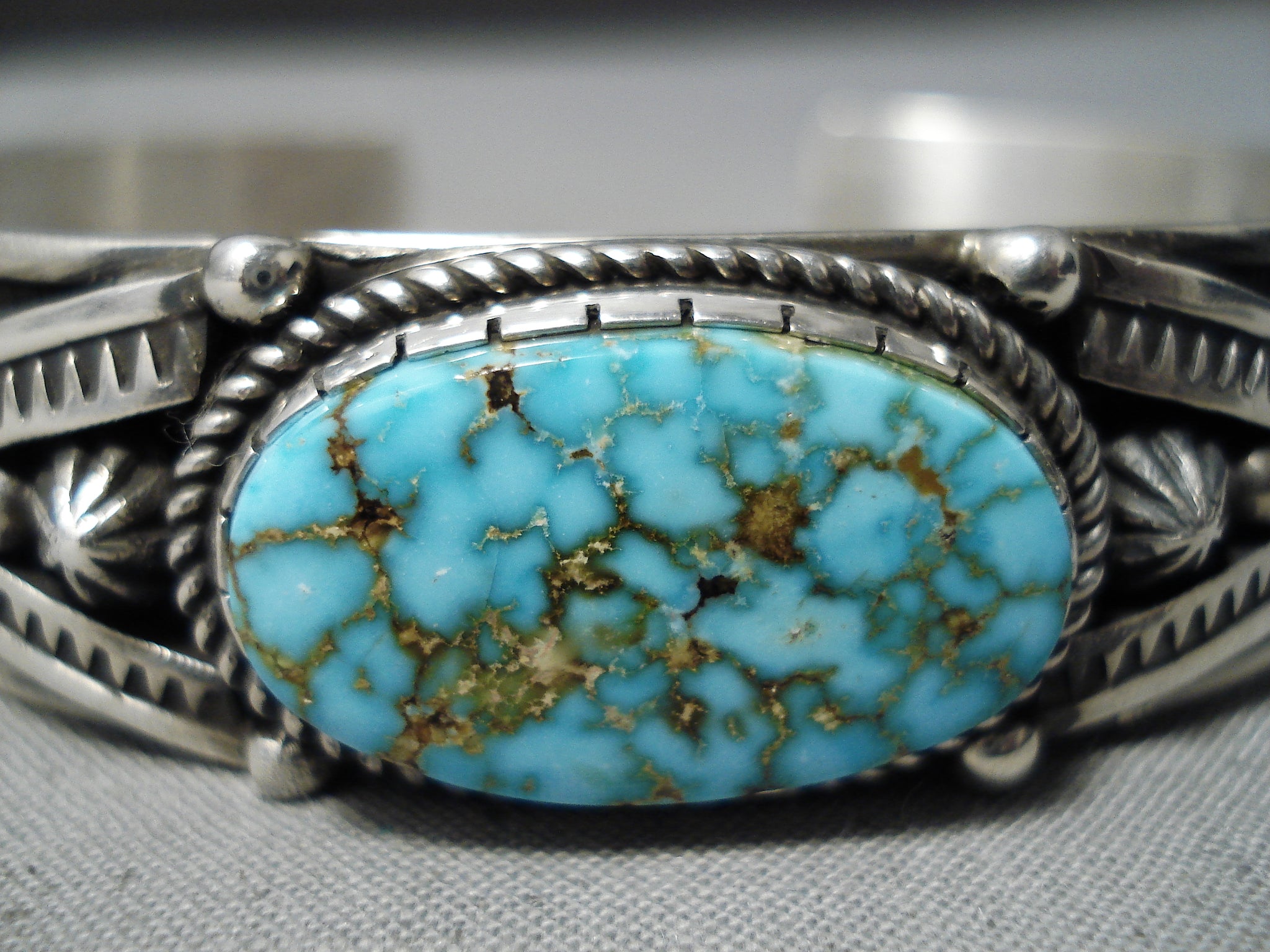 Sensational Vintage Native American Navajo Spiderweb Turquoise Sterling Silver Bracelet