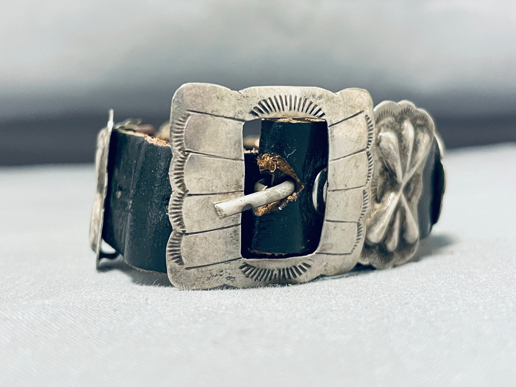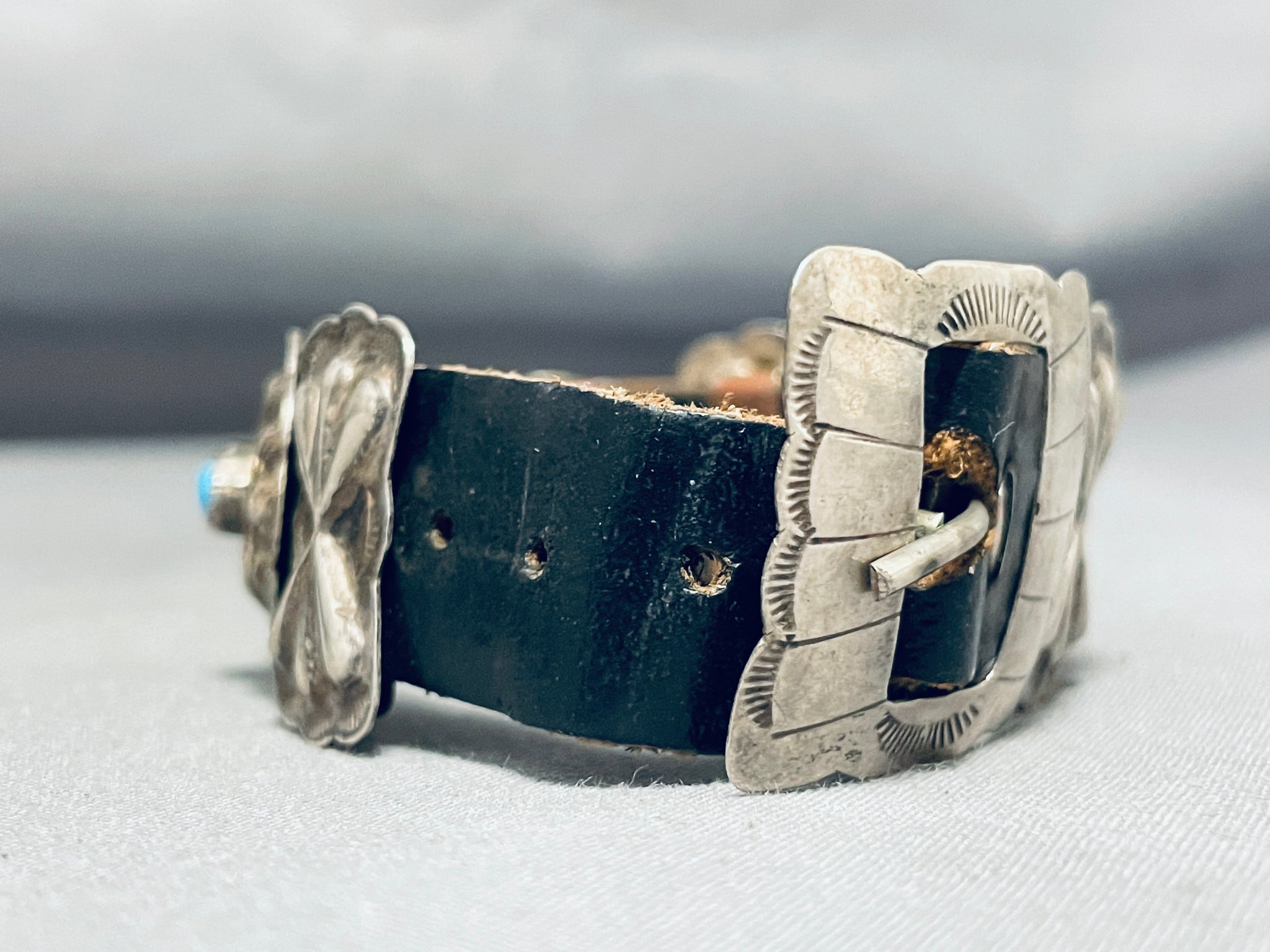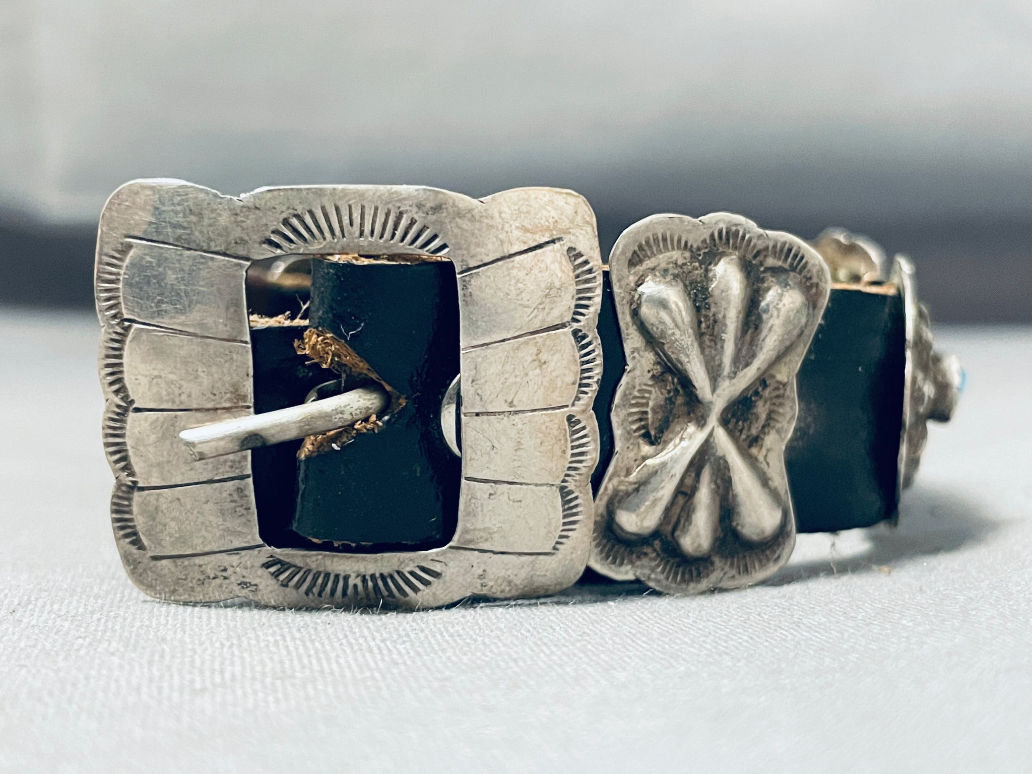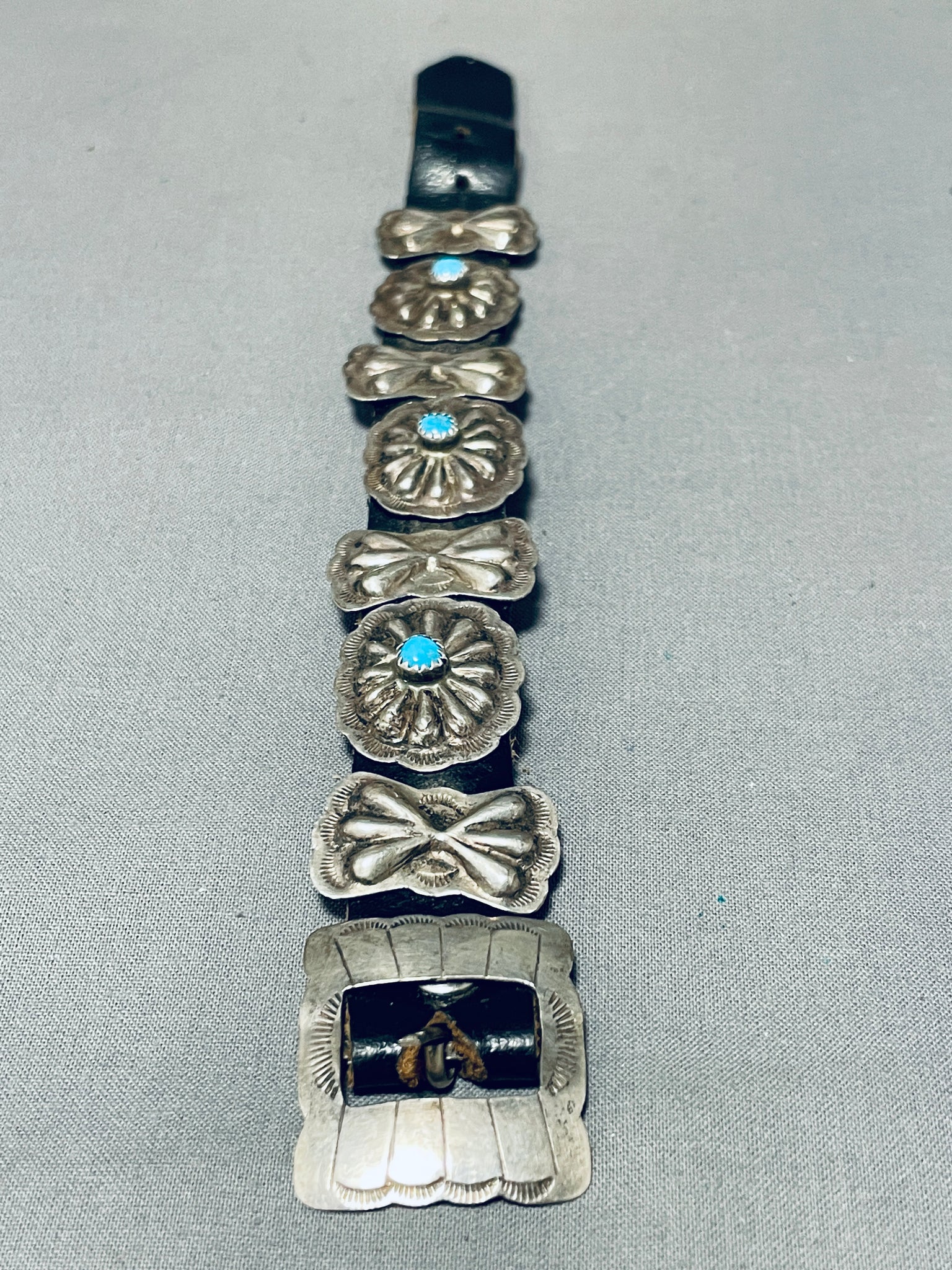 Sensational Vintage Native American Navajo Sterling Silver Concho Turquoise Belt Bracelet