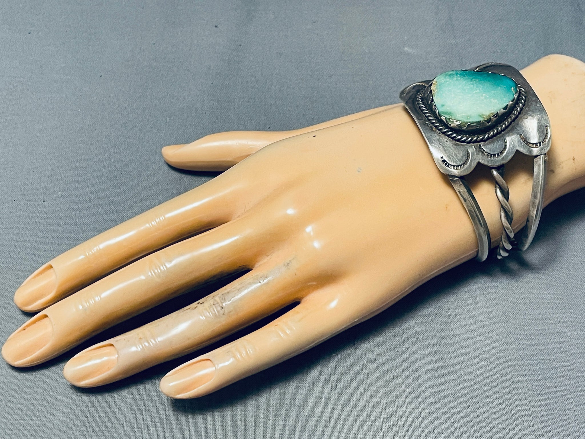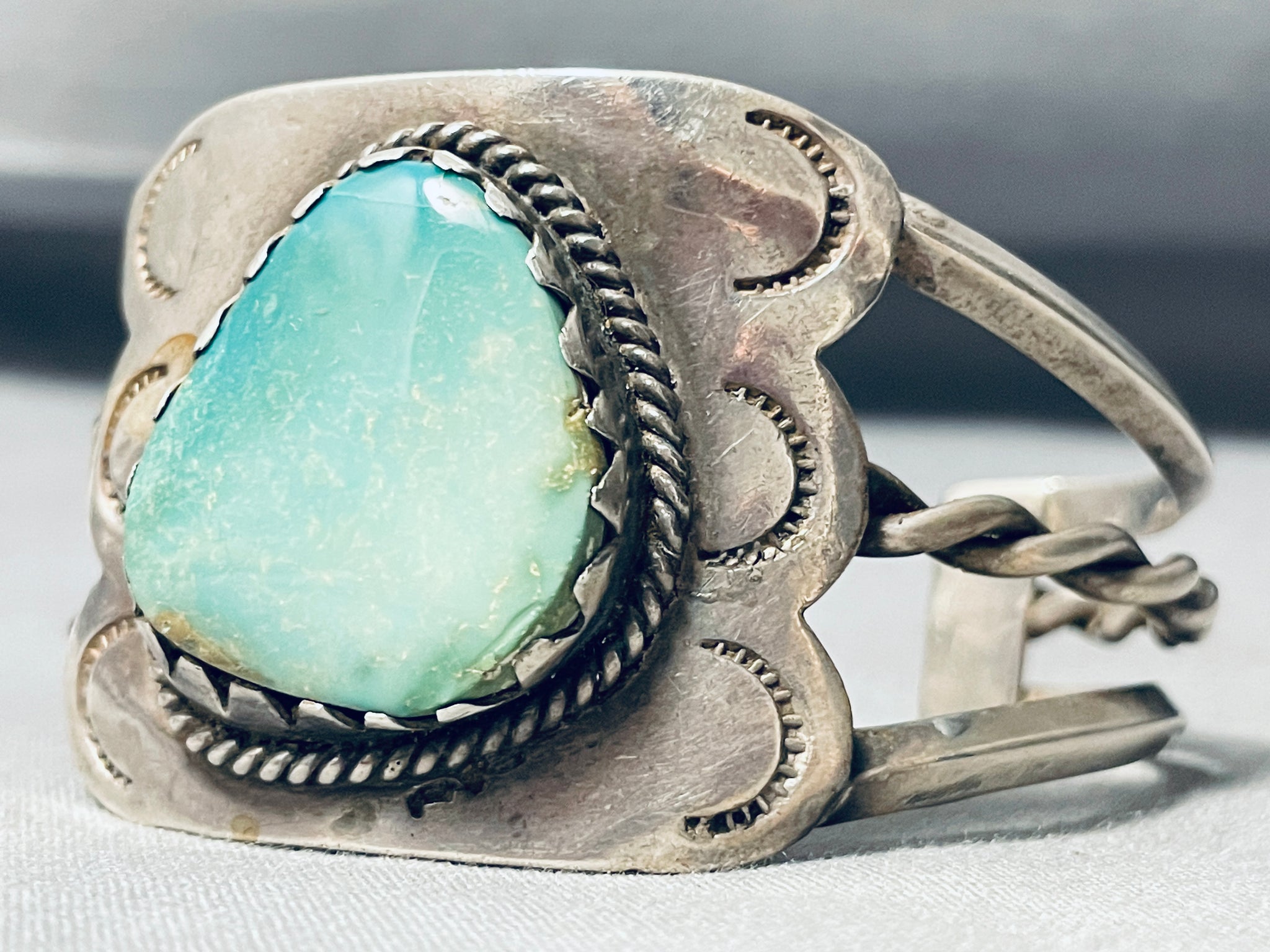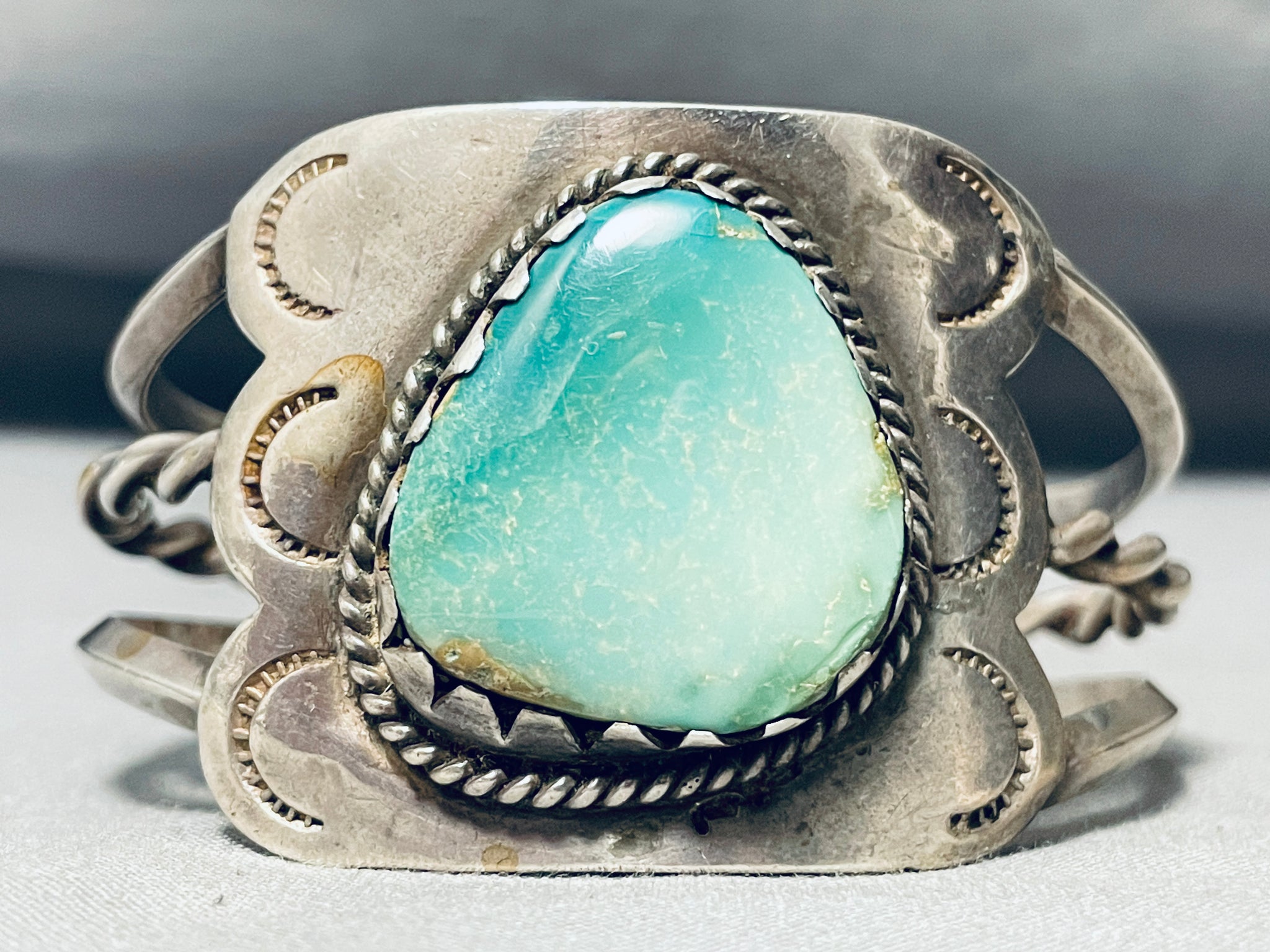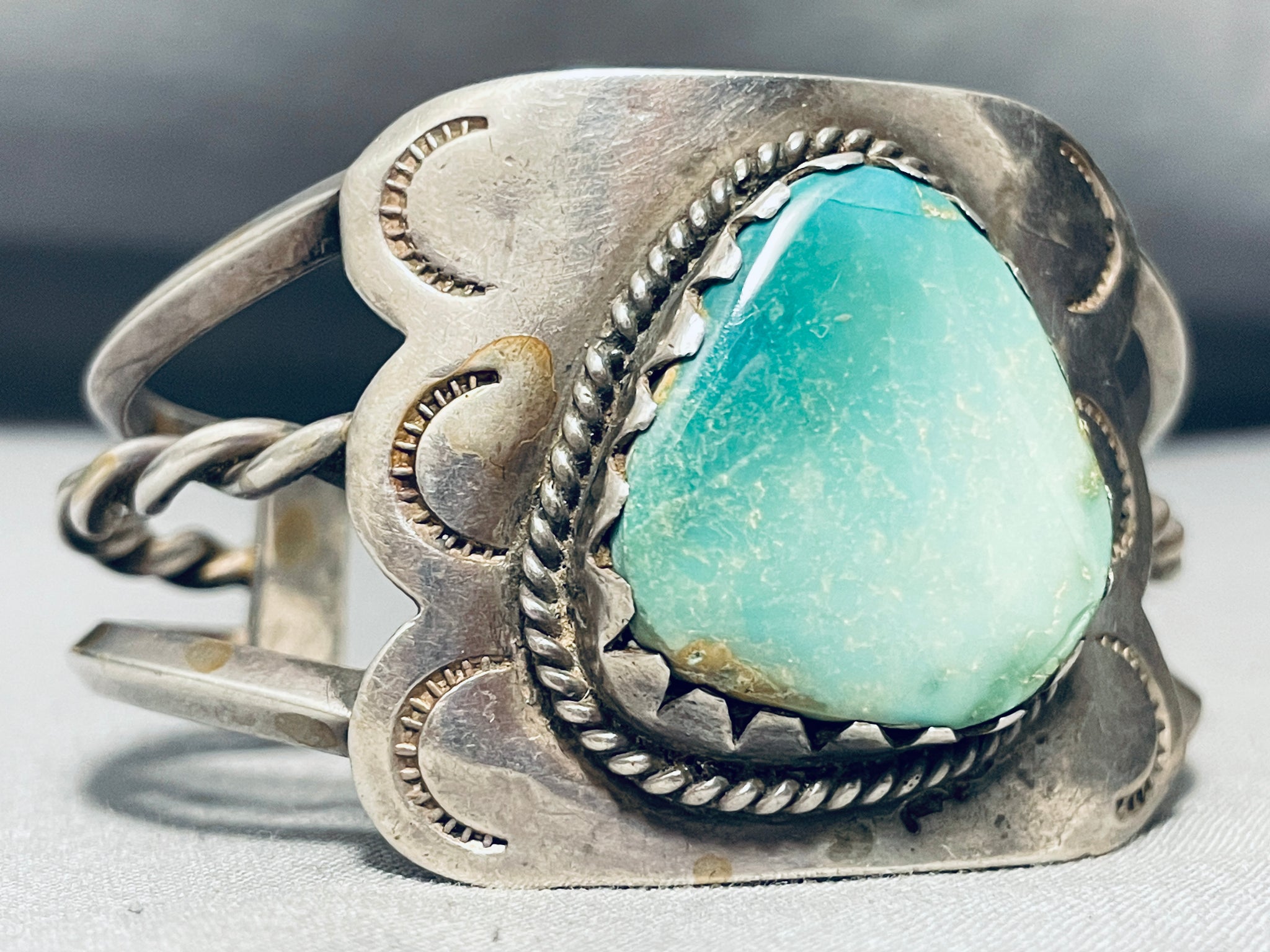 Shielded With Turquoise Vintage Native American Navajo Green Turquoise Sterling Silver Bracelet
