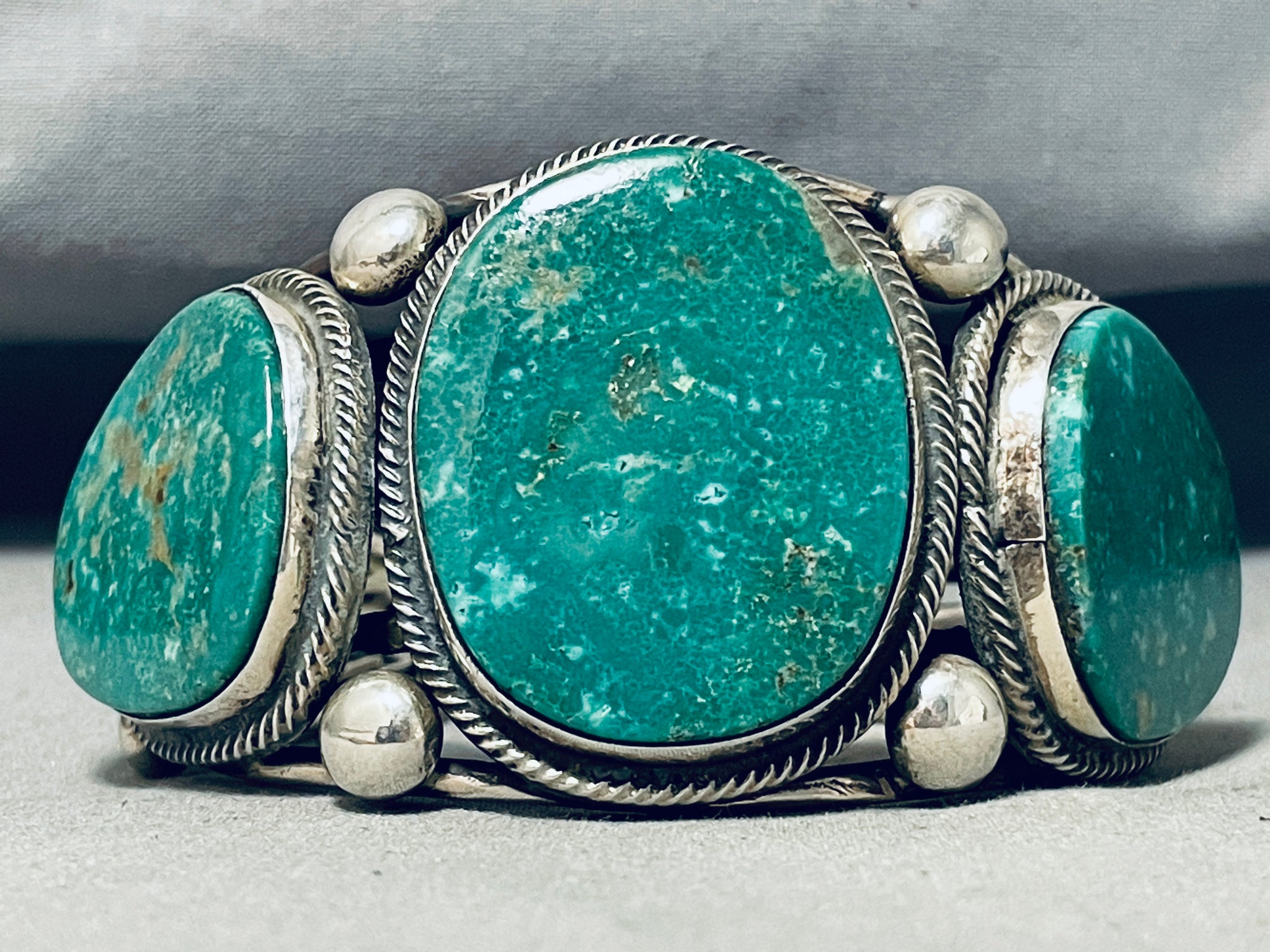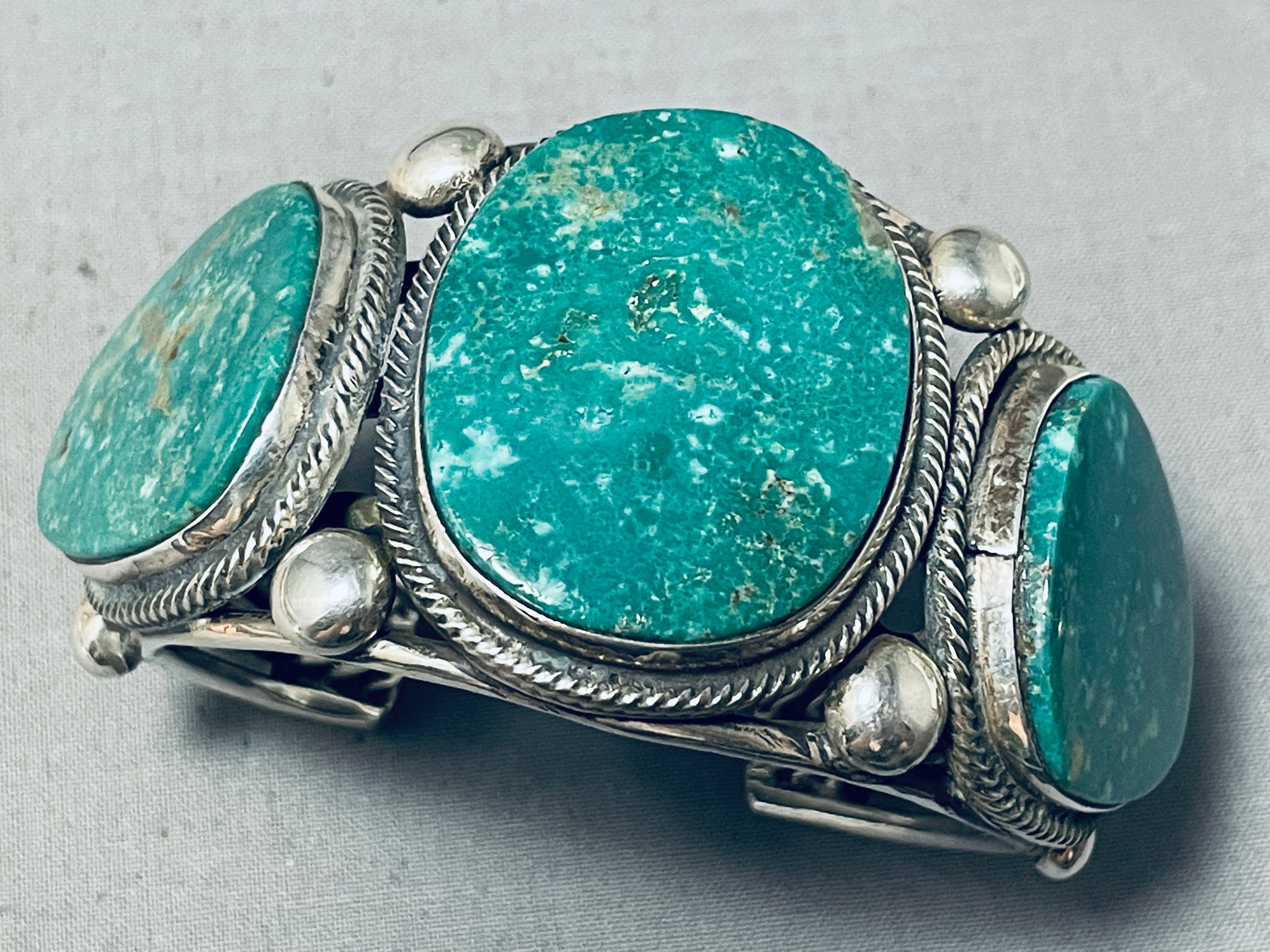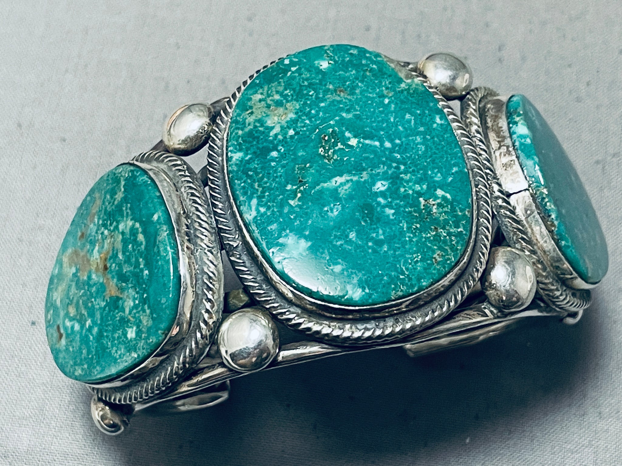 Signed 122 Gram Native American Navajo Gilbert Turquoise Sterling Silver Bracelet