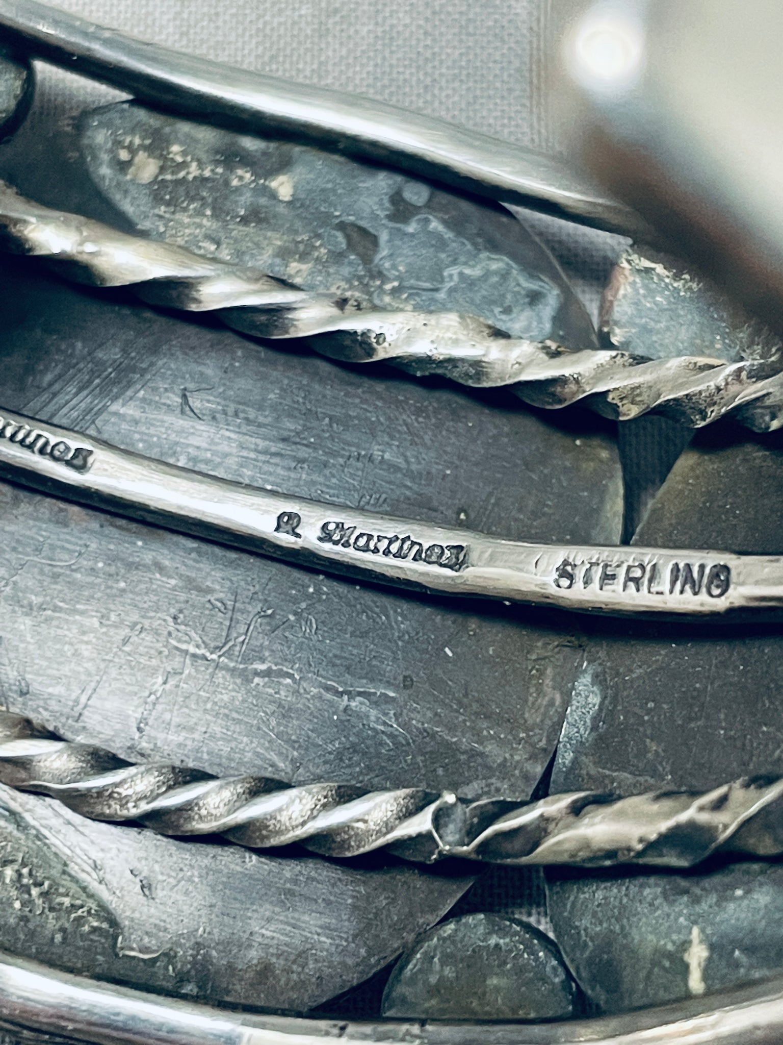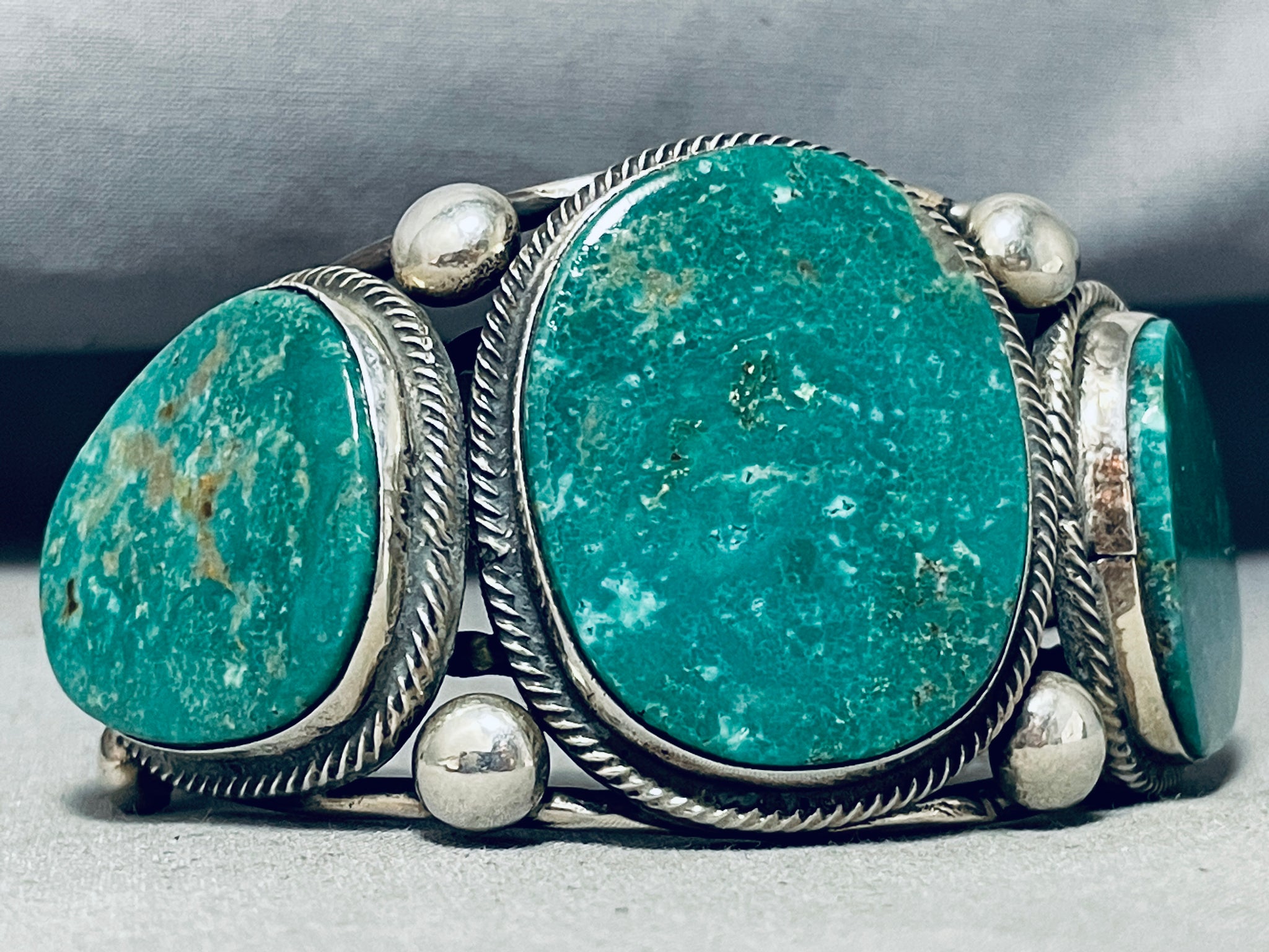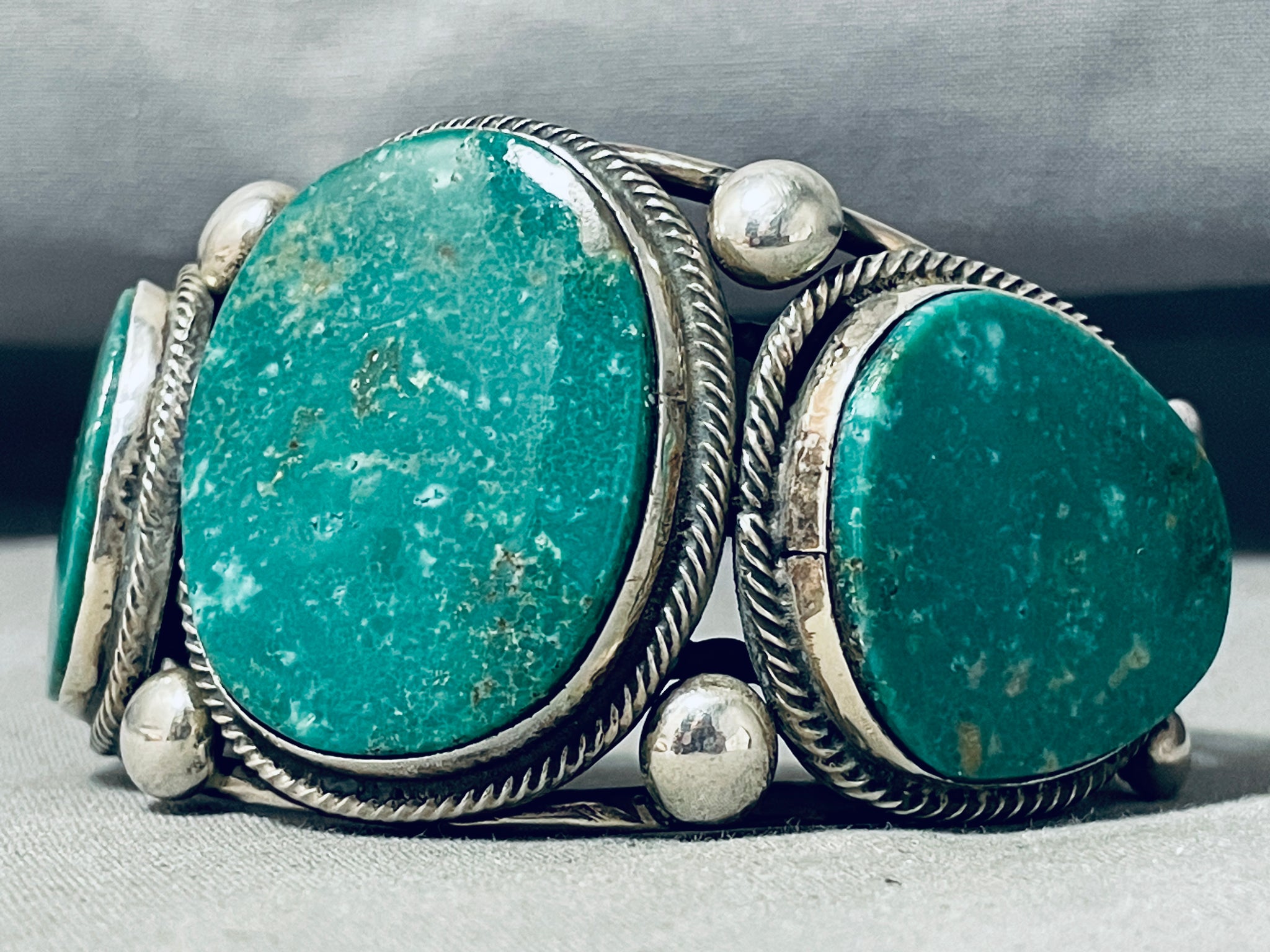 Signed 122 Gram Native American Navajo Gilbert Turquoise Sterling Silver Bracelet