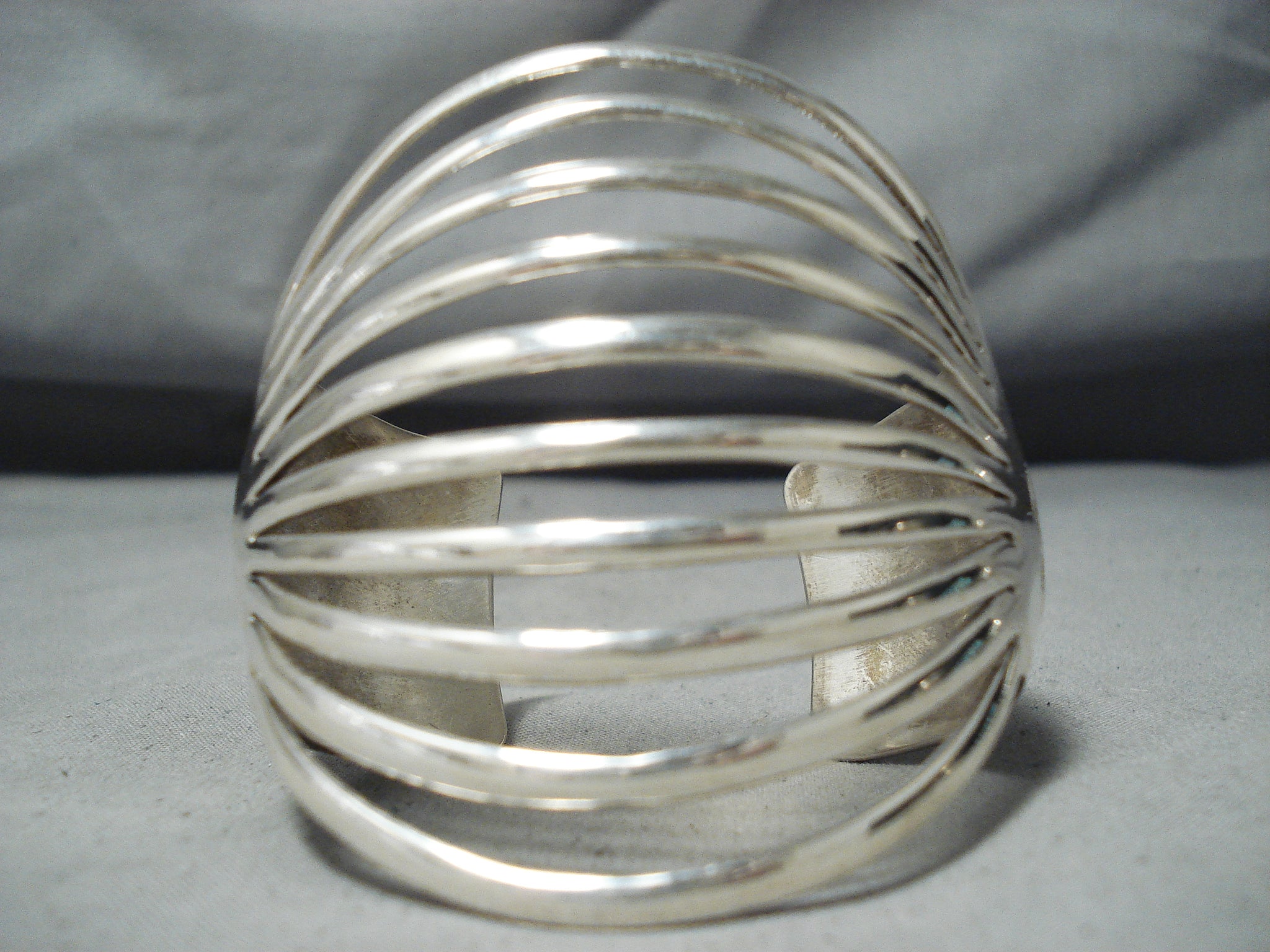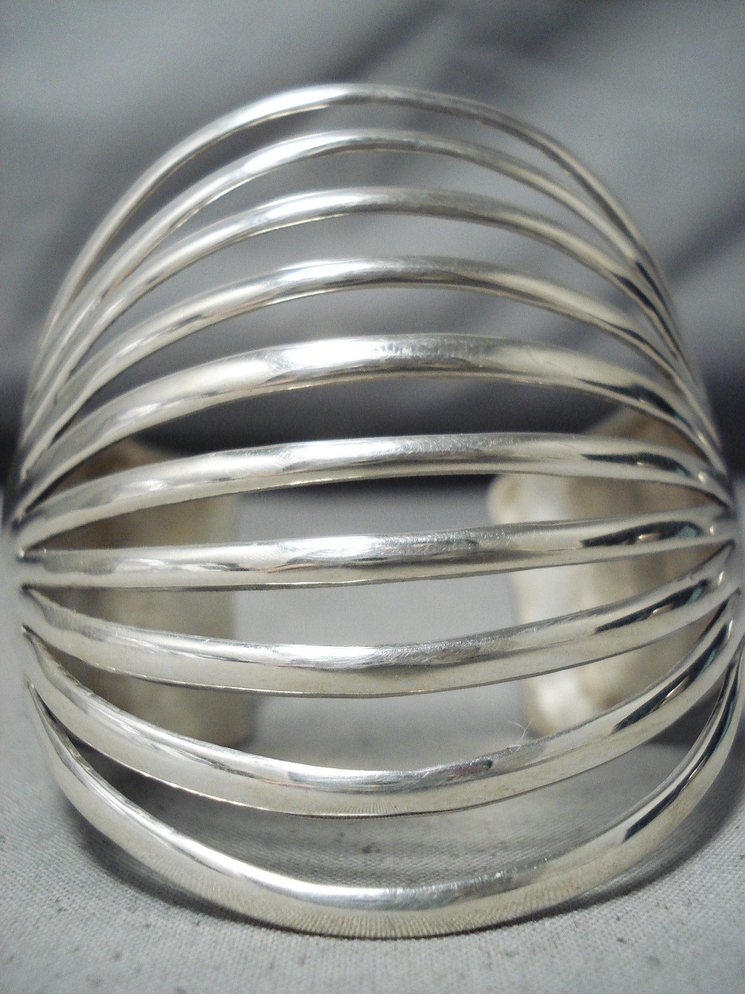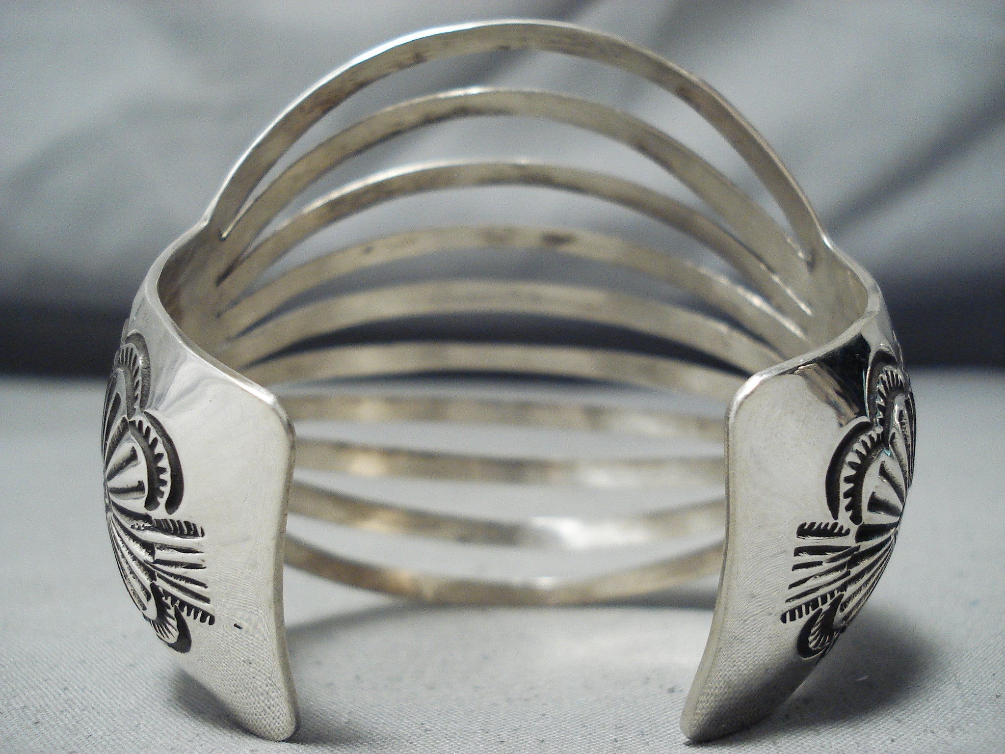 Signed Amazing Navajo Native American Sterling Silver 10 Rail Bracelet