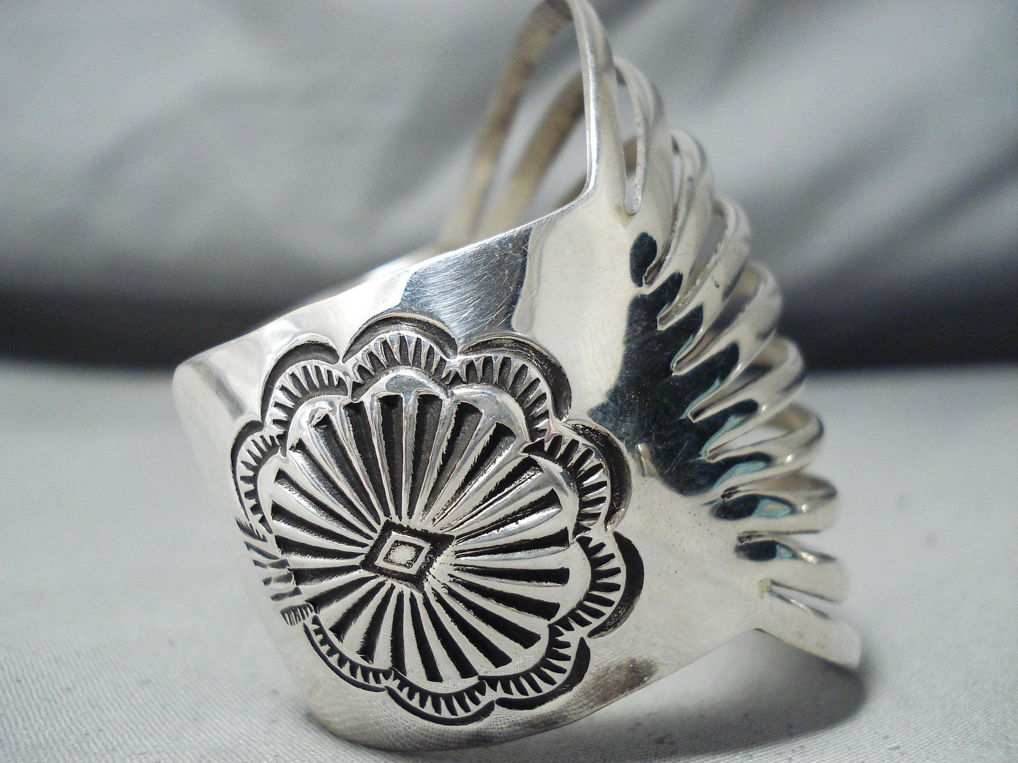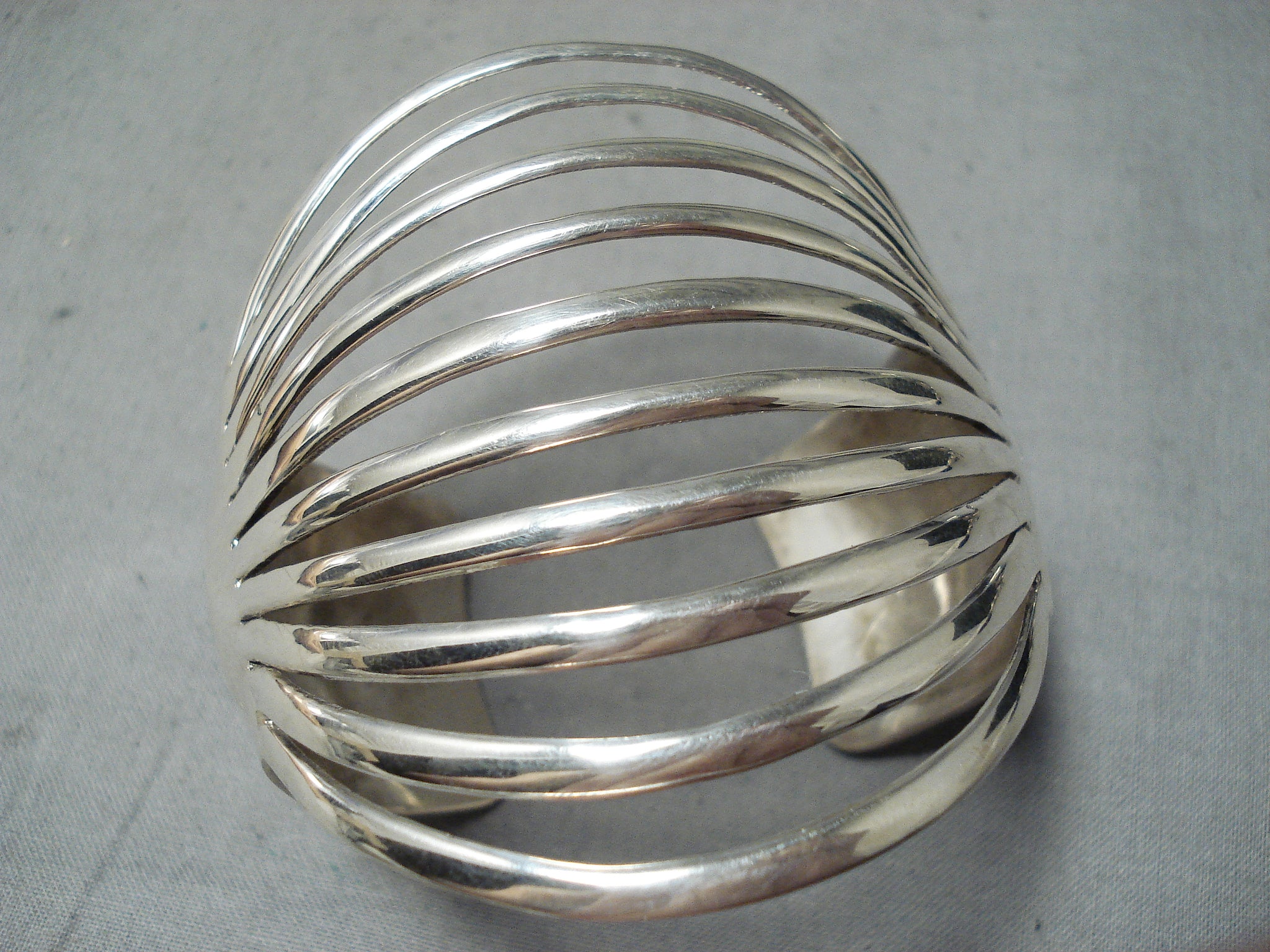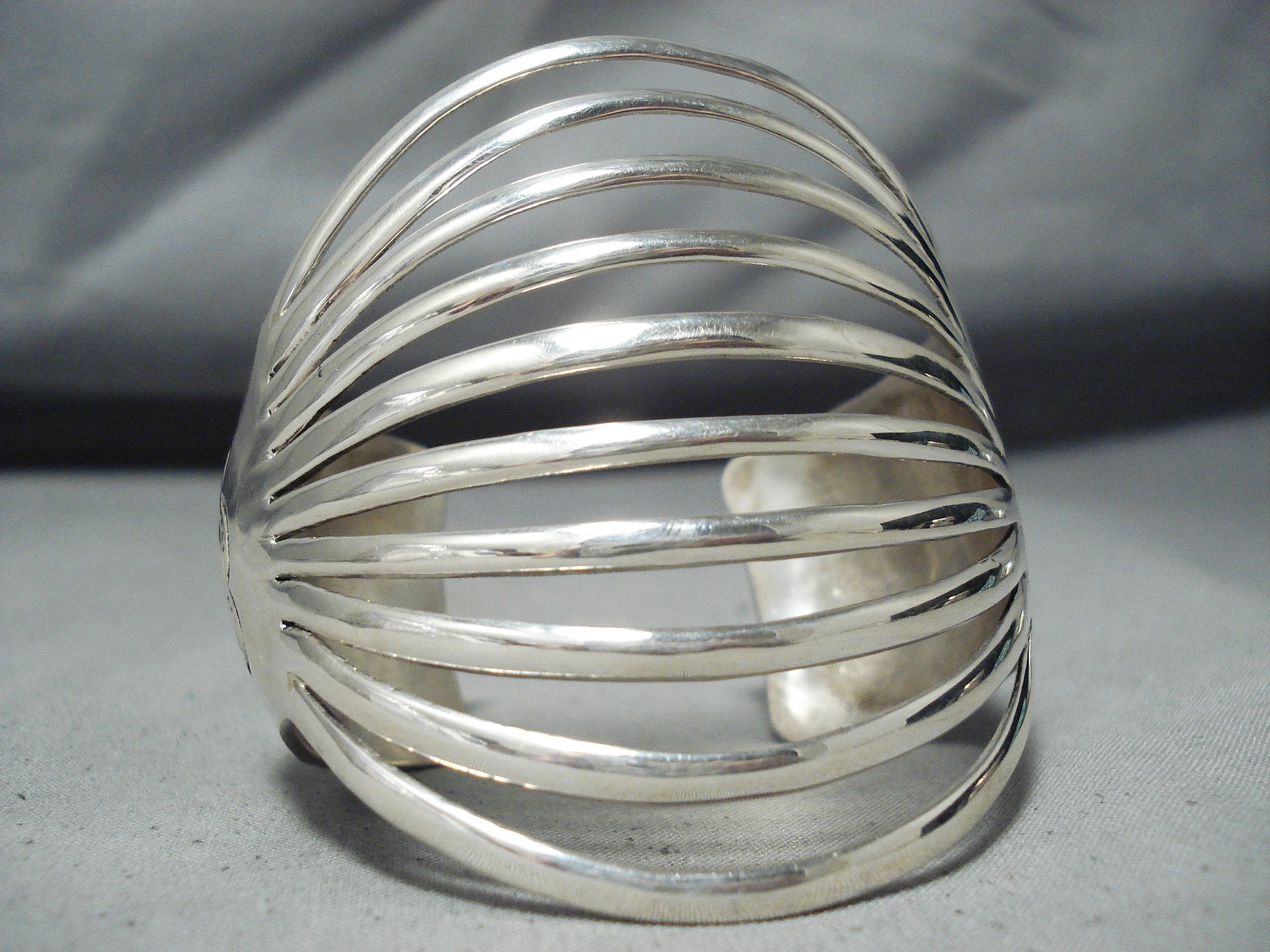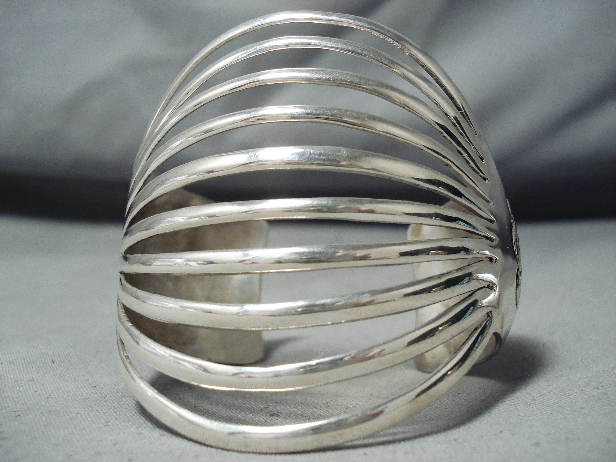 Signed Amazing Navajo Native American Sterling Silver 10 Rail Bracelet
