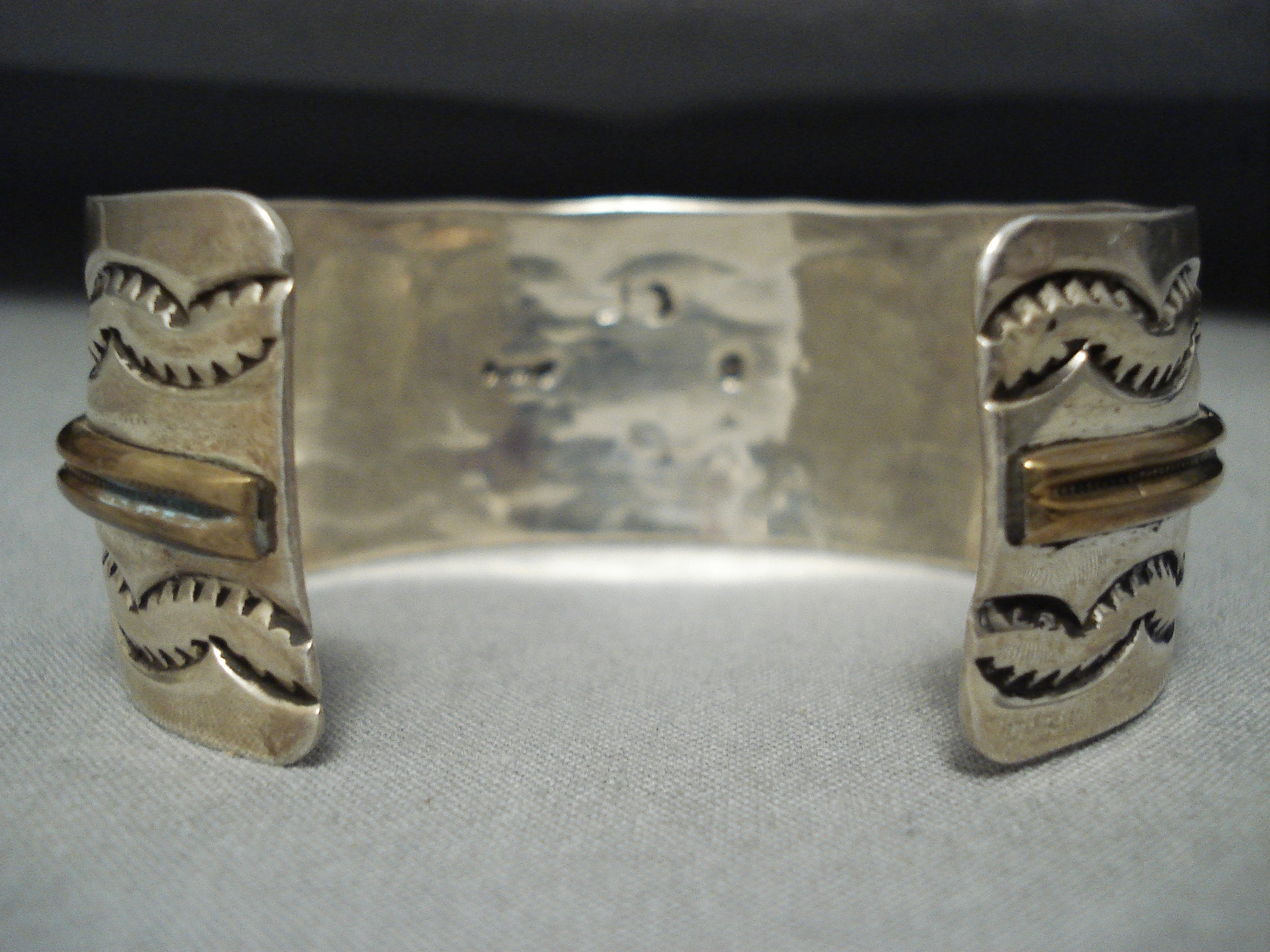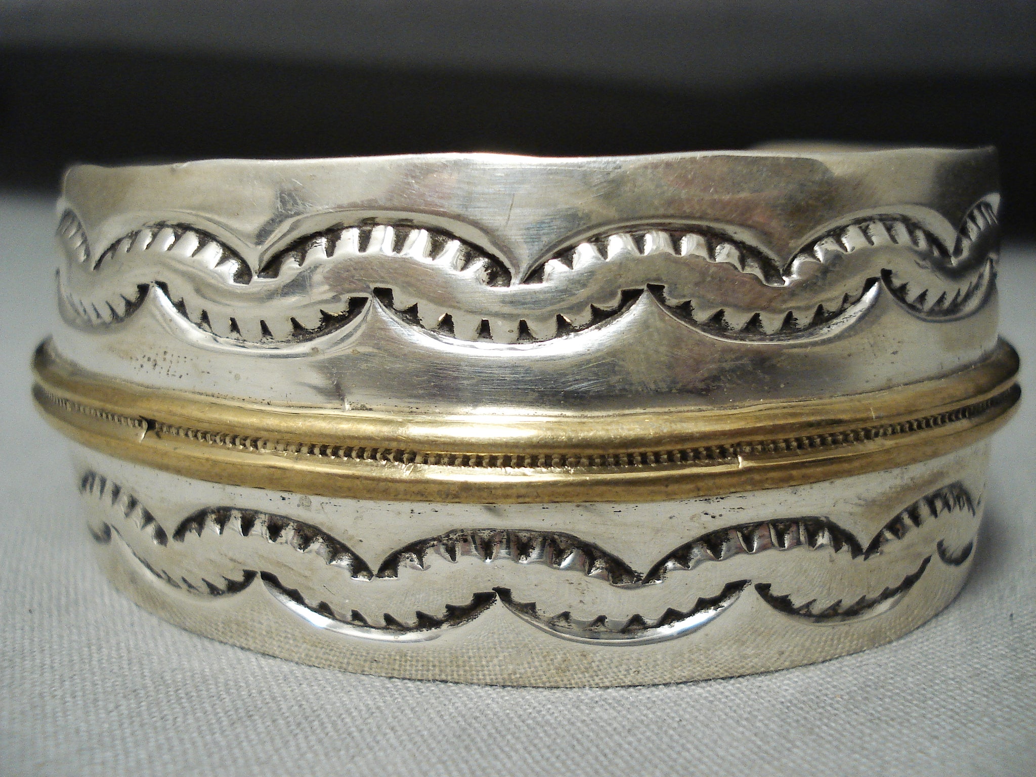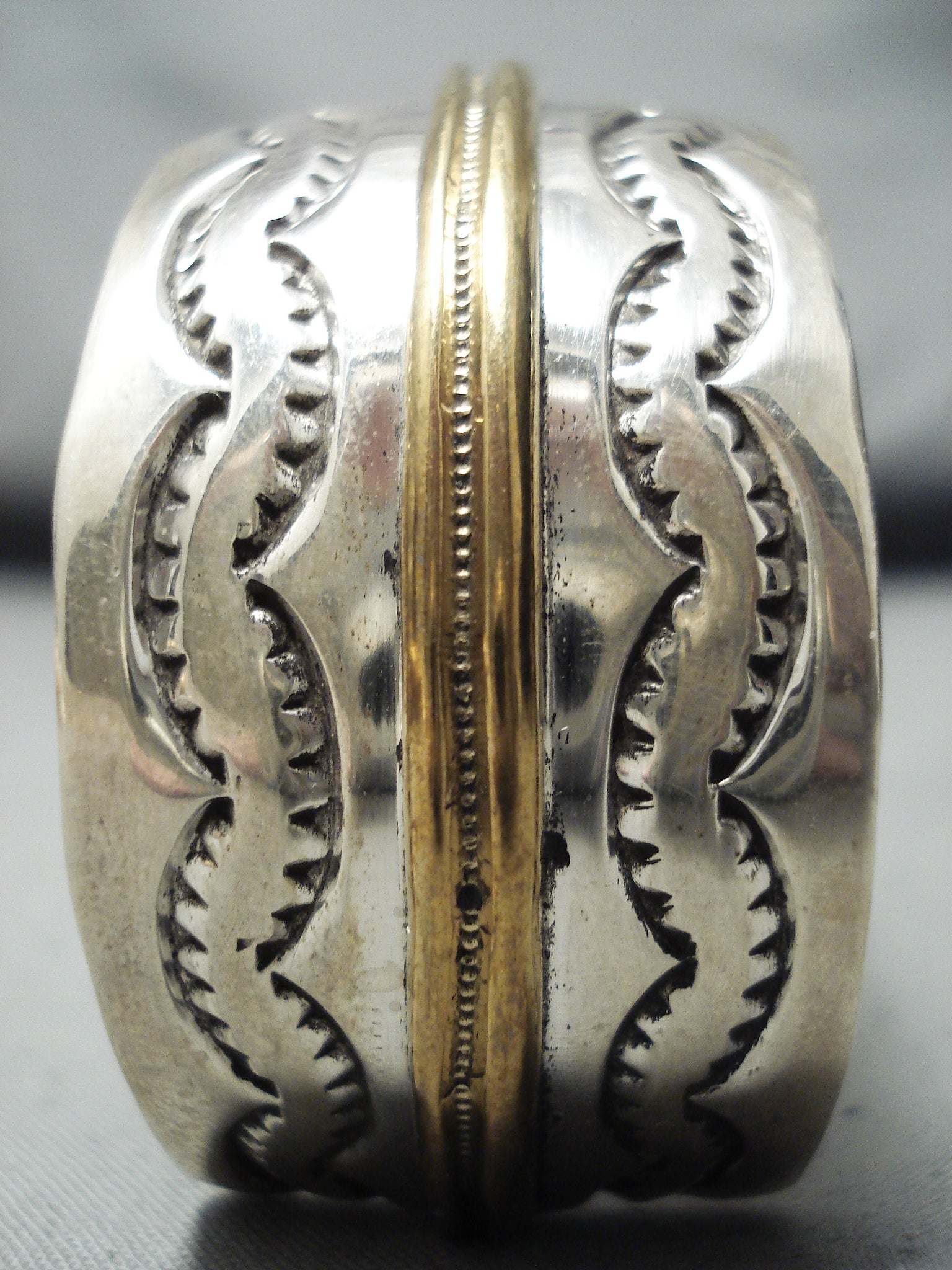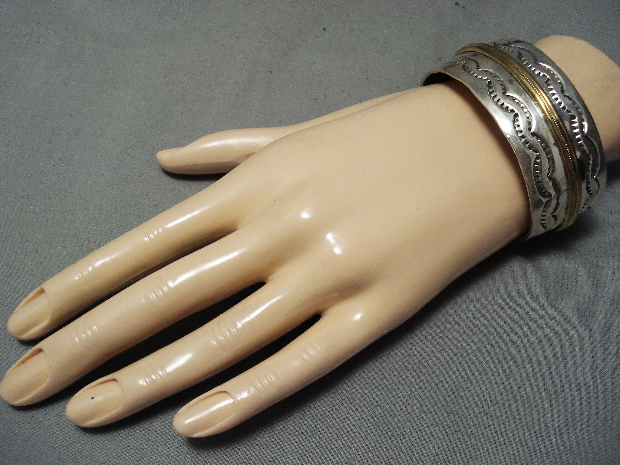 Signed Heavy Vintage Native American Navajo Hand Tooled Sterling Silver Bracelet