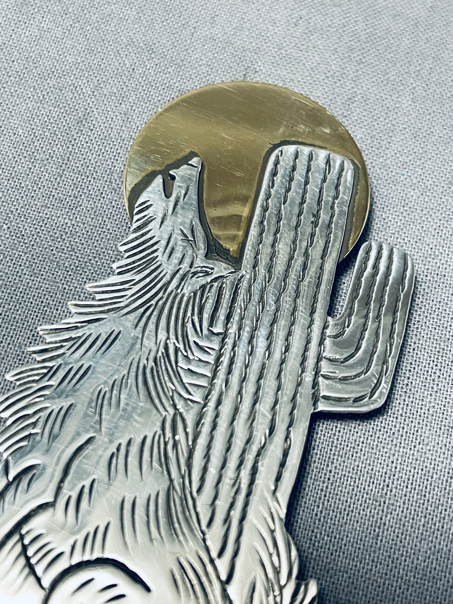Signed Howling Coyote Native American Navajo Sterling Silver Coyote Pin