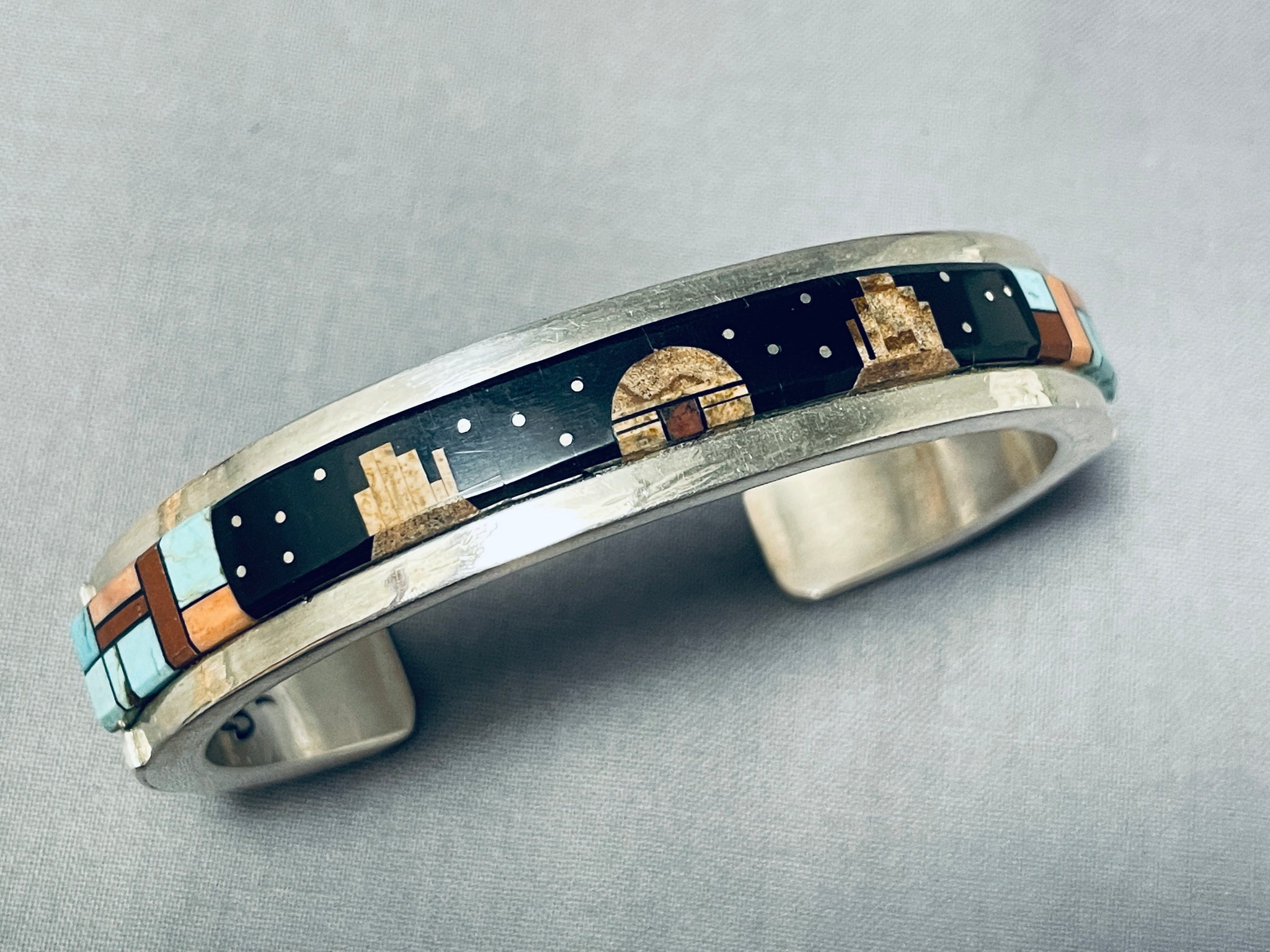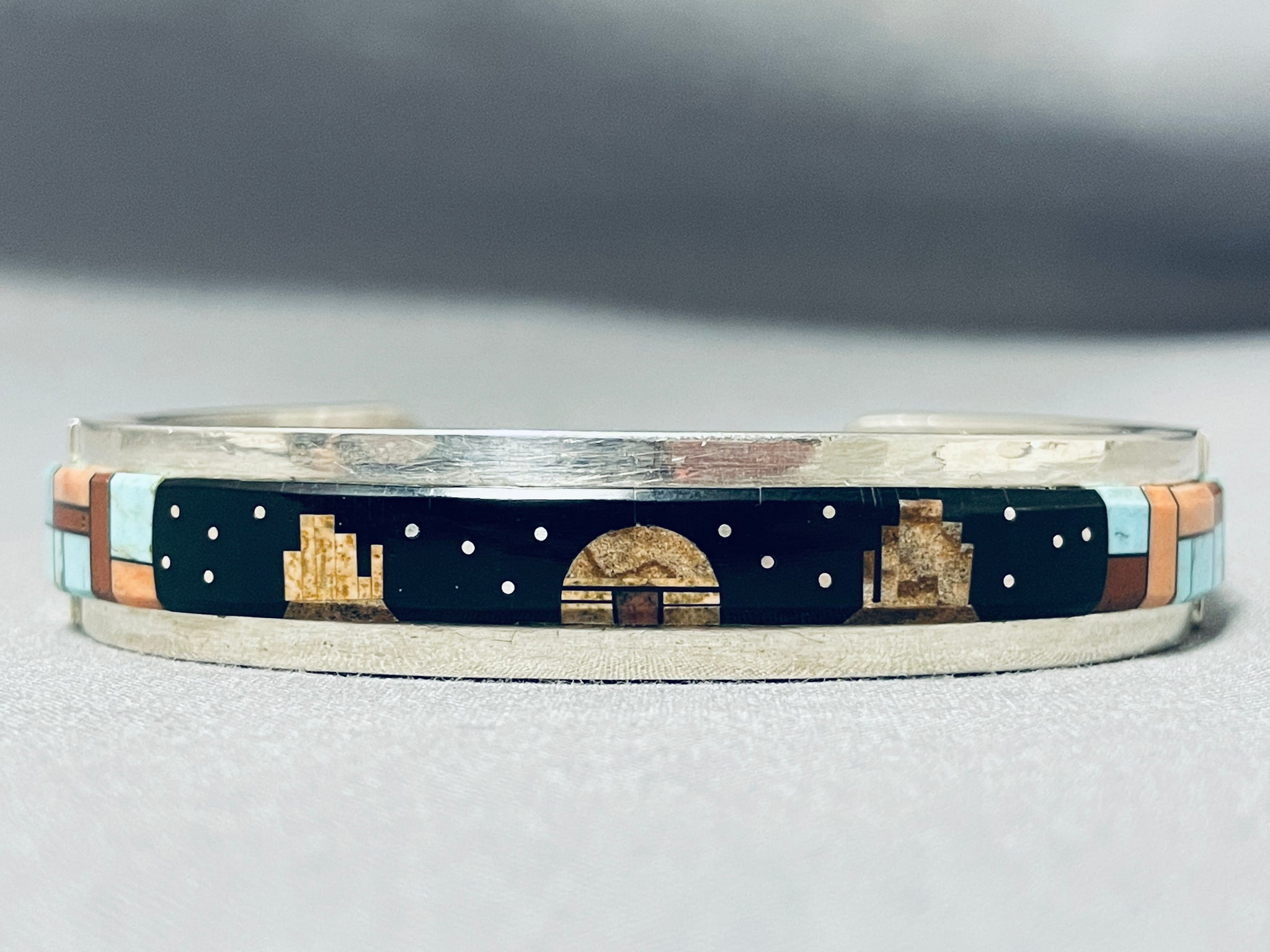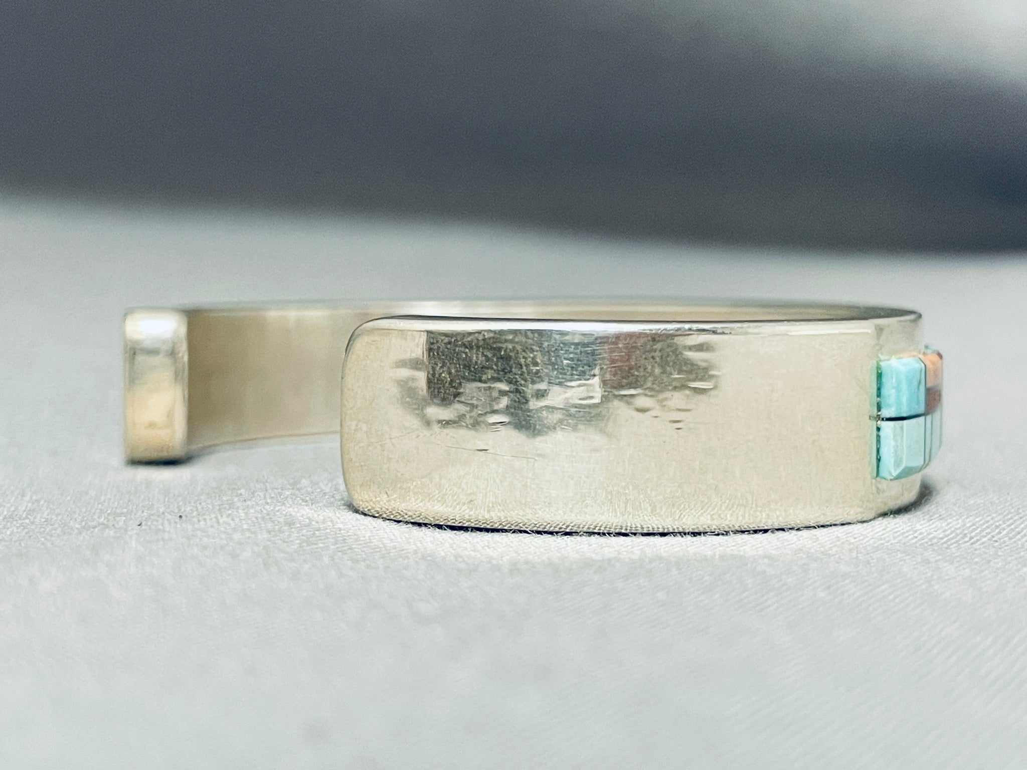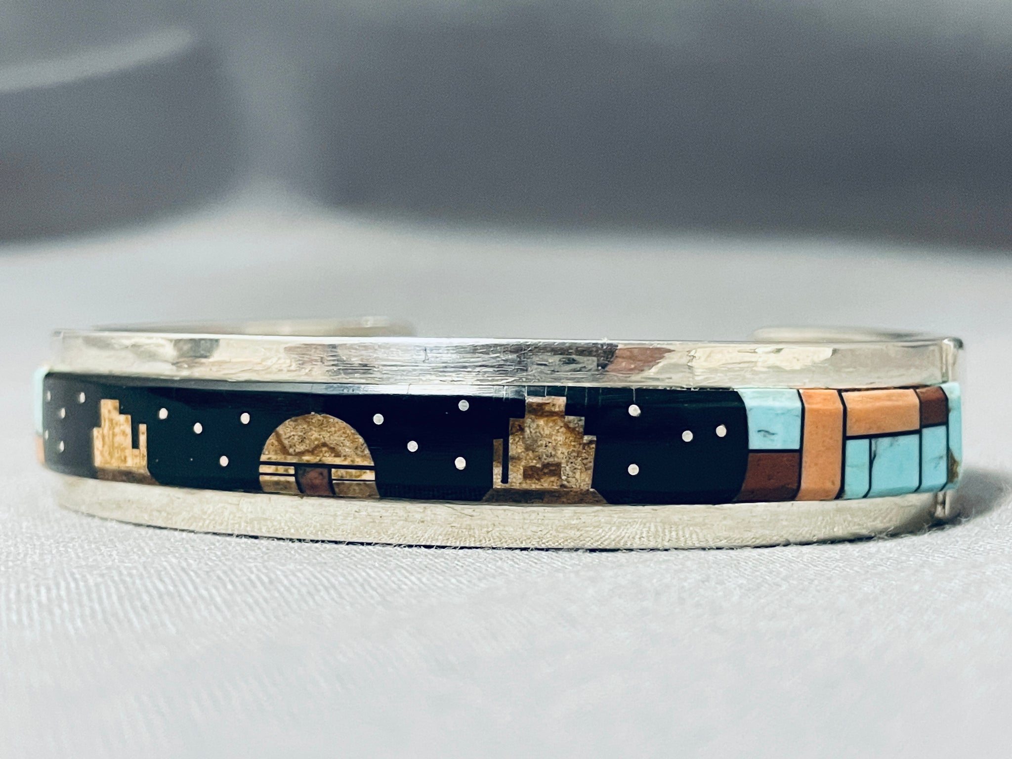 Signed Midnight Sky Native American Navajo Turquoise Sterling Silver Bracelet