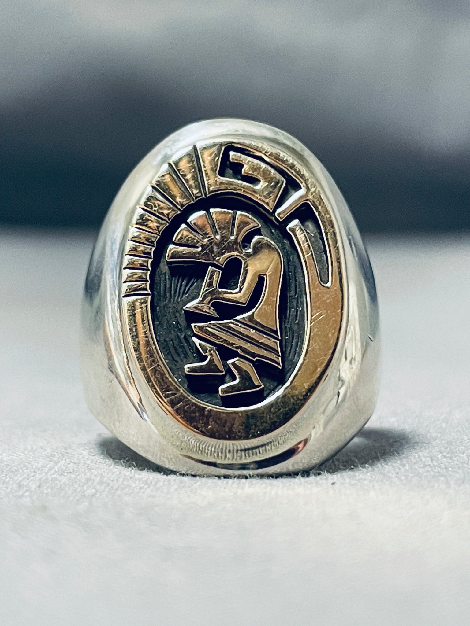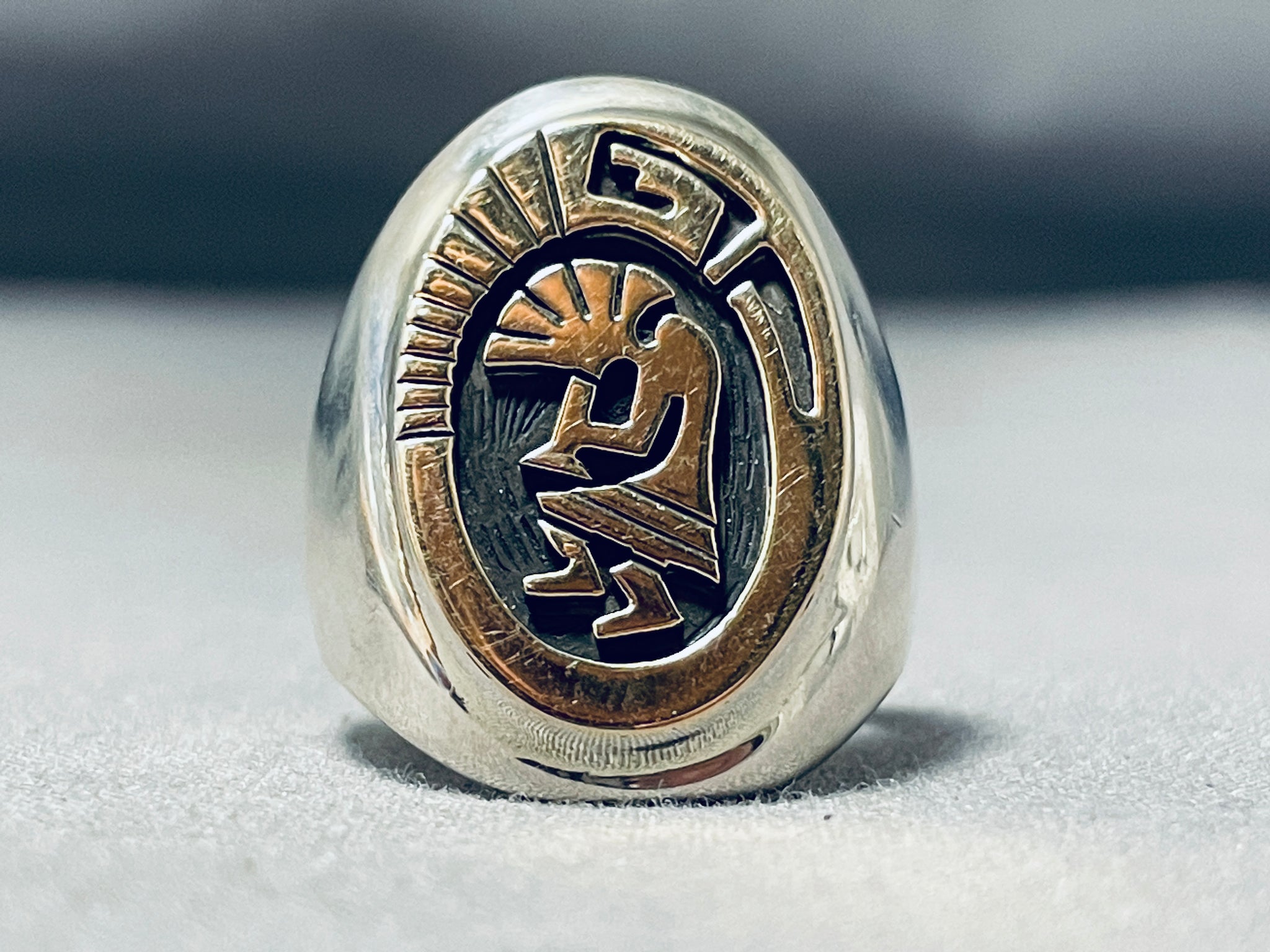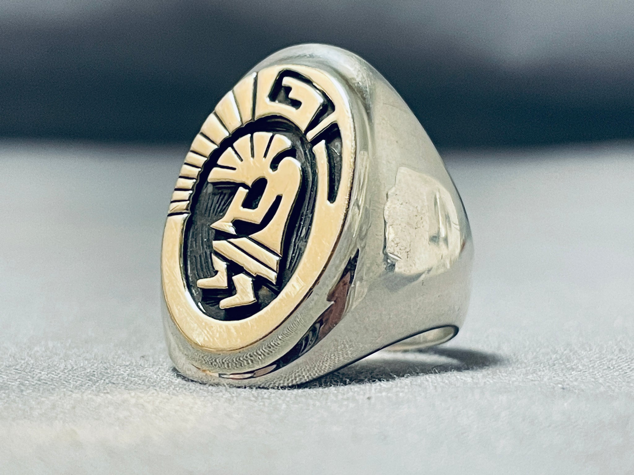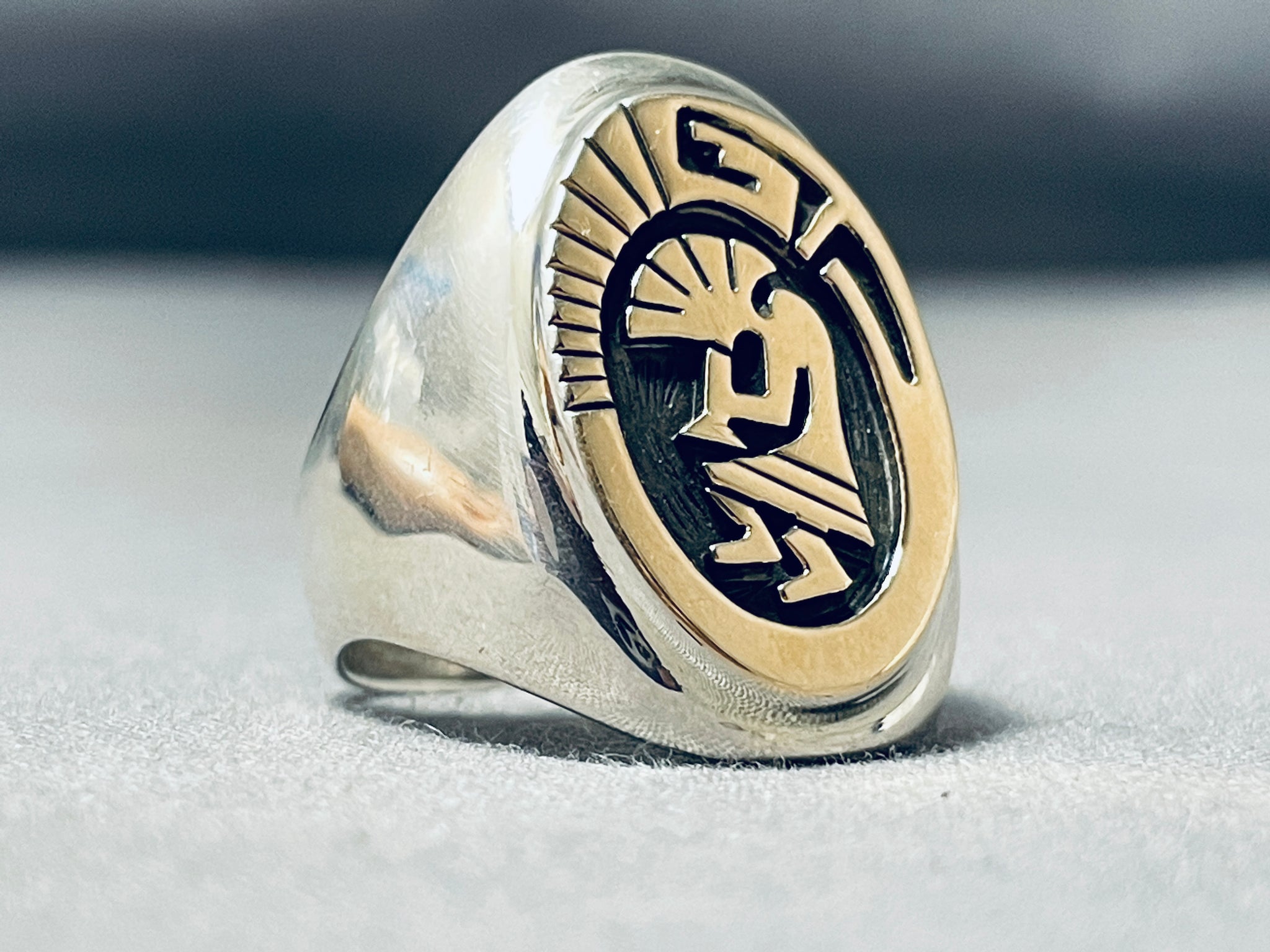 Signed Native American Navajo 14k Gold Sterling Silver Kokopelli Ring