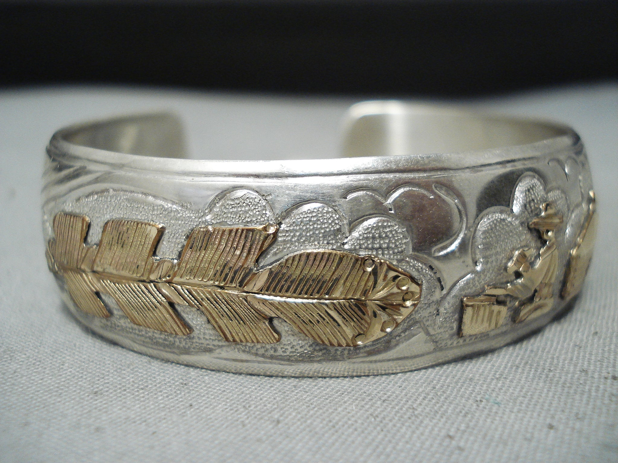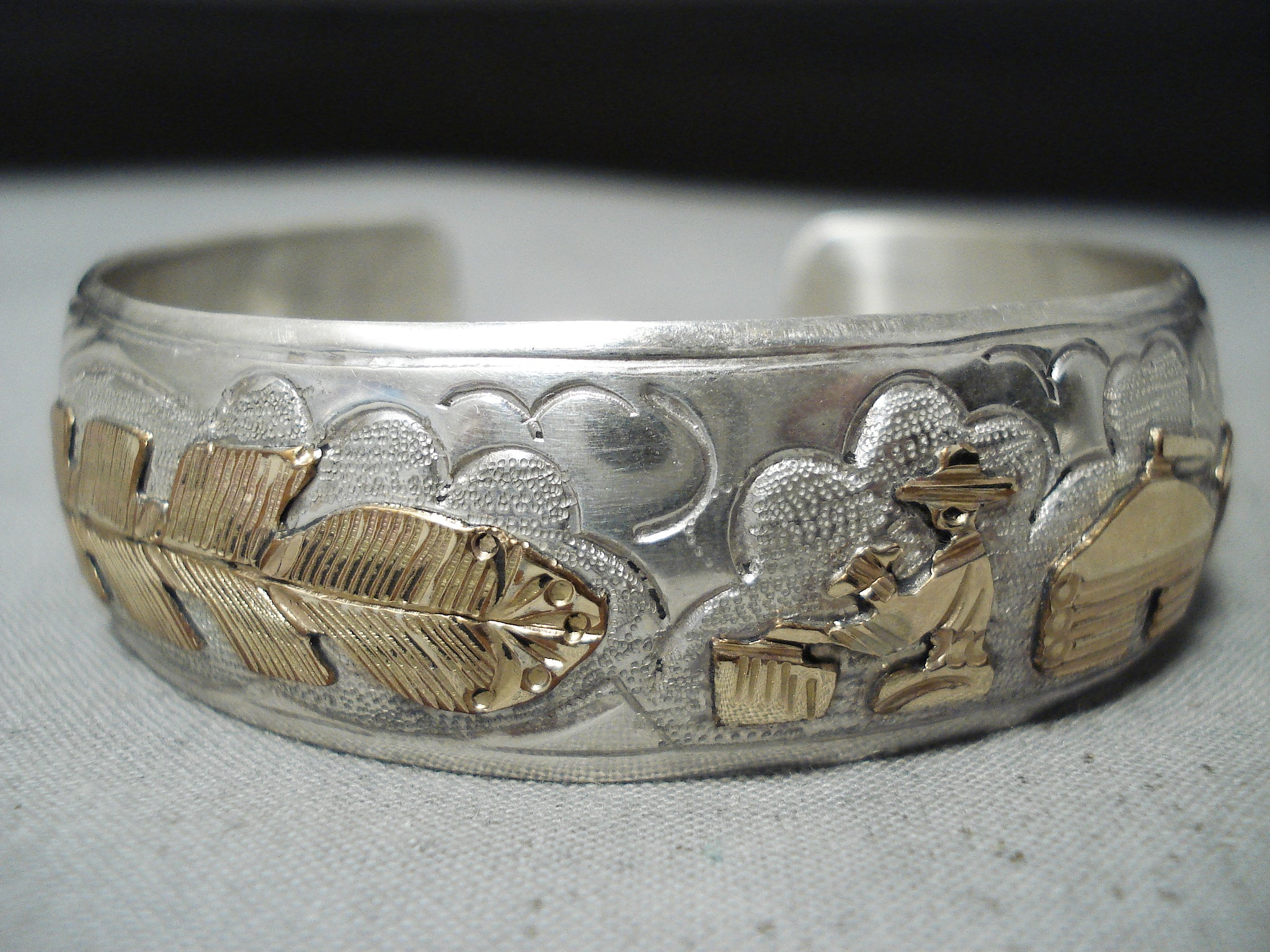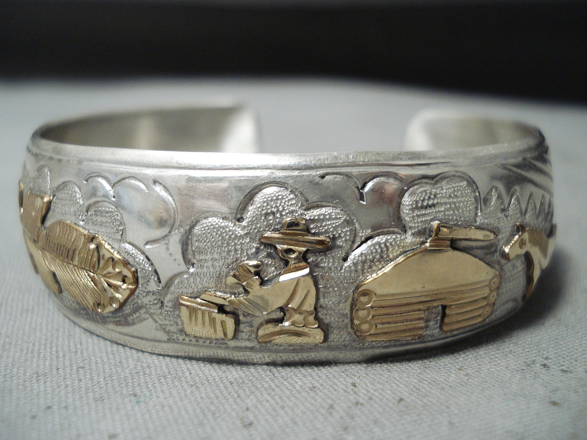 Signed Native American Navajo Sterling Silver 12k Gold Filled Sotryteller Bracelet