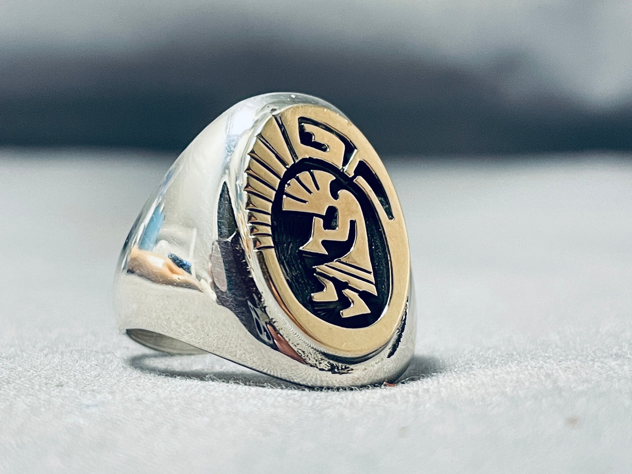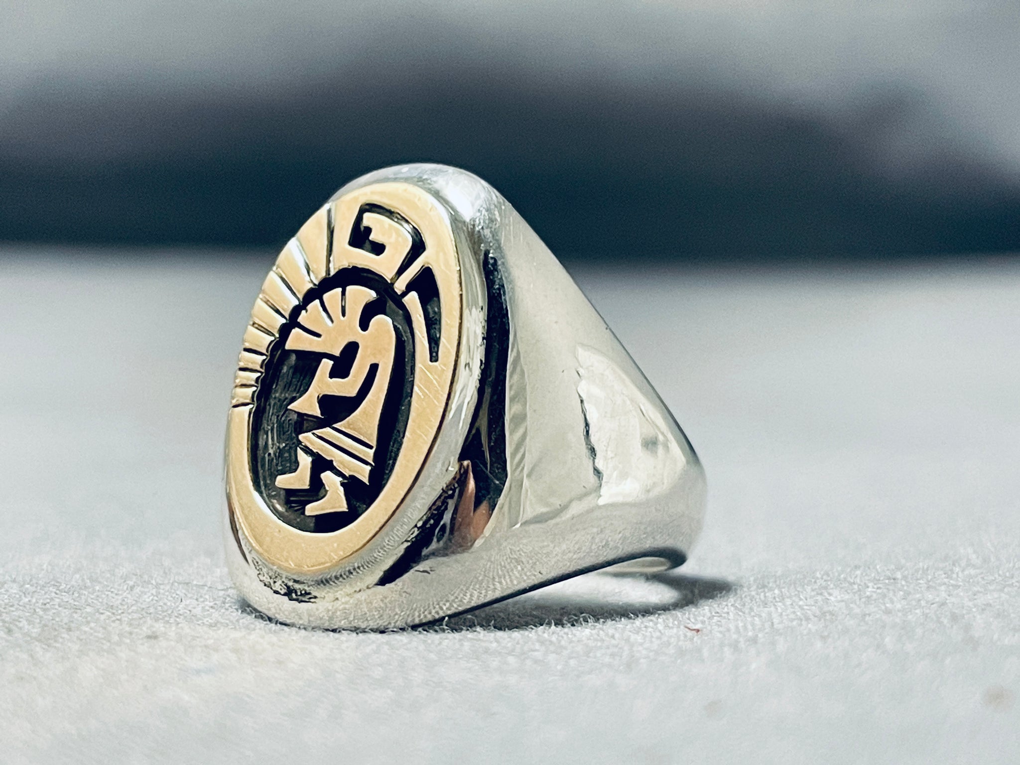 Signed Native American Navajo Sterling Silver 14k Gold Kokopelli Ring