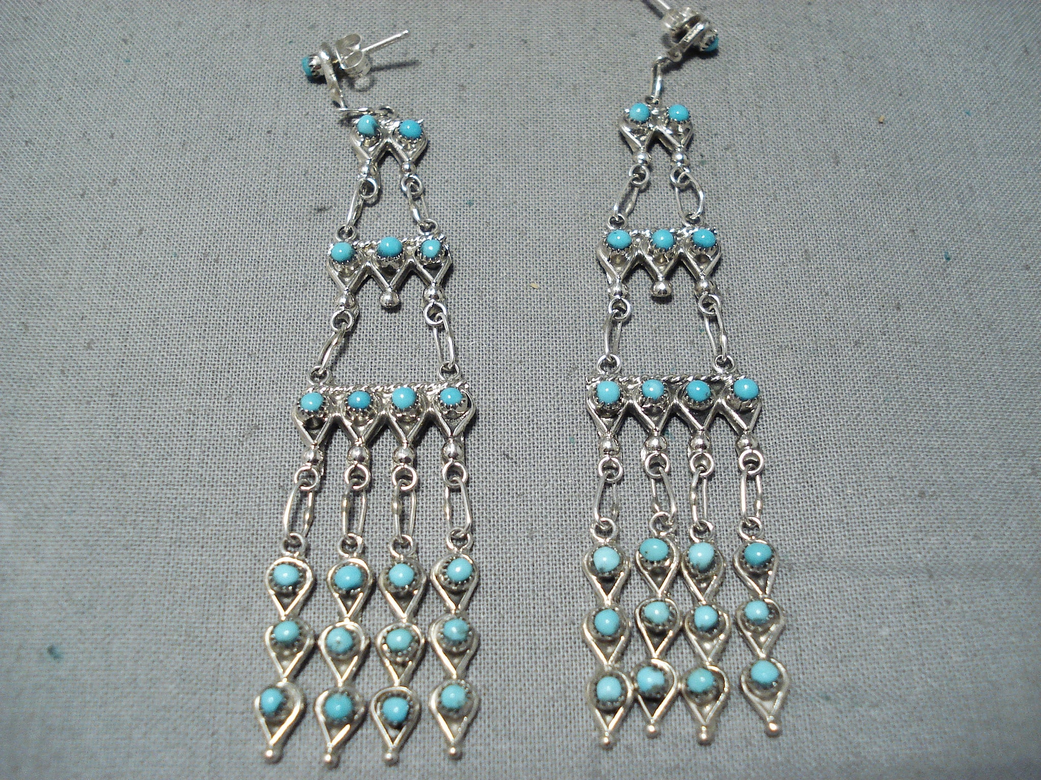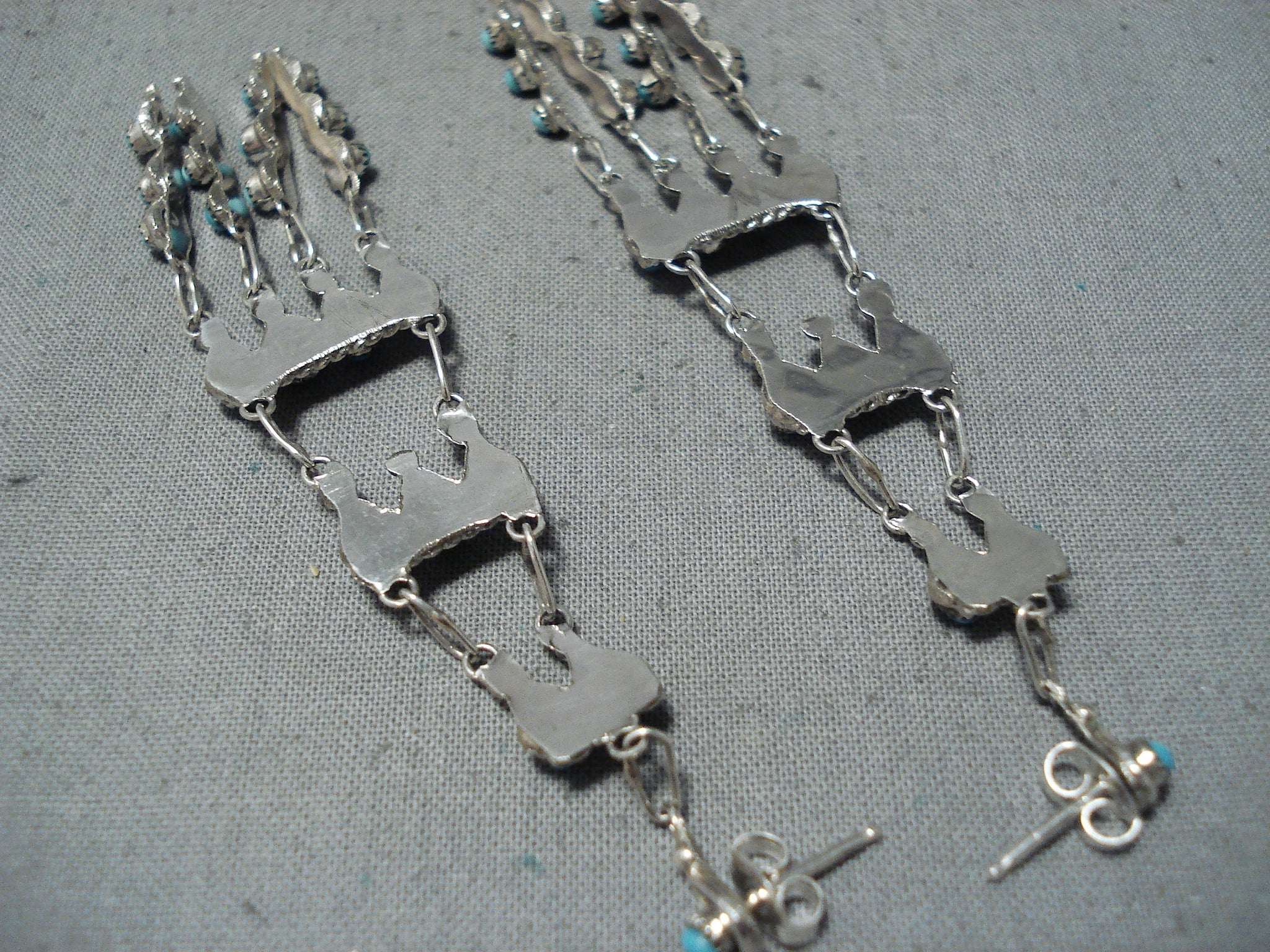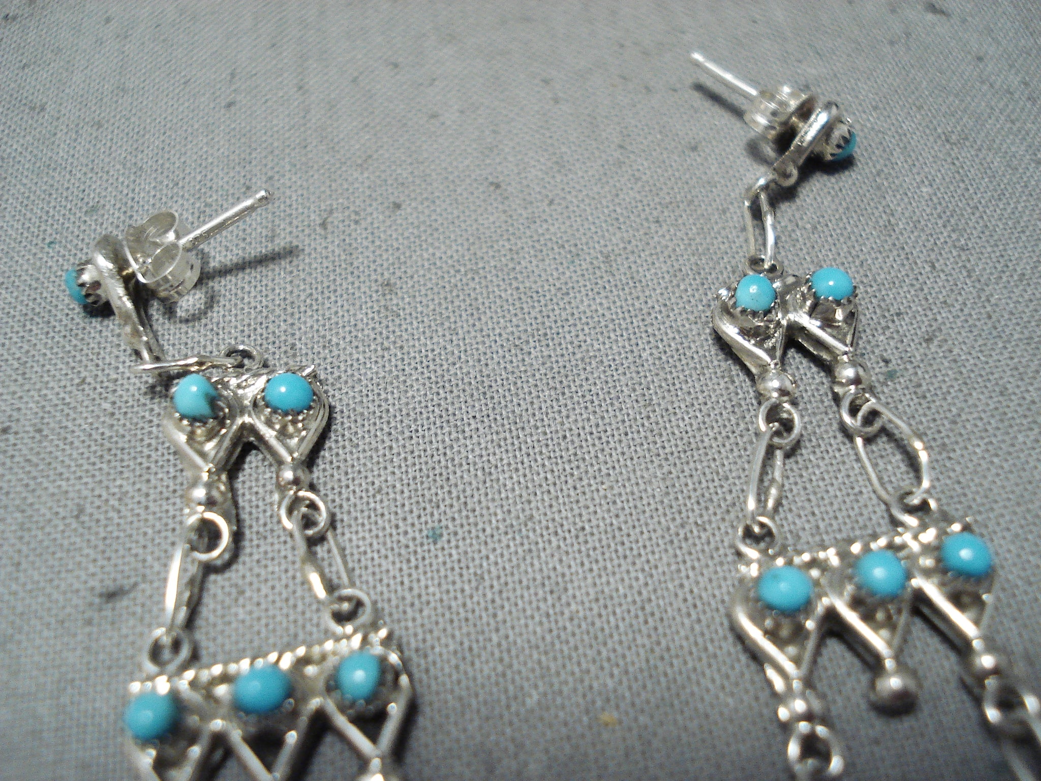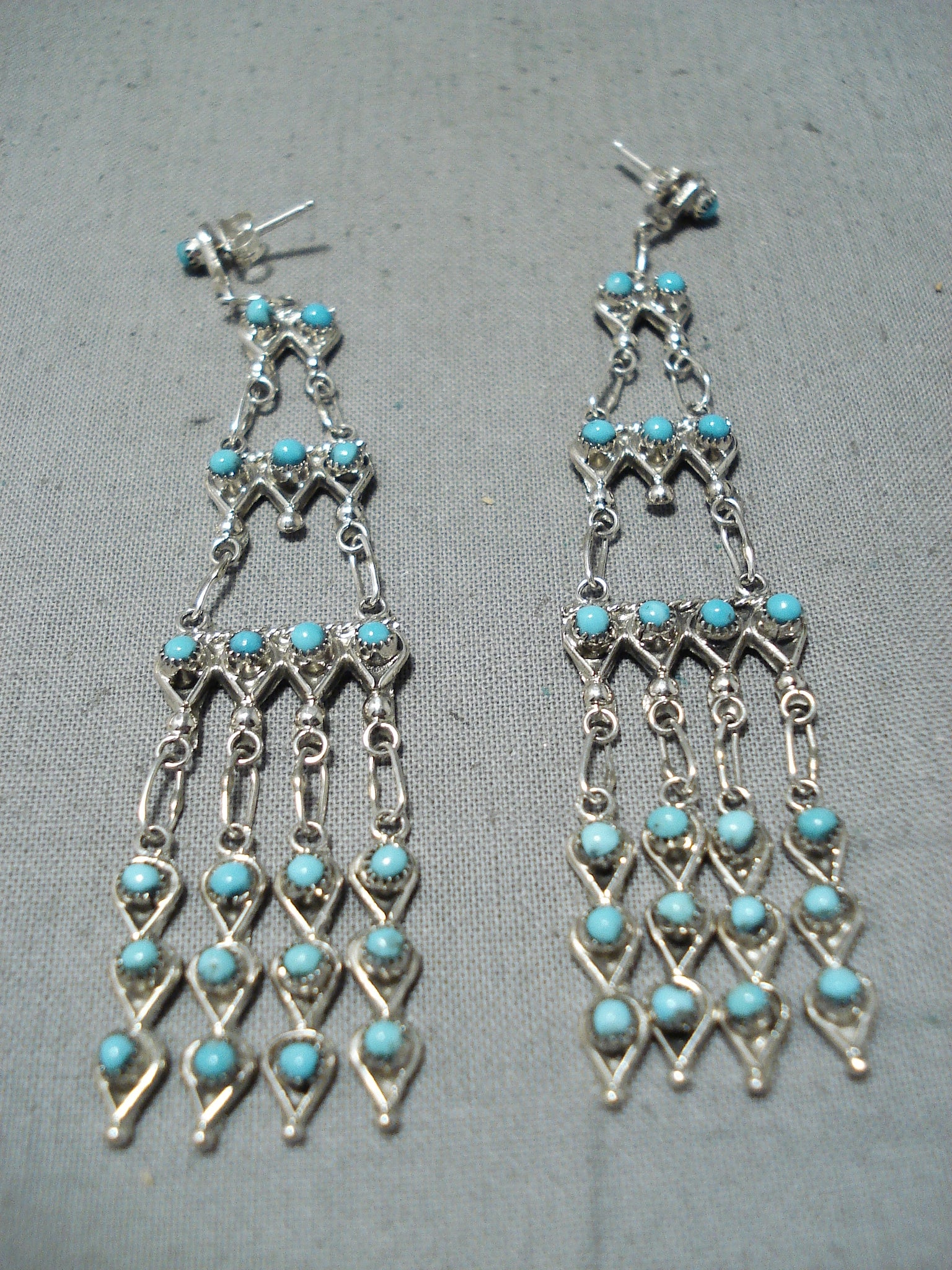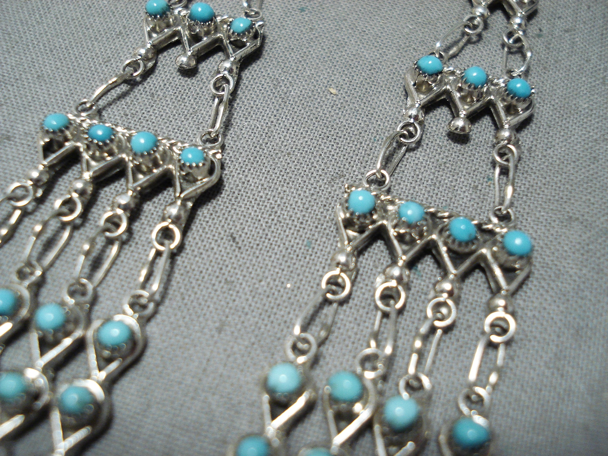 Signed Native American Navajo Turquoise Sterling Silver Chandelier Earrings