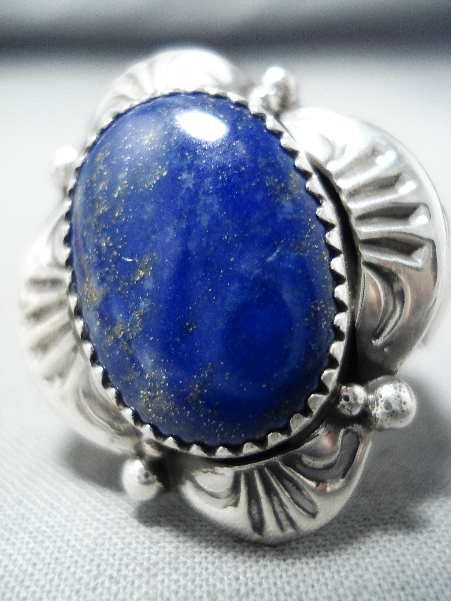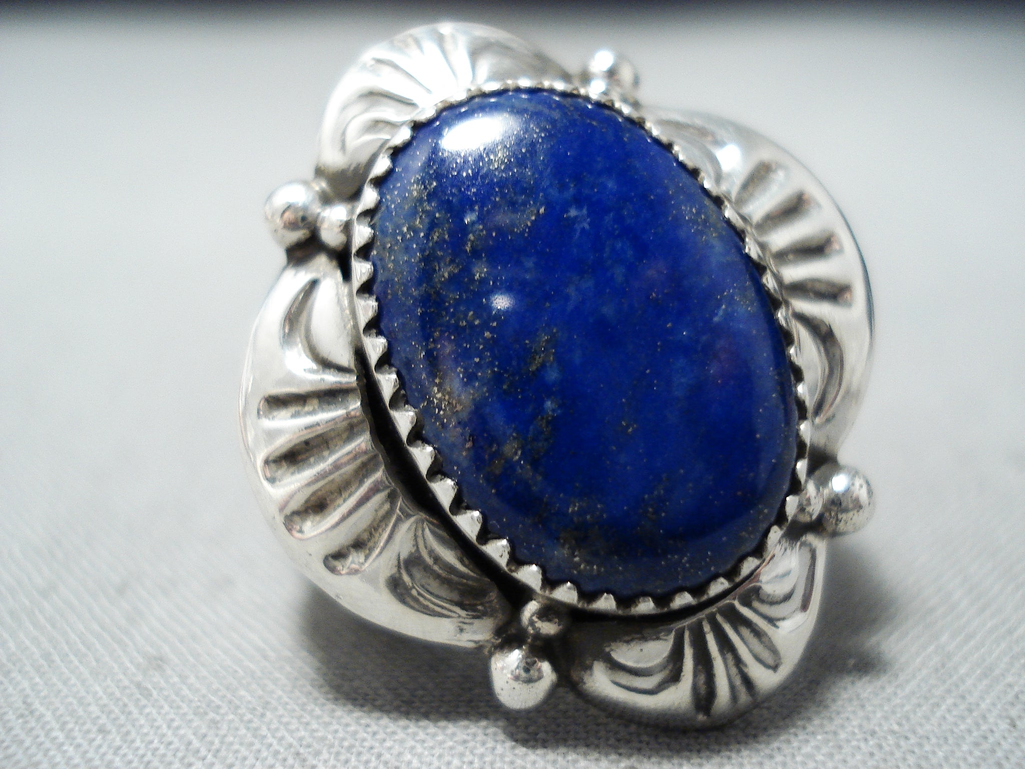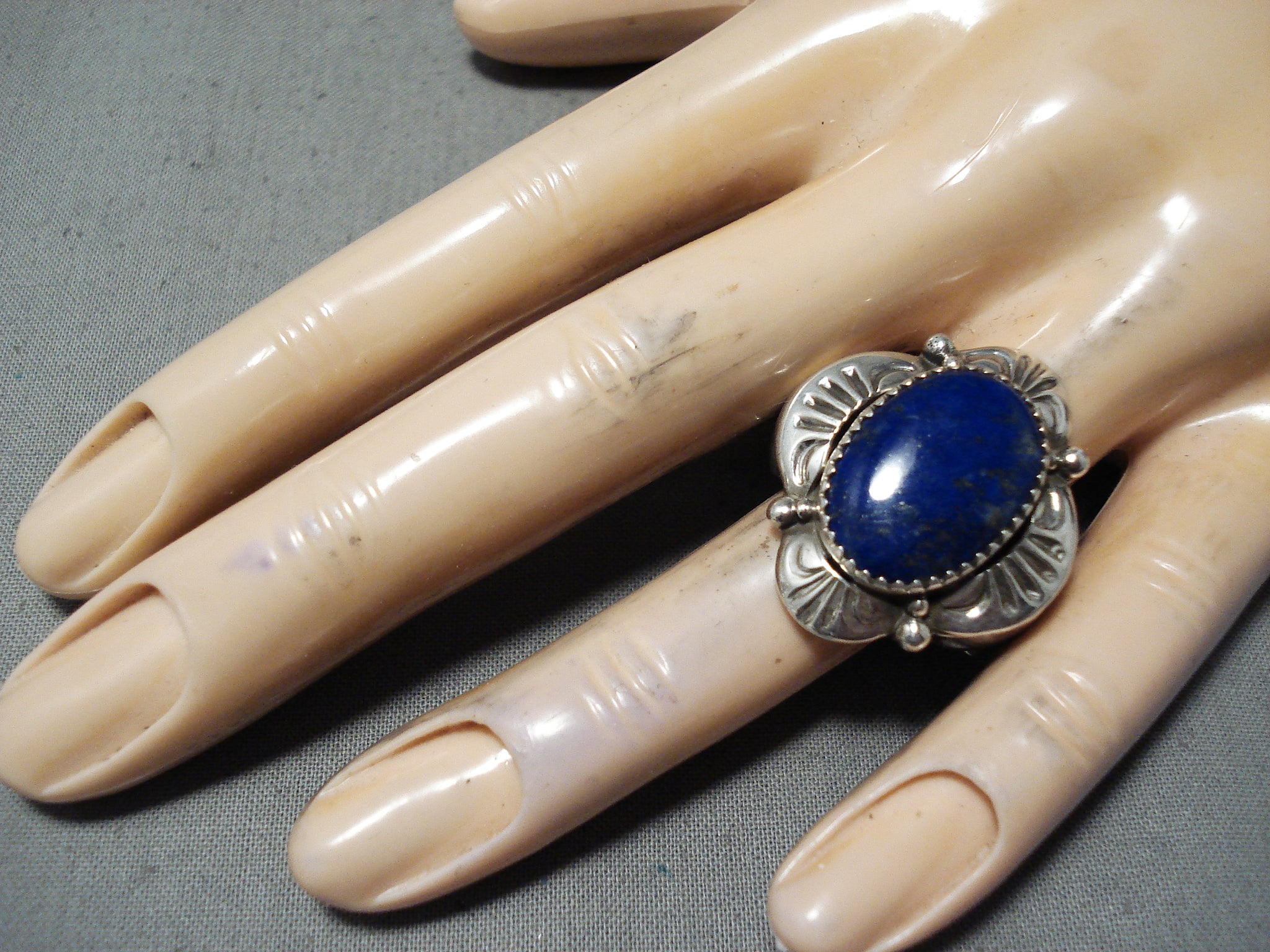 Signed Navajo Native American Lapis Sterling Silver Ring