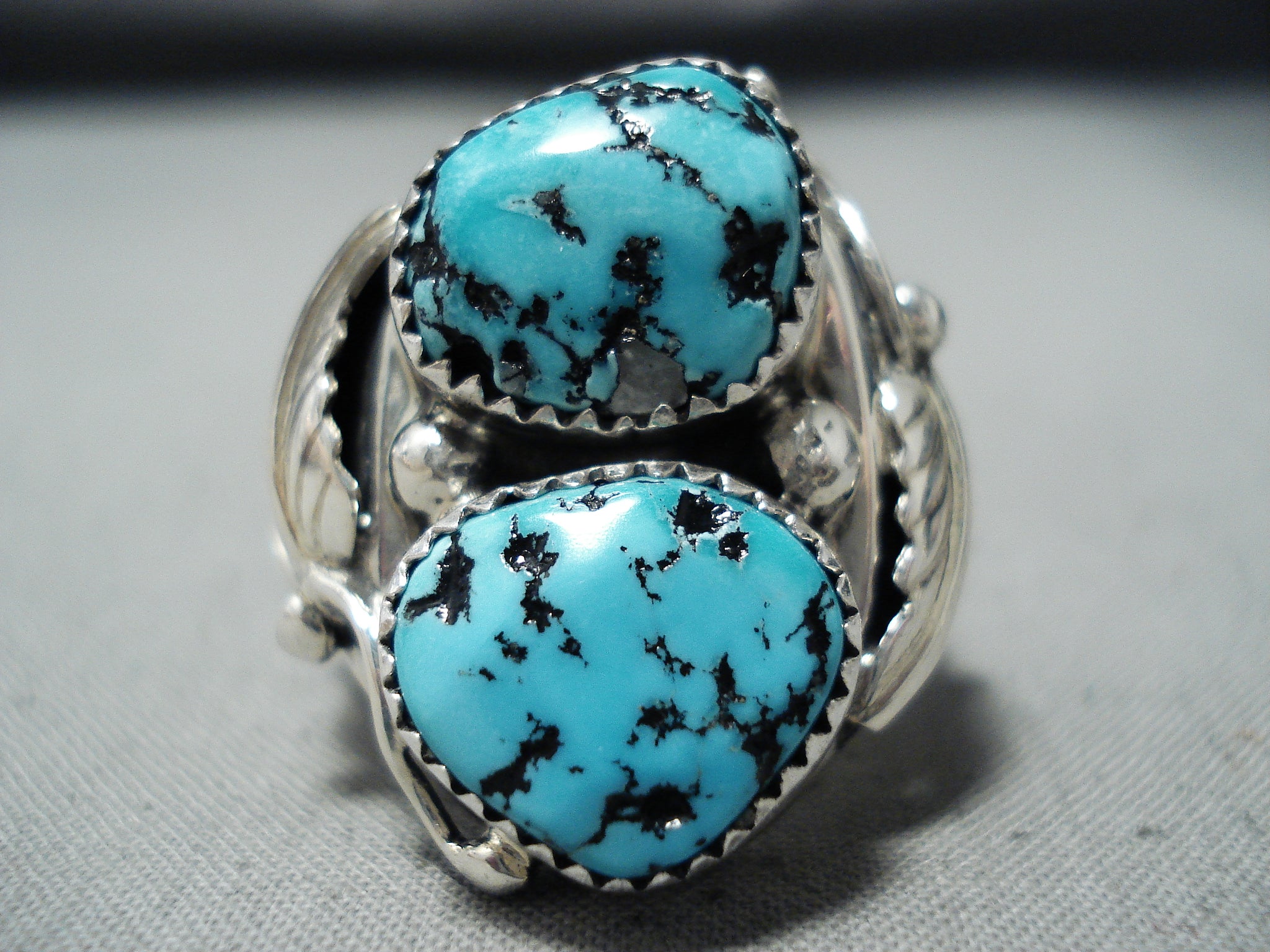 Signed Navajo Native American Sleeping Beauty Turquoise Sterling Silver Ring