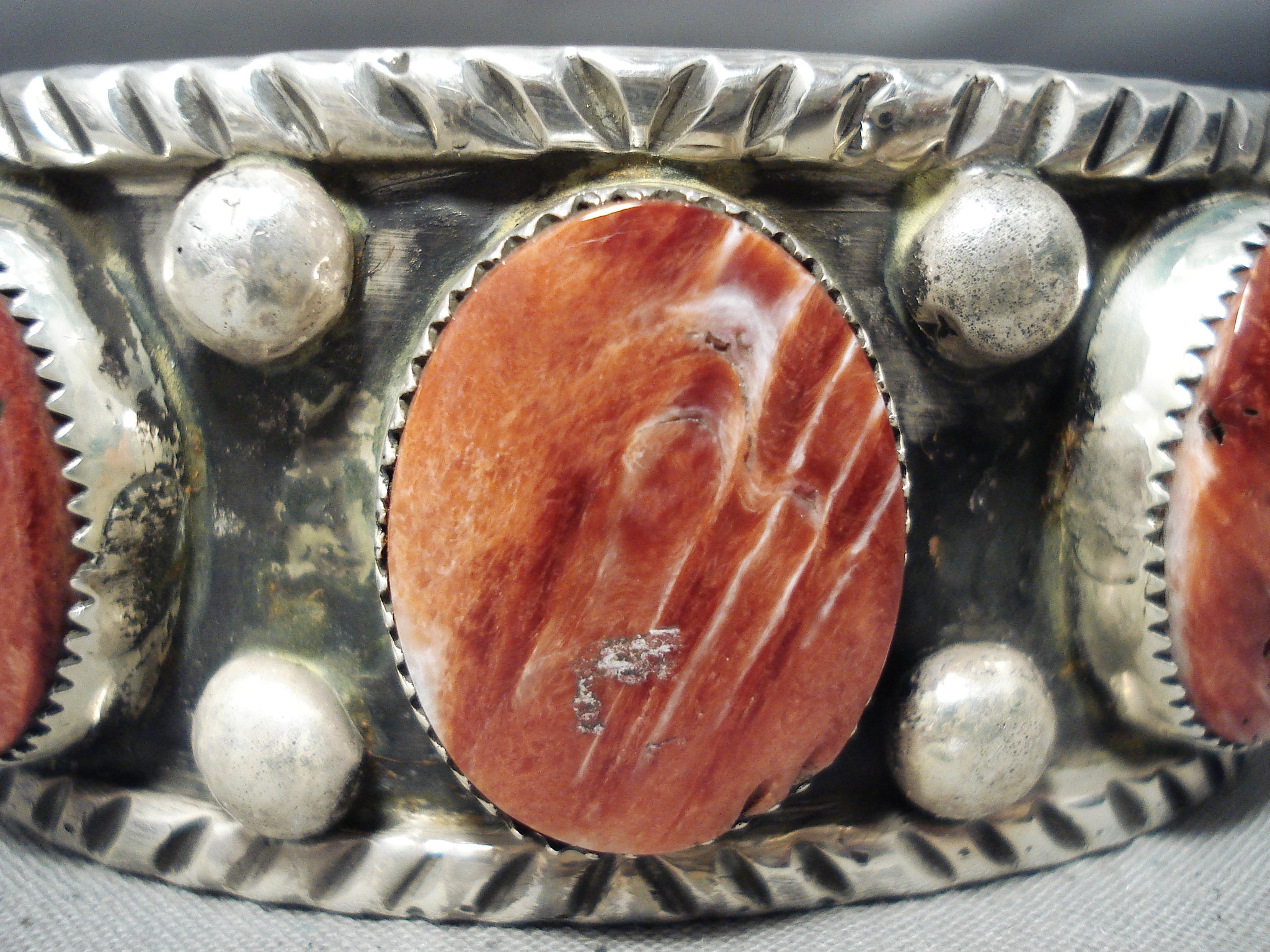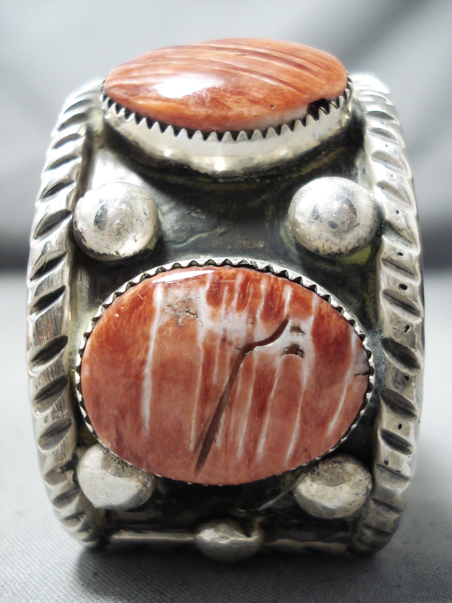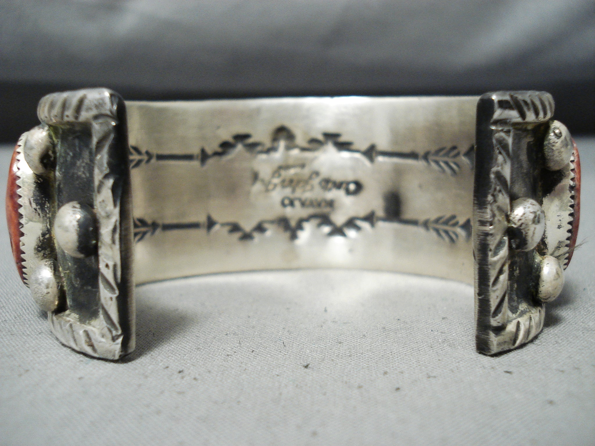 Signed Navajo Red Spiny Oyster Sterling Silver Bracelet Native American