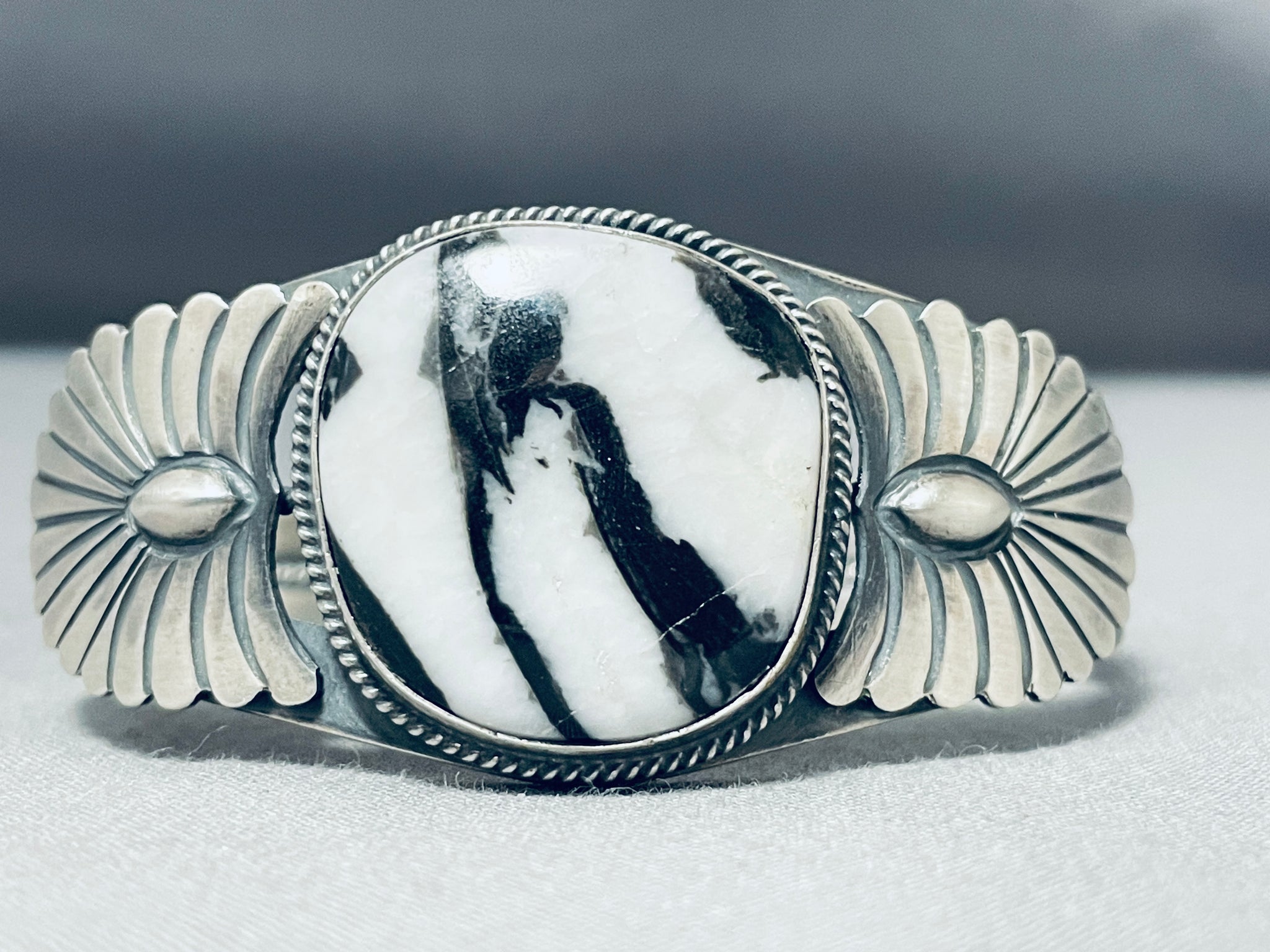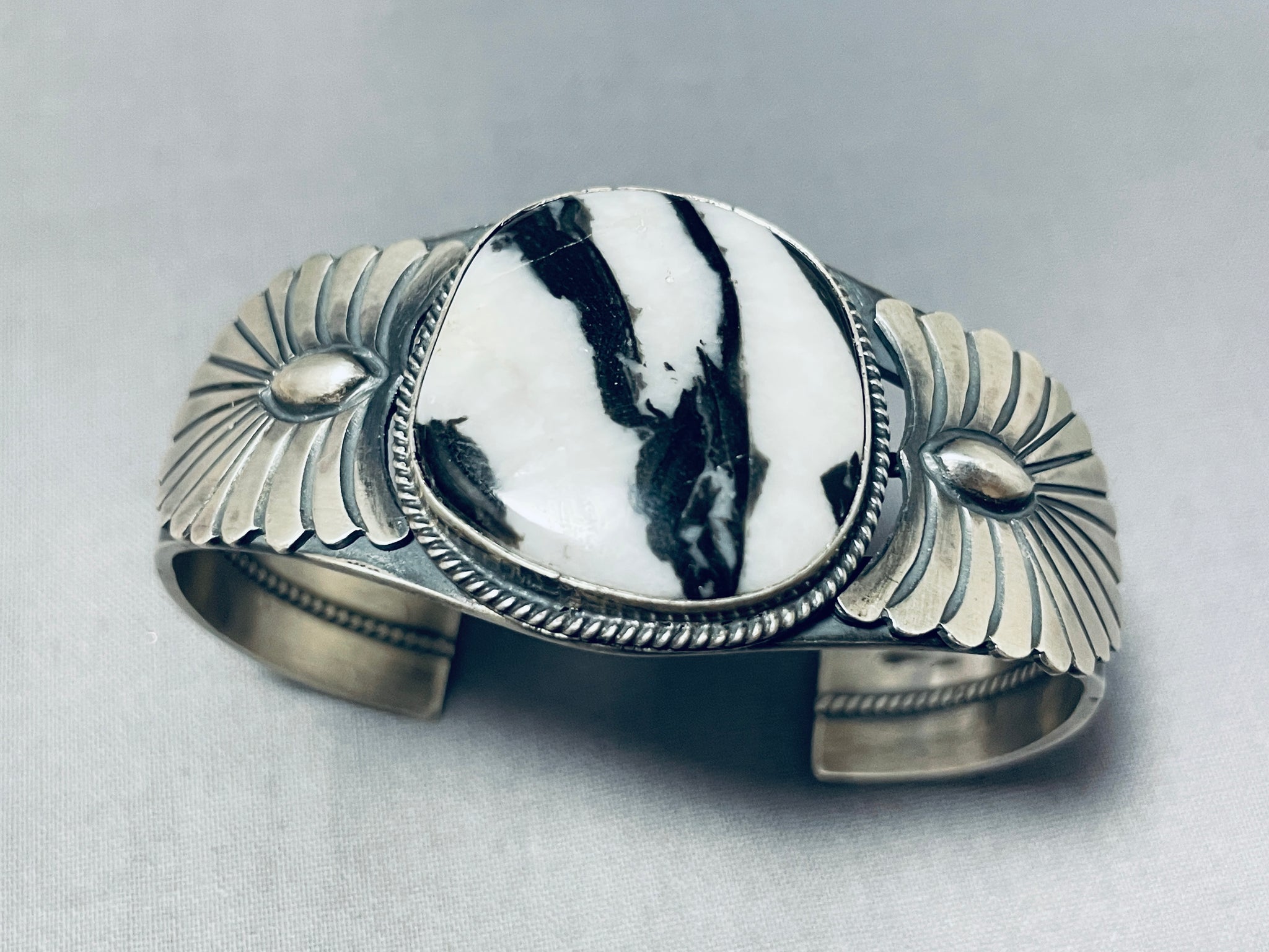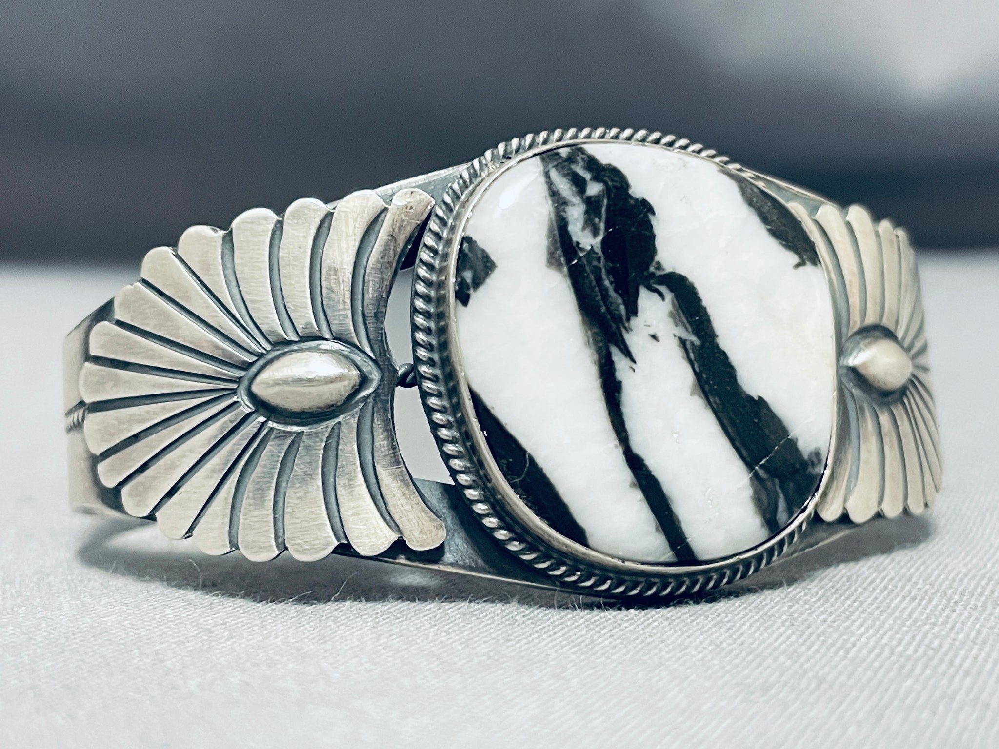 Signed Very Rare Vintage Native American Navajo Ze Bra Jasper Sterling Silver Bracelet
