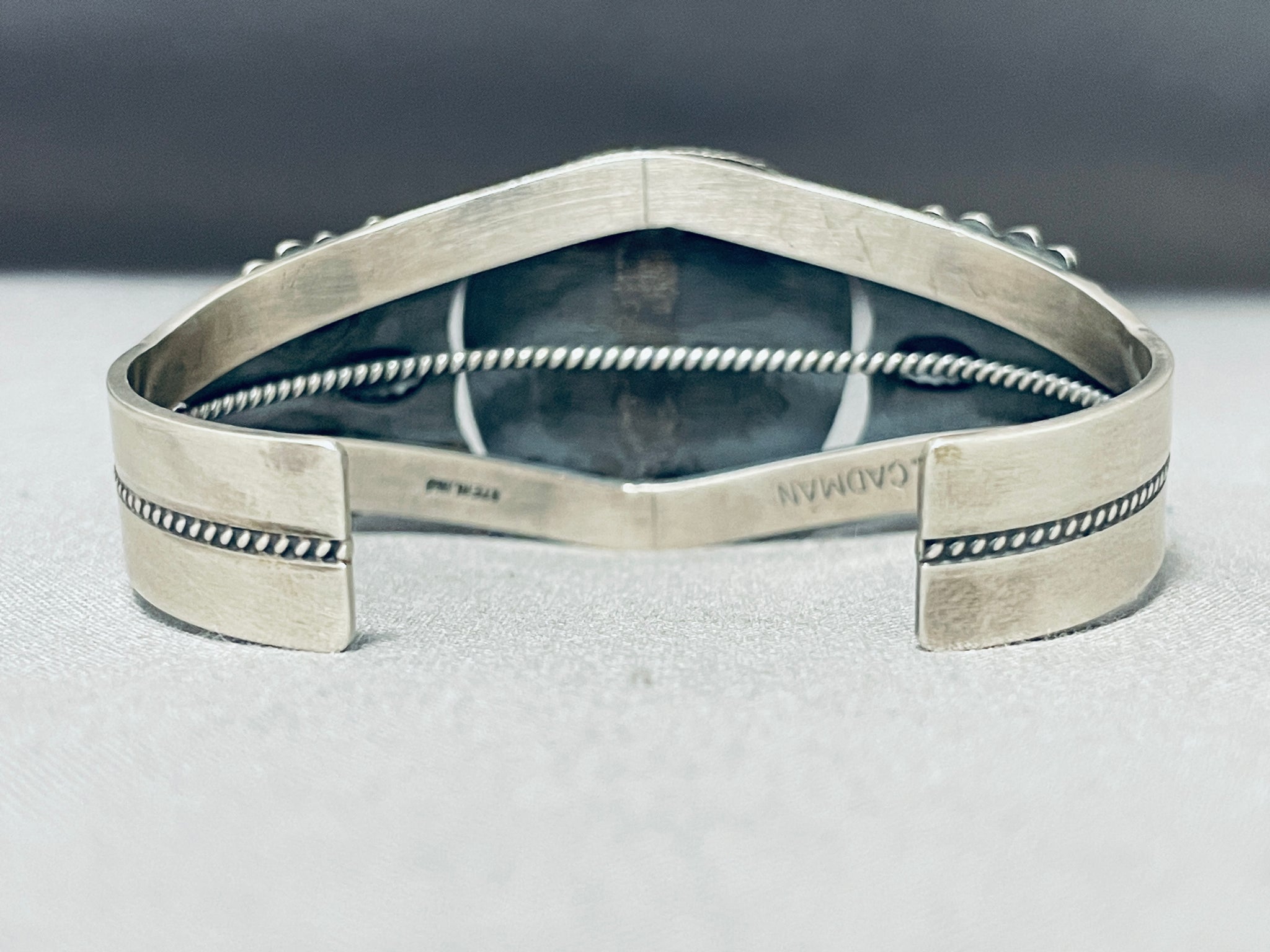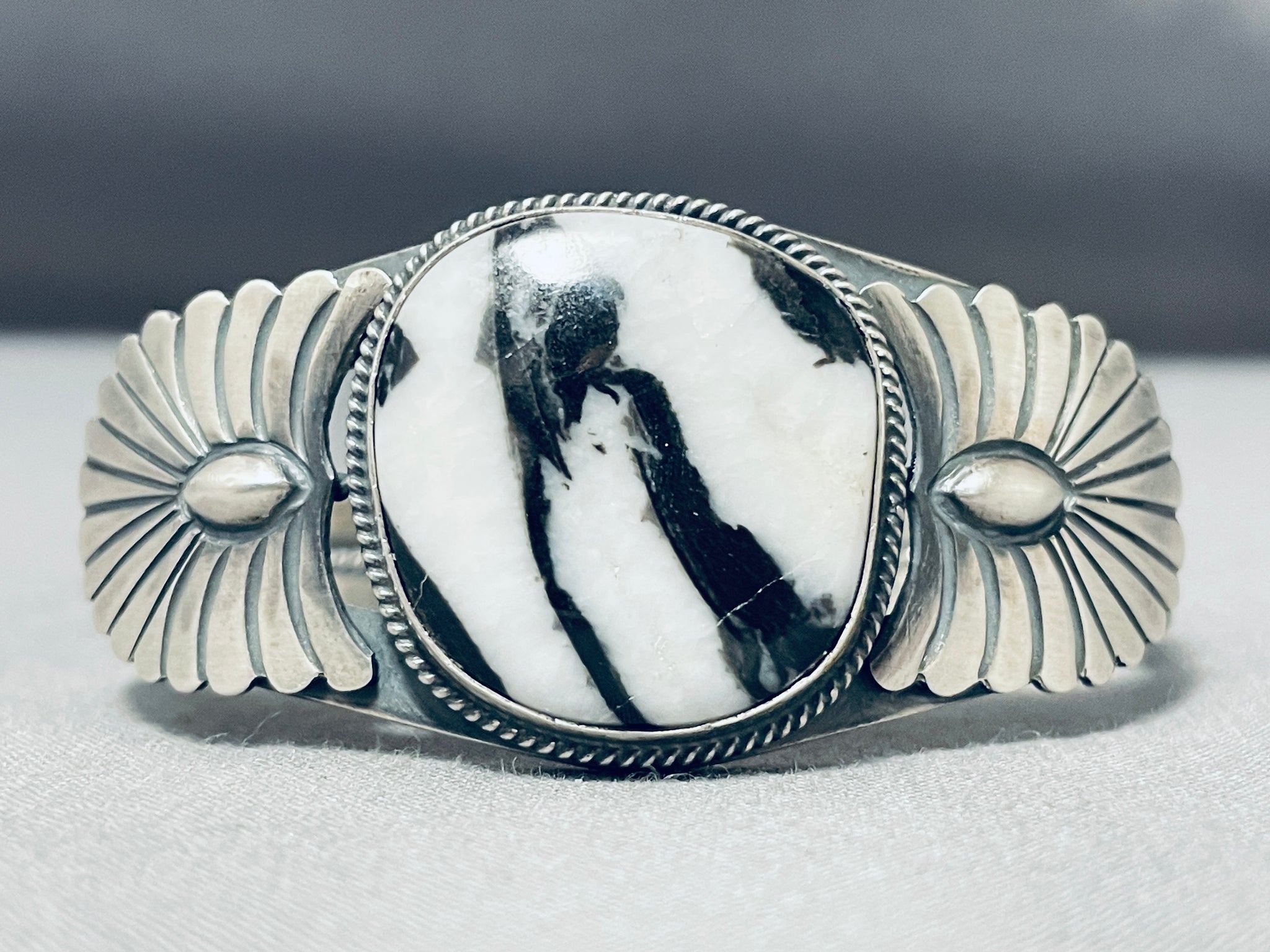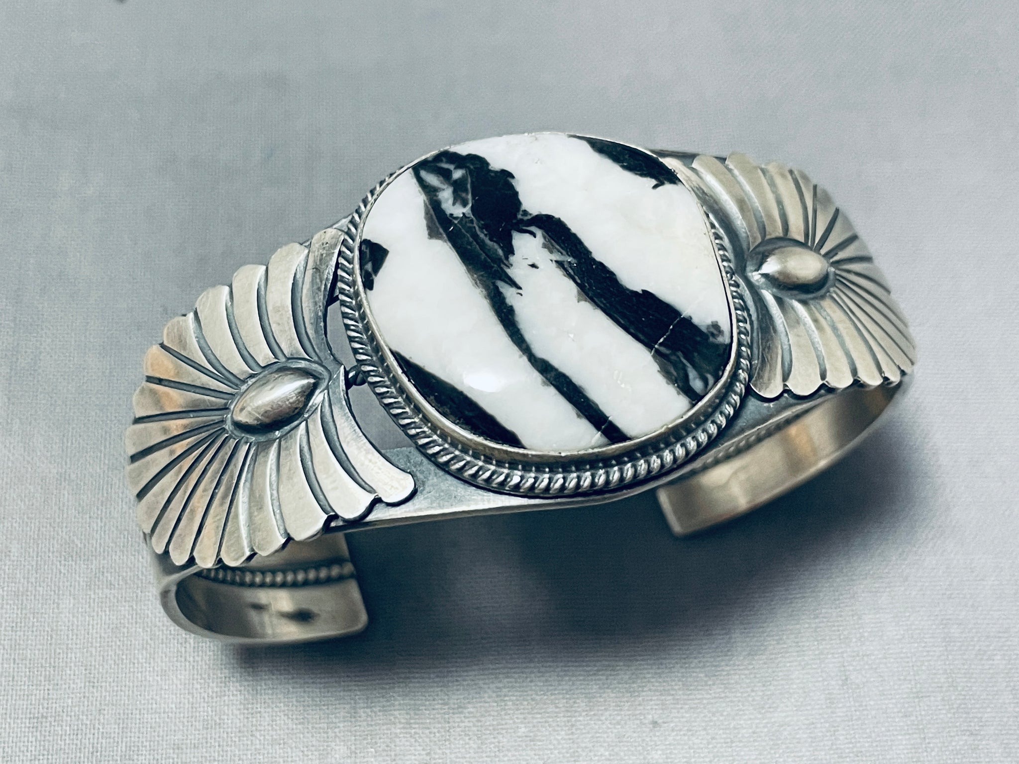 Signed Very Rare Vintage Native American Navajo Ze Bra Jasper Sterling Silver Bracelet
