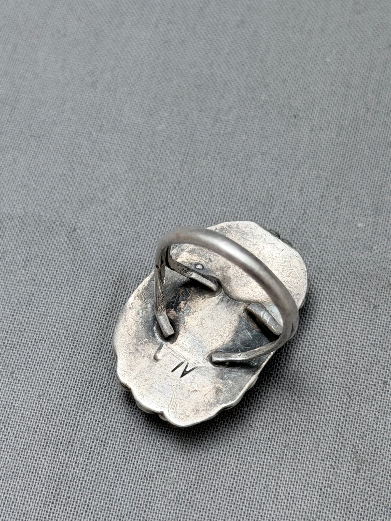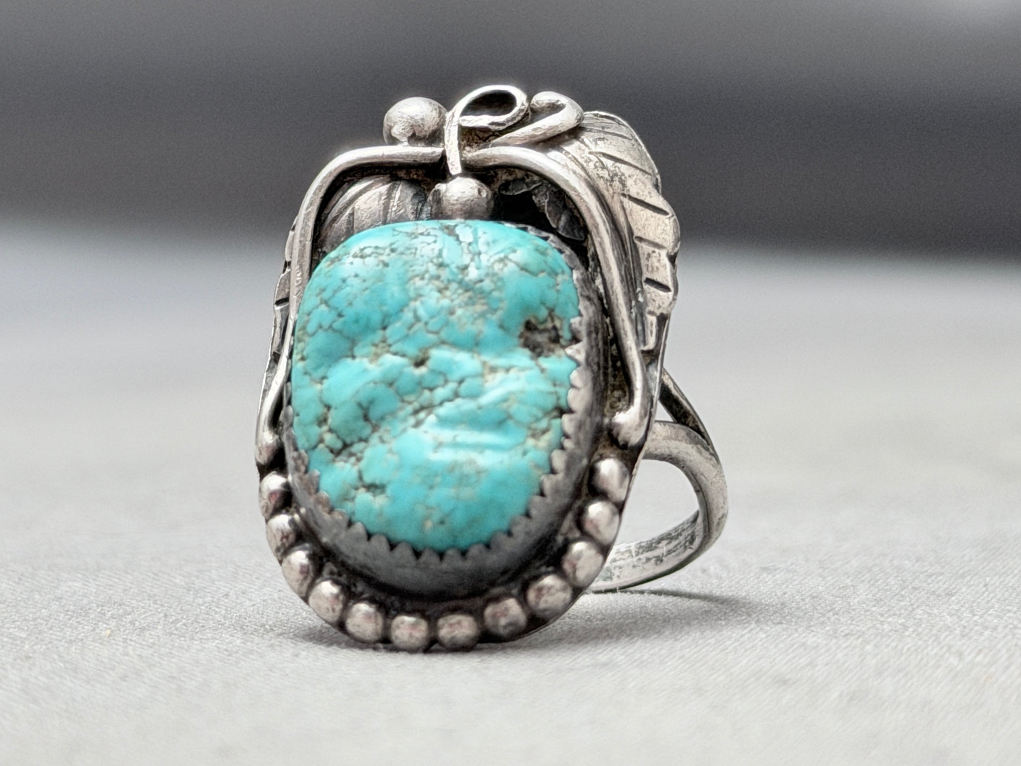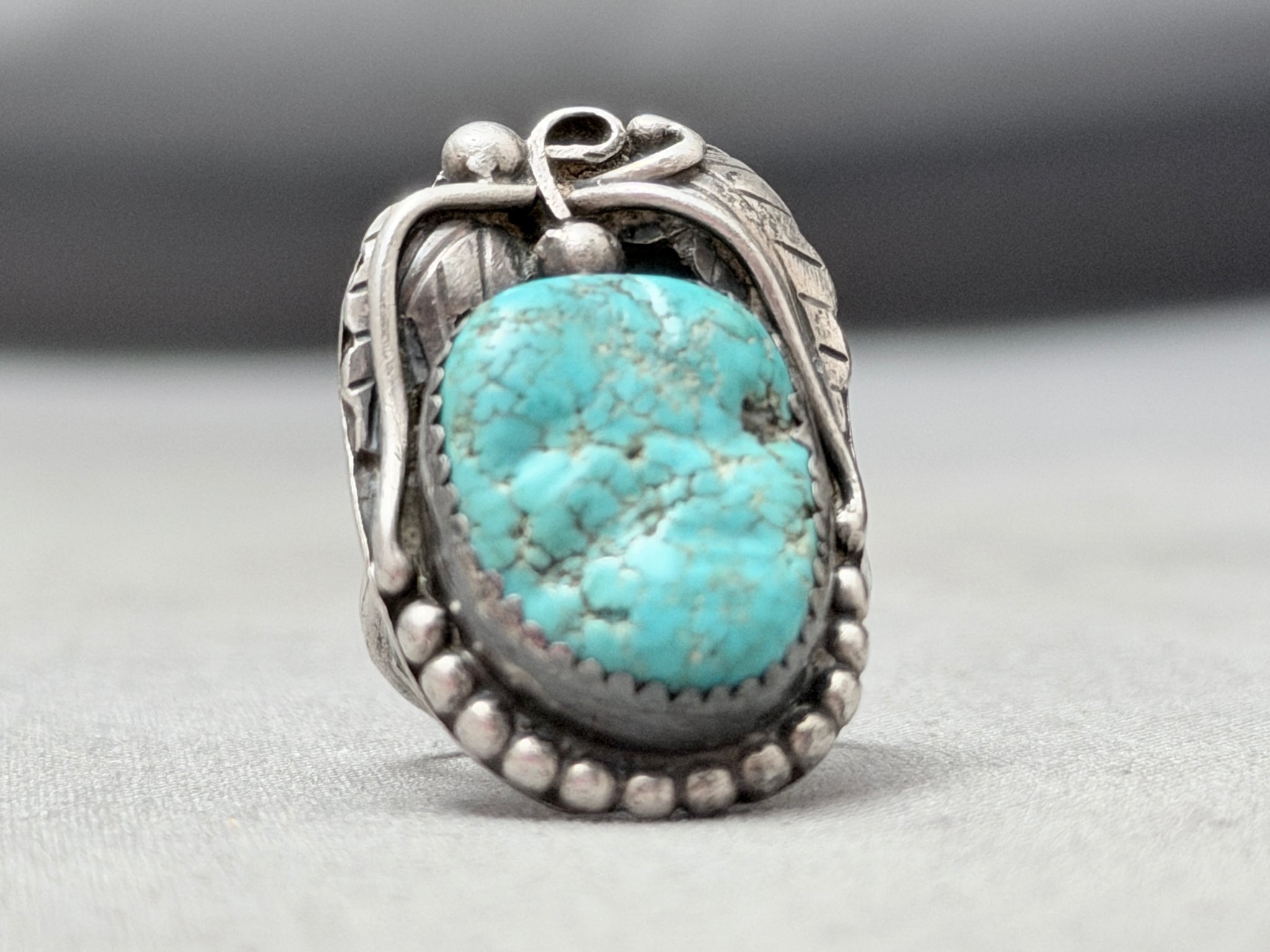 Signed Vintage Native American Navajo Old Kingman Turquoise Sterling Silver Ring Old