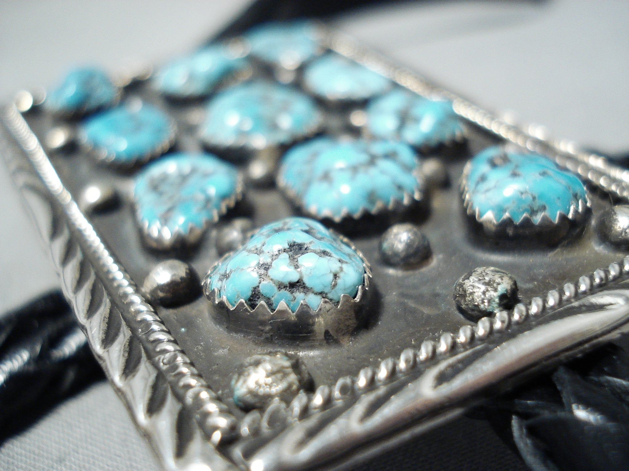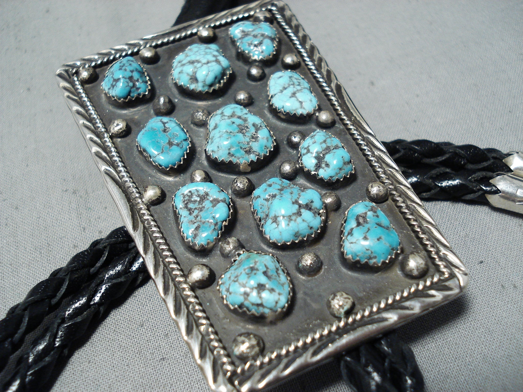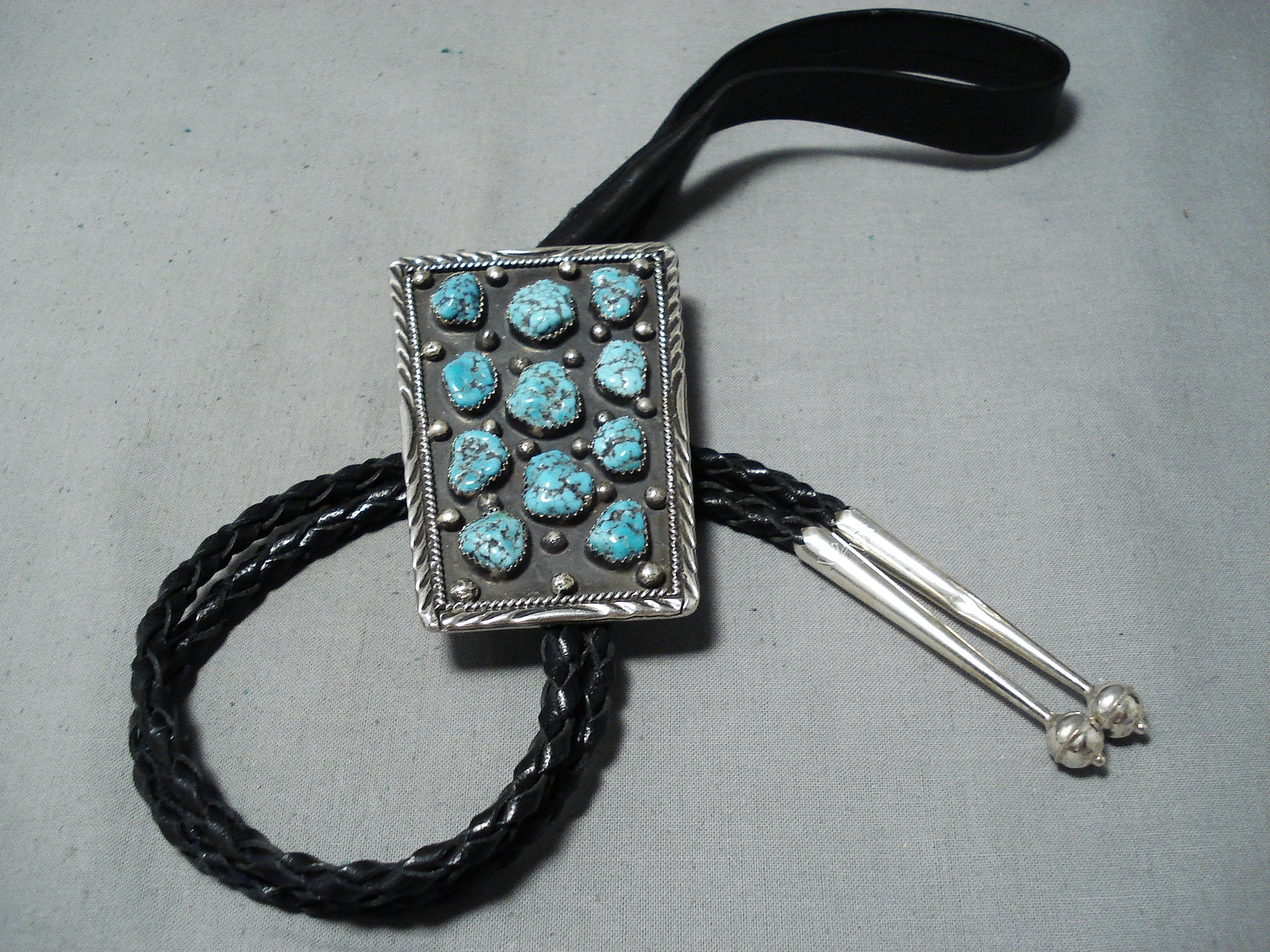 Signed Vintage Native American Navajo Sleeping Beauty Turquoise Sterling Silver Bolo Tie