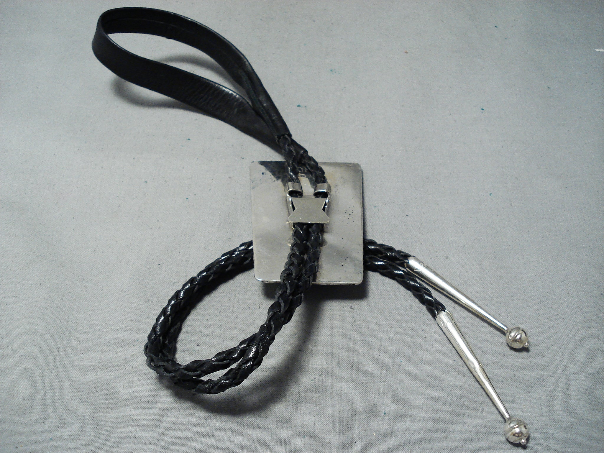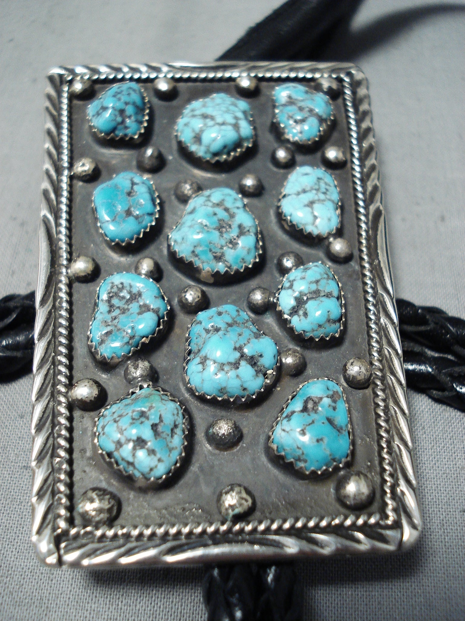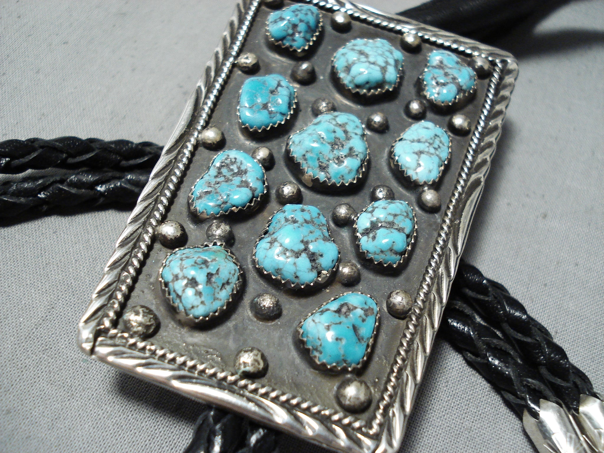 Signed Vintage Native American Navajo Sleeping Beauty Turquoise Sterling Silver Bolo Tie