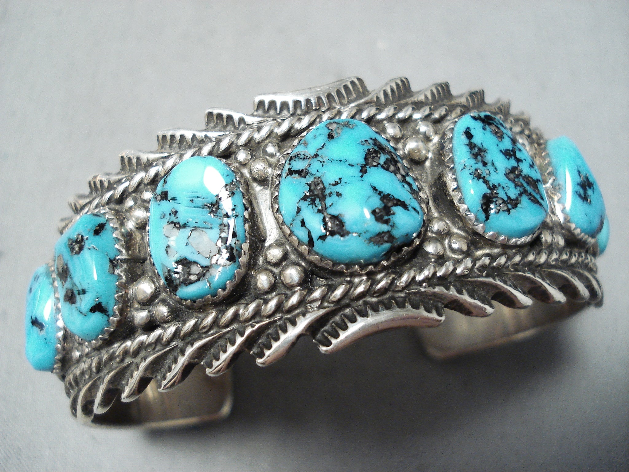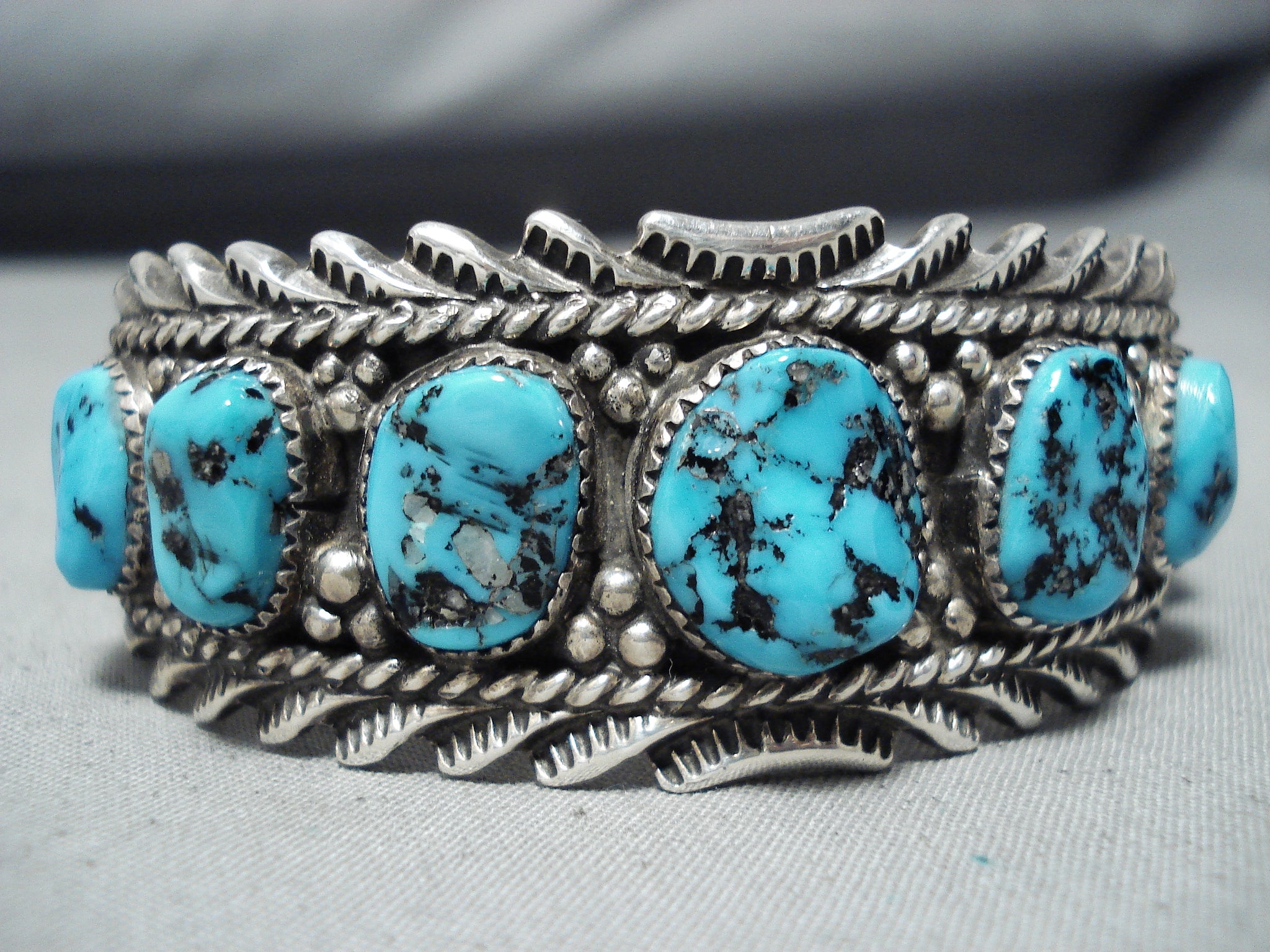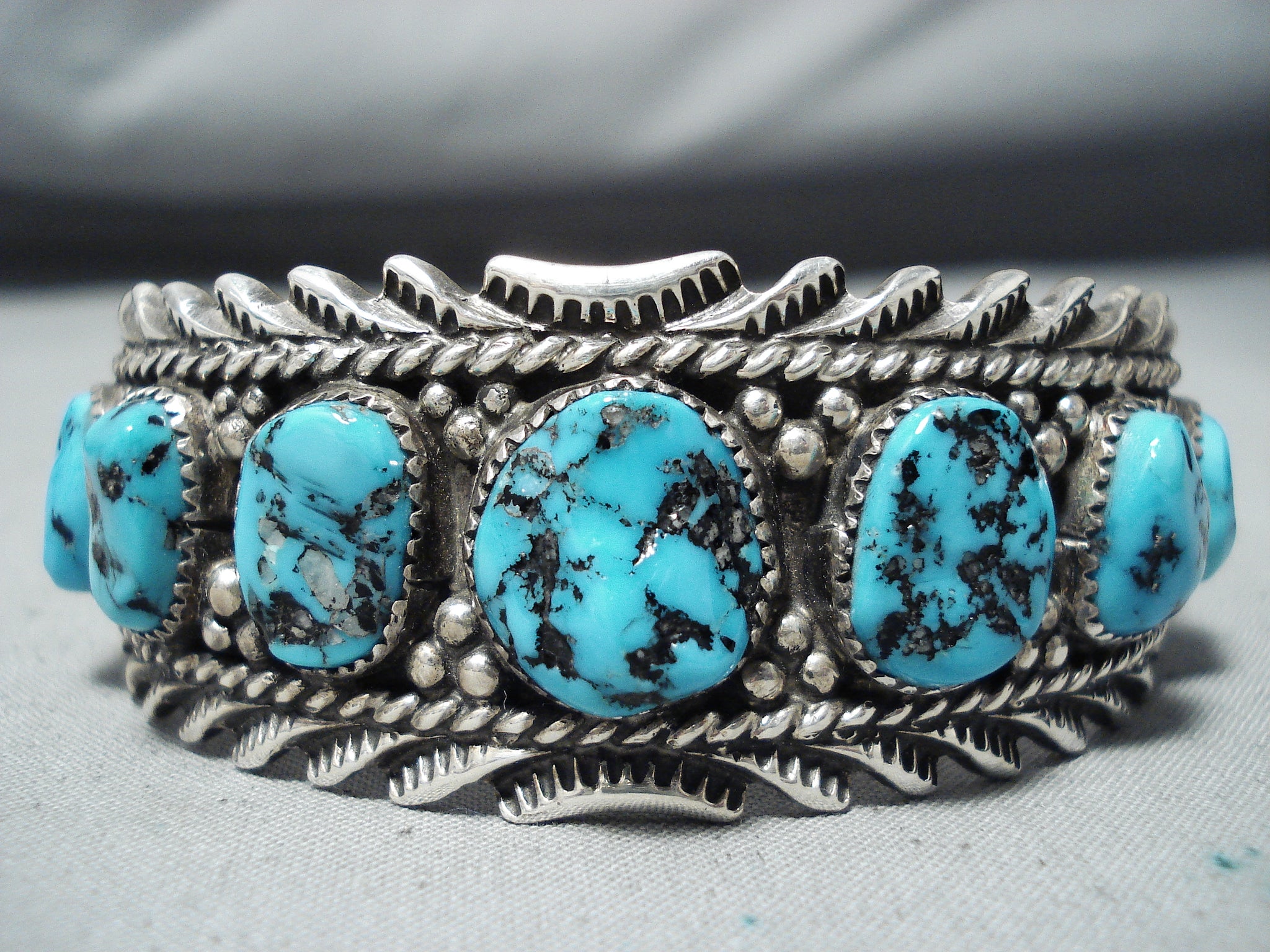 Signed Vintage Native American Navajo Sleeping Beauty Turquoise Sterling Silver Bracelet