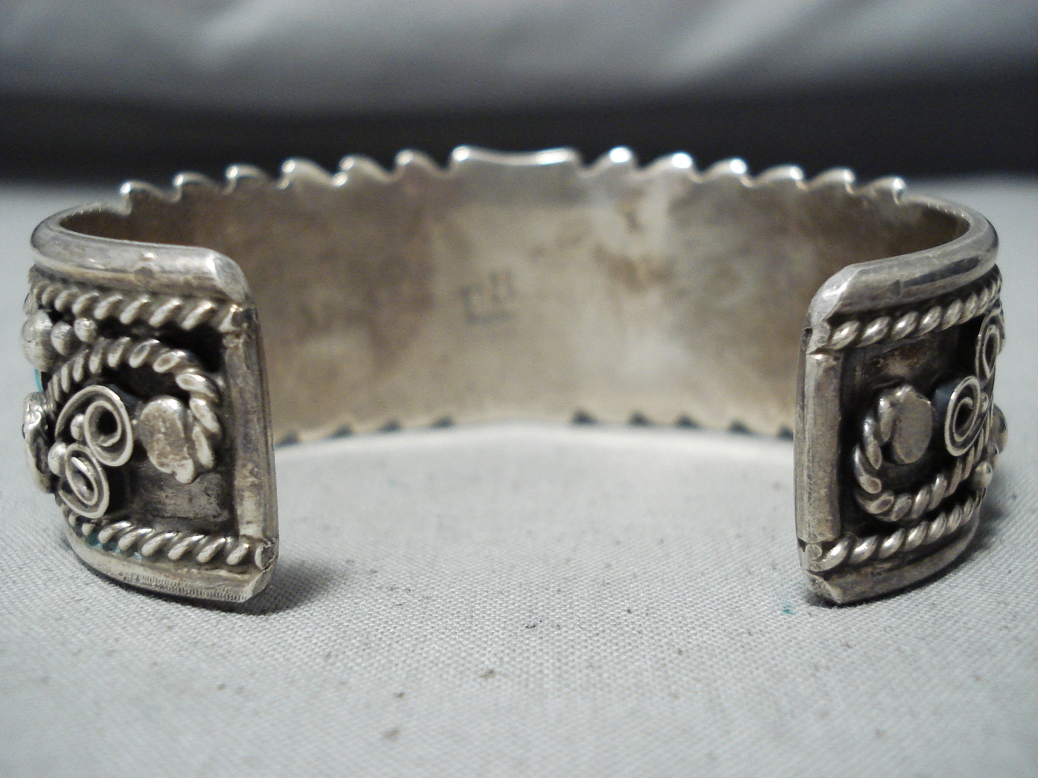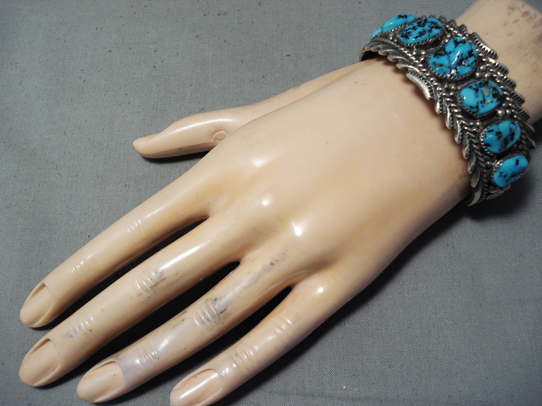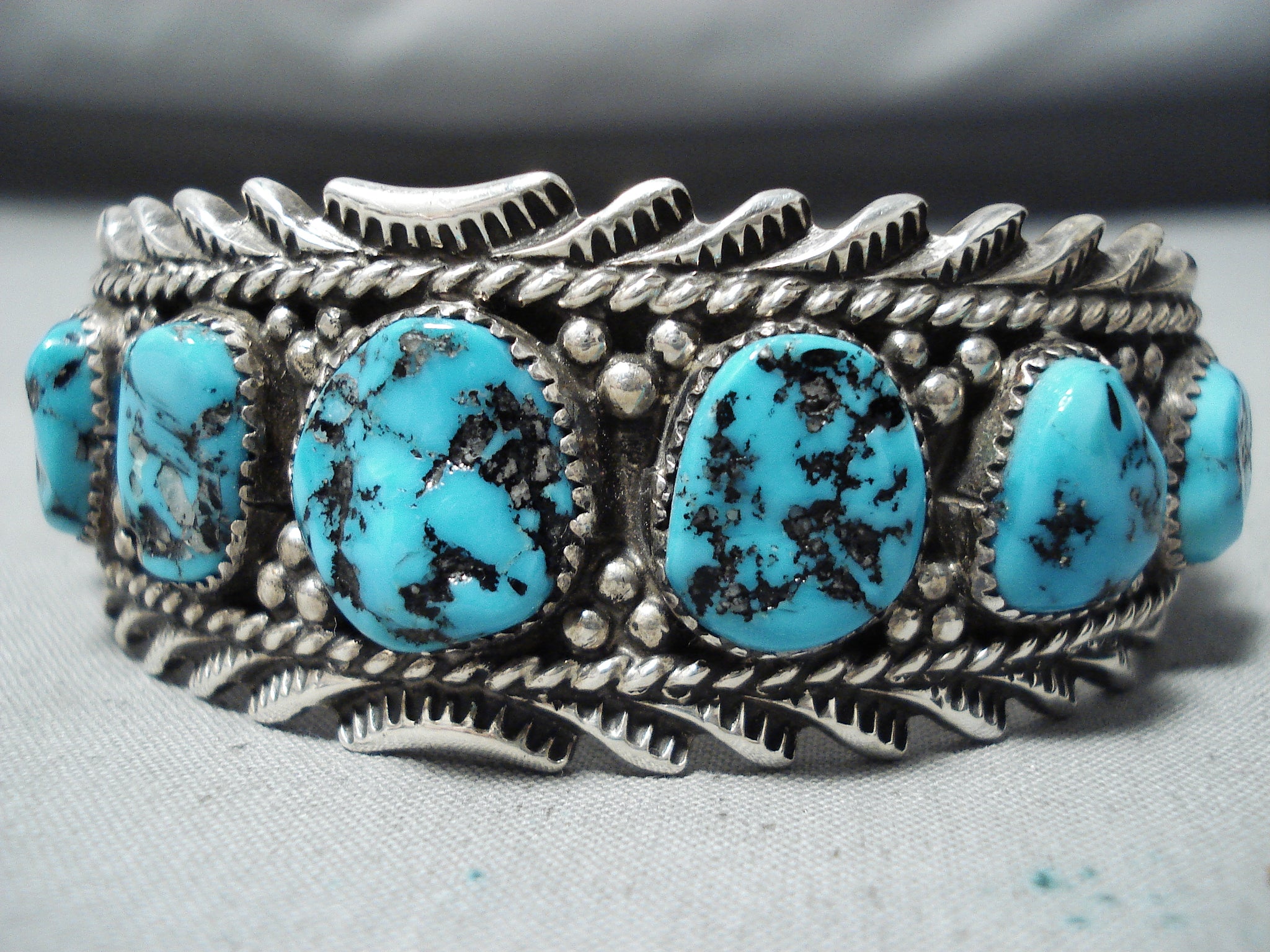 Signed Vintage Native American Navajo Sleeping Beauty Turquoise Sterling Silver Bracelet