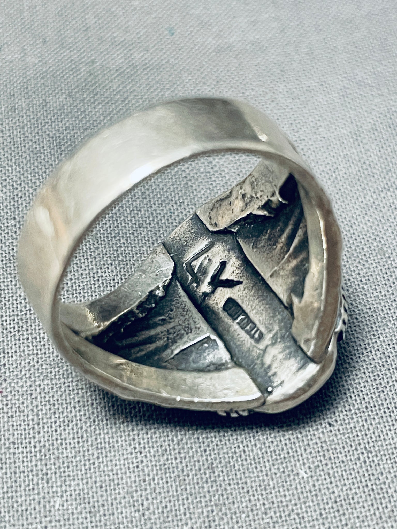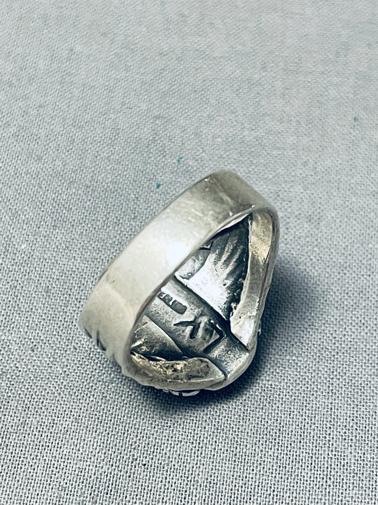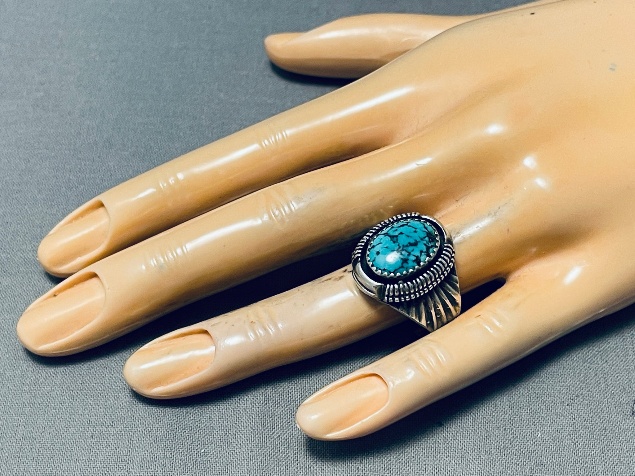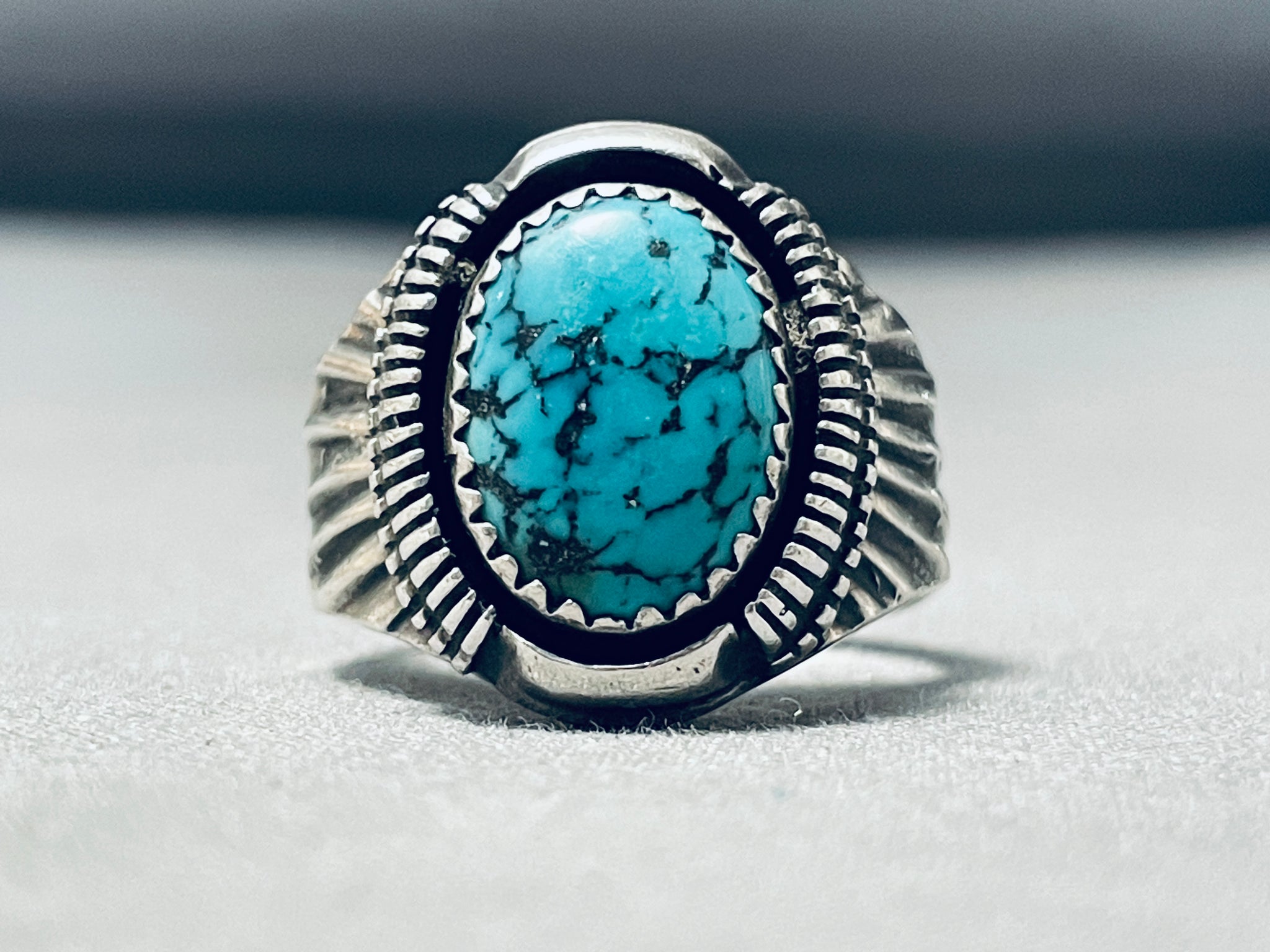 Signed Vintage Native American Navajo Spiderweb Turquoise Sterling Silver Ring