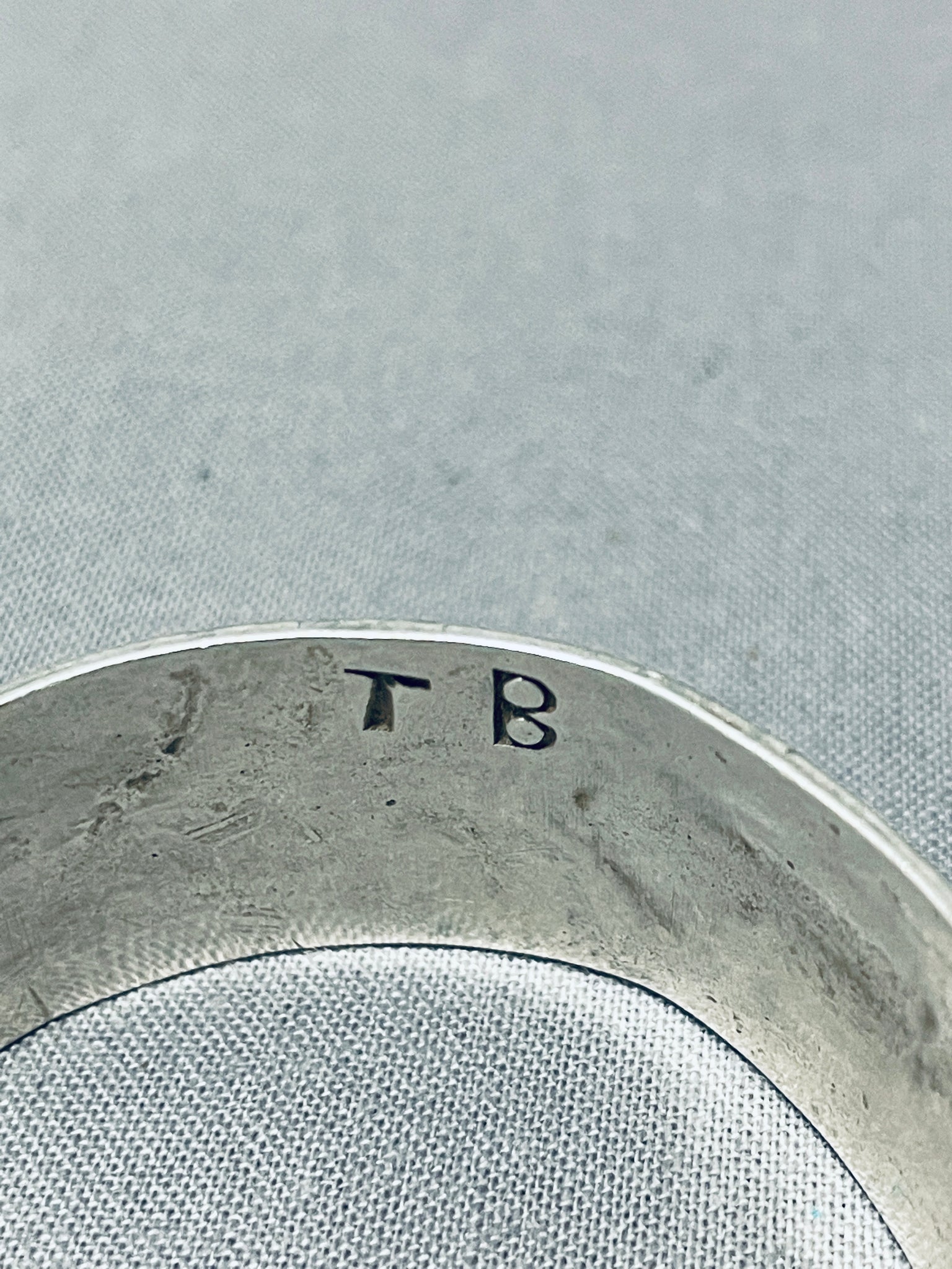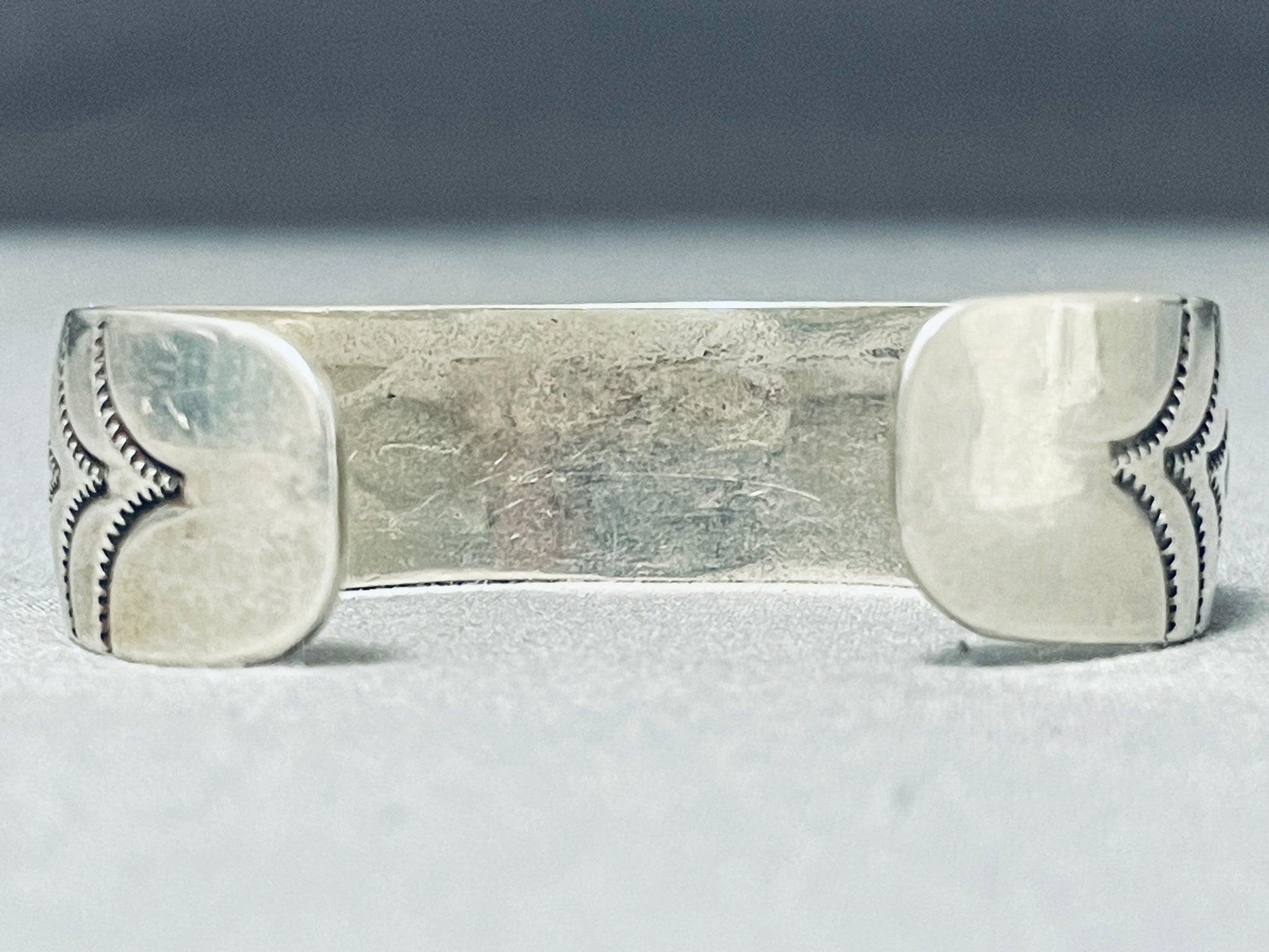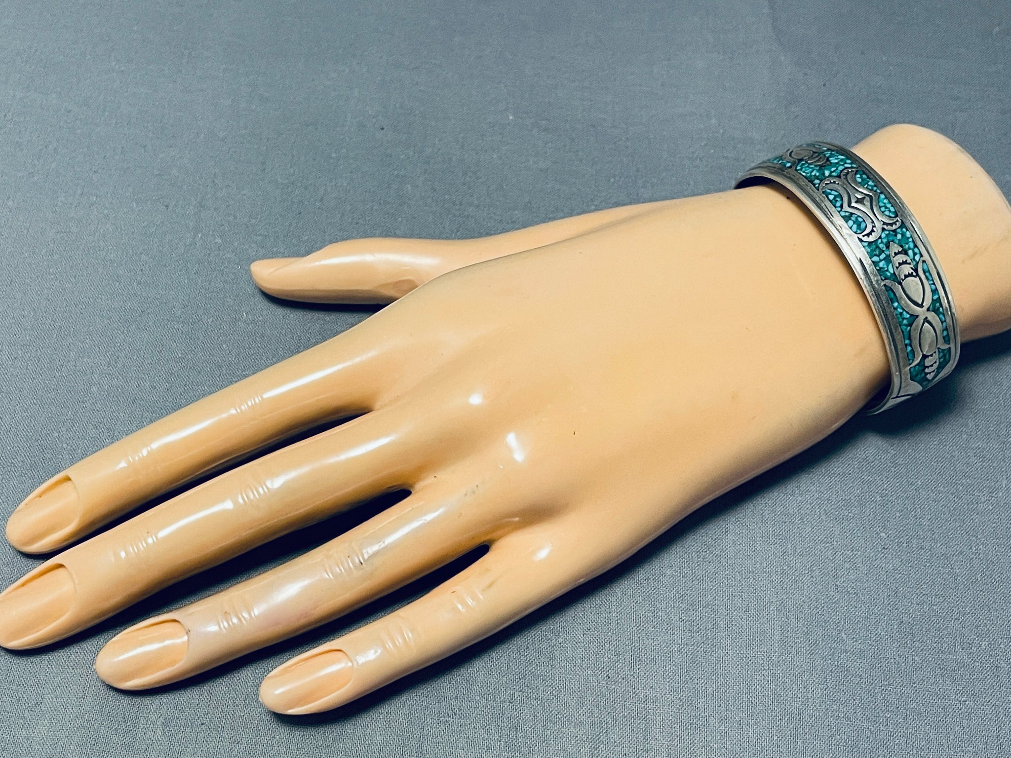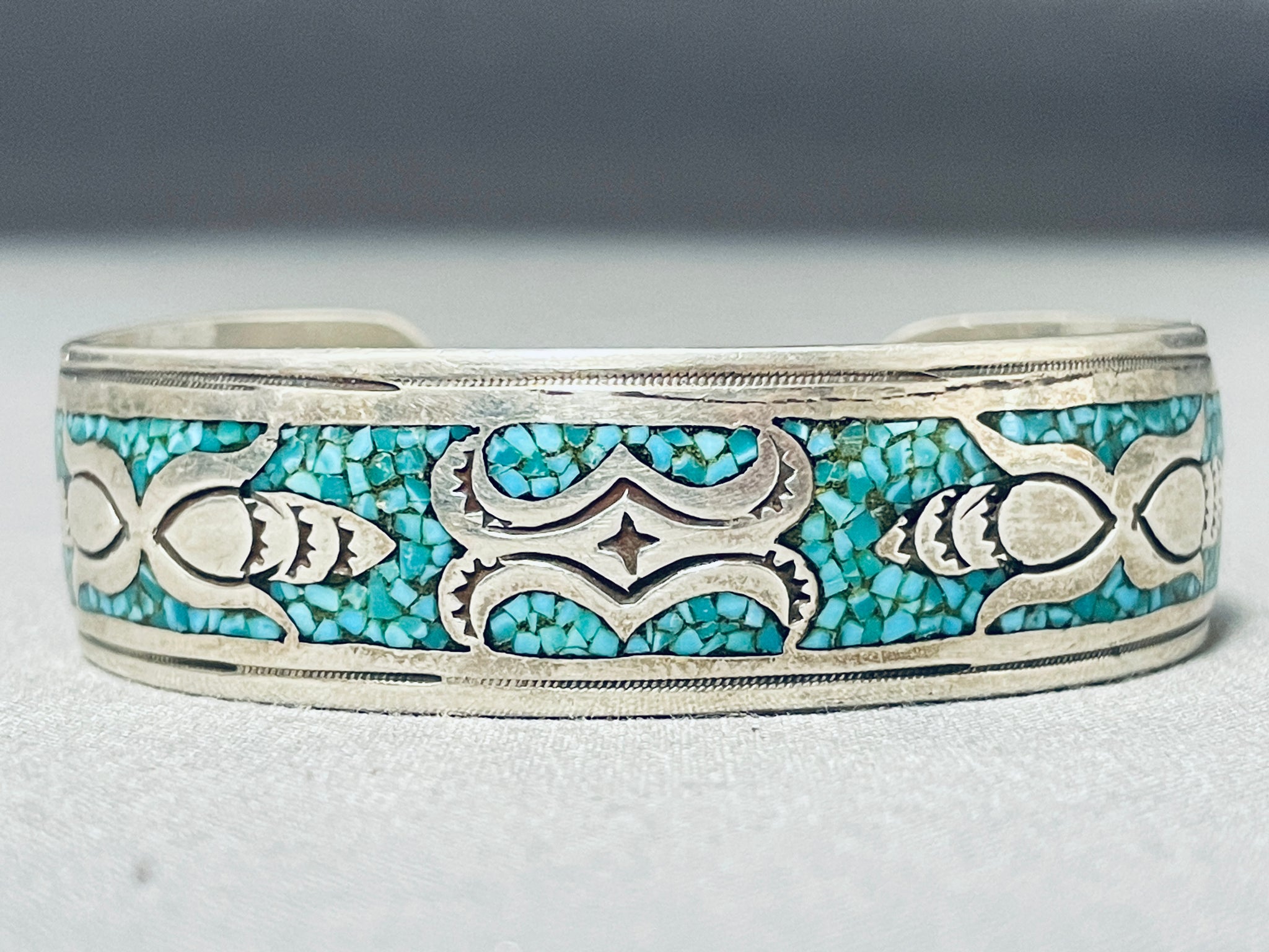 Signed Vintage Native American Navajo Turquoise Chip Inlay Sterling Silver Bracelet