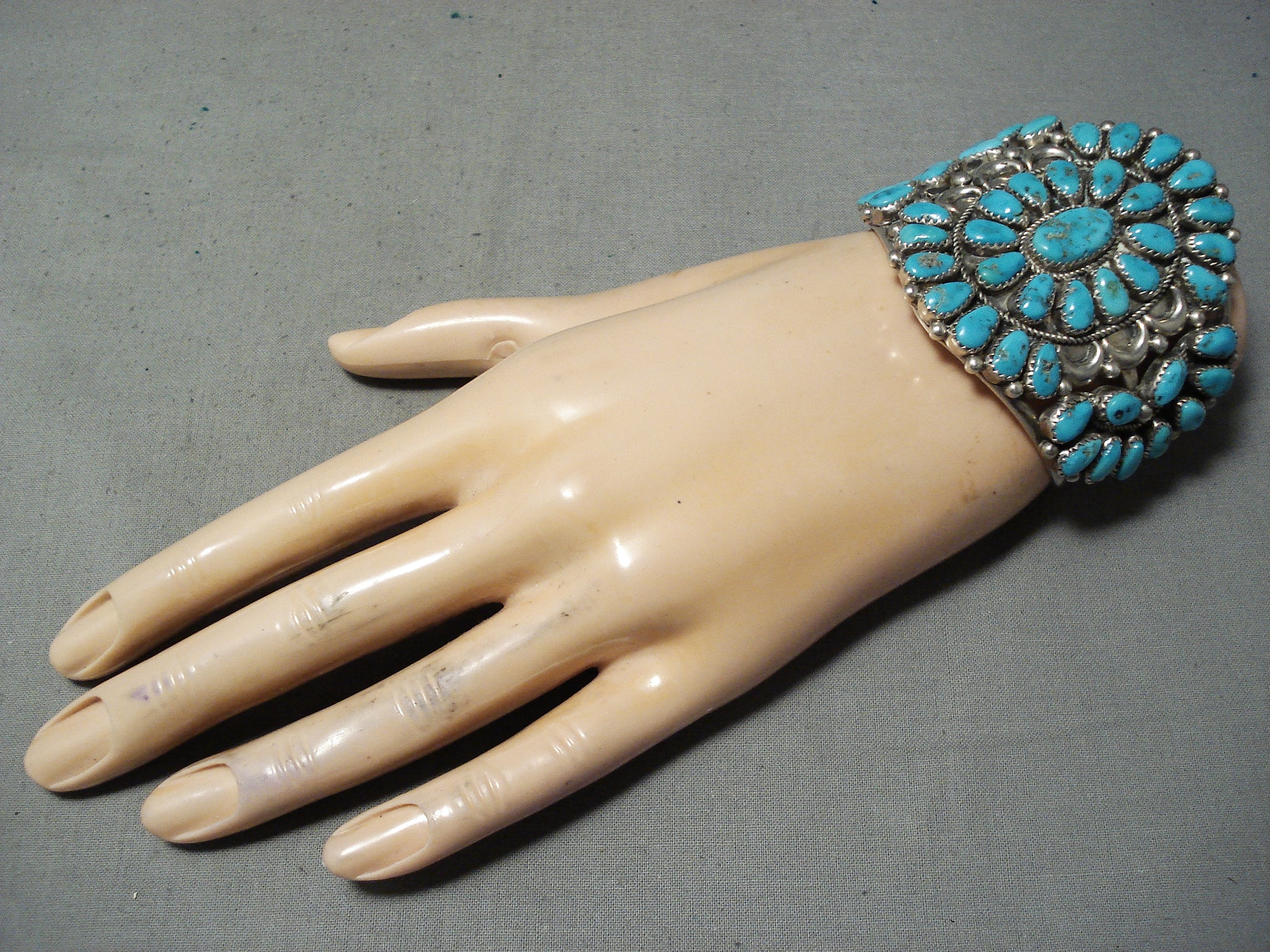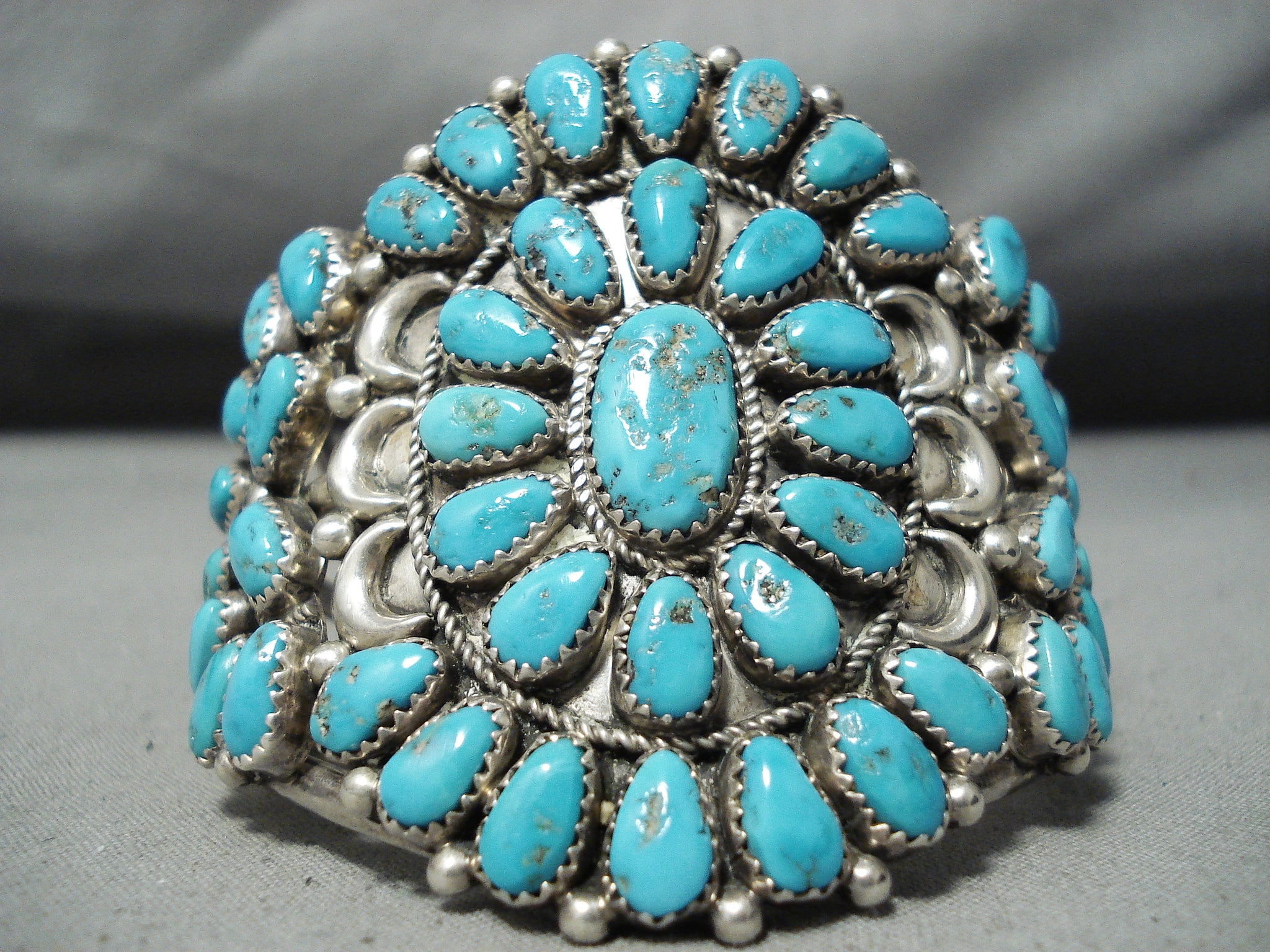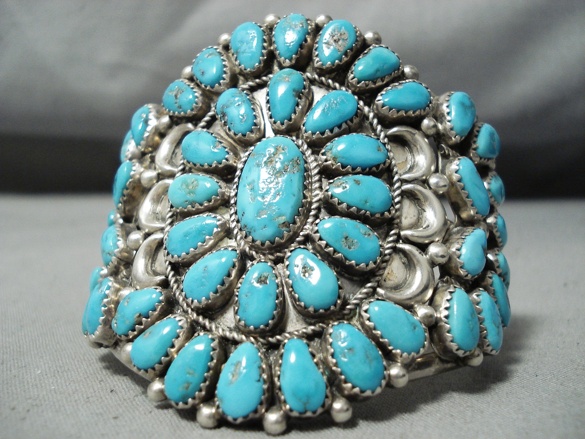 Signed Vintage Native American Navajo Turquoise Sterling Silver Bracelet