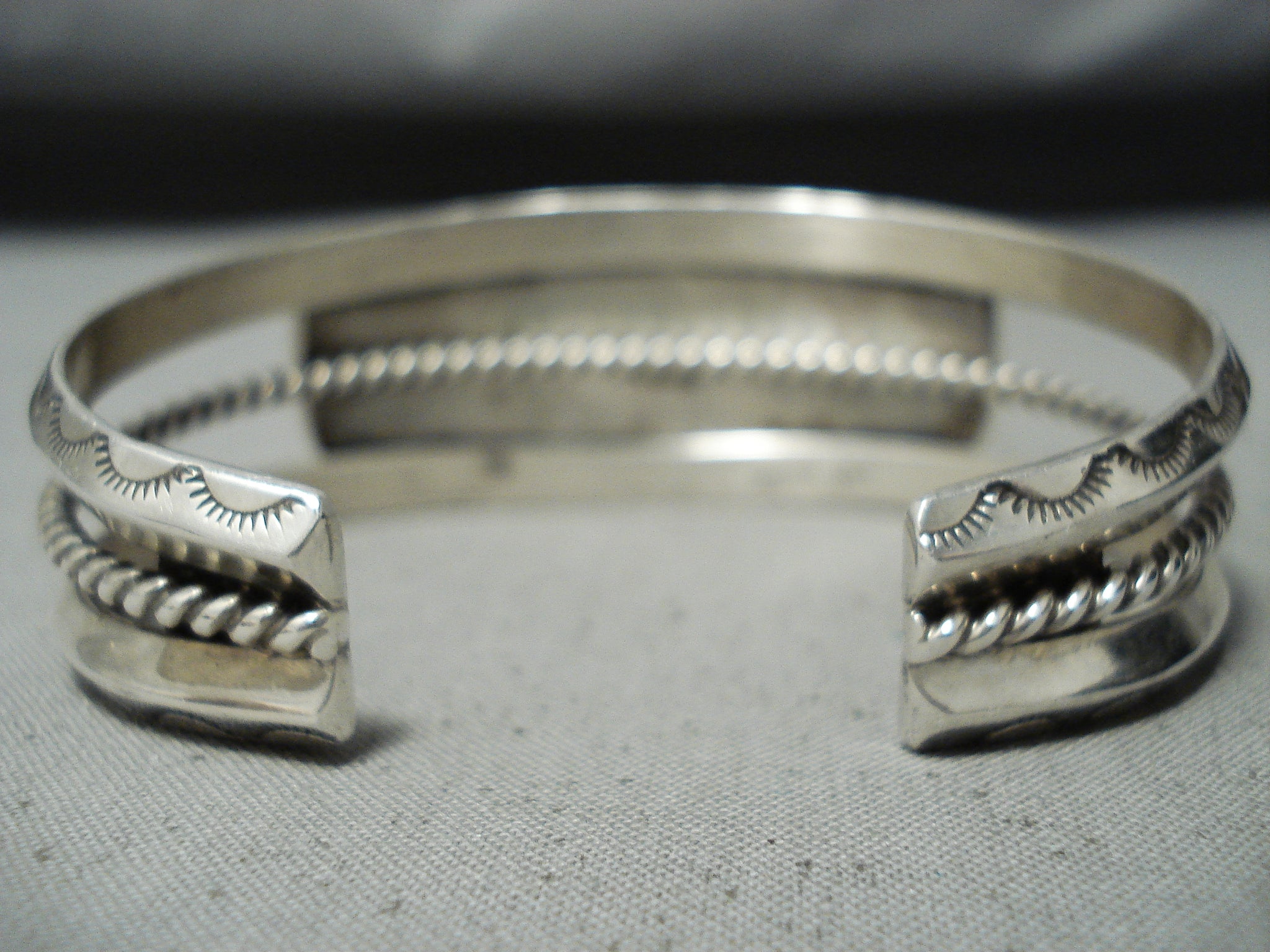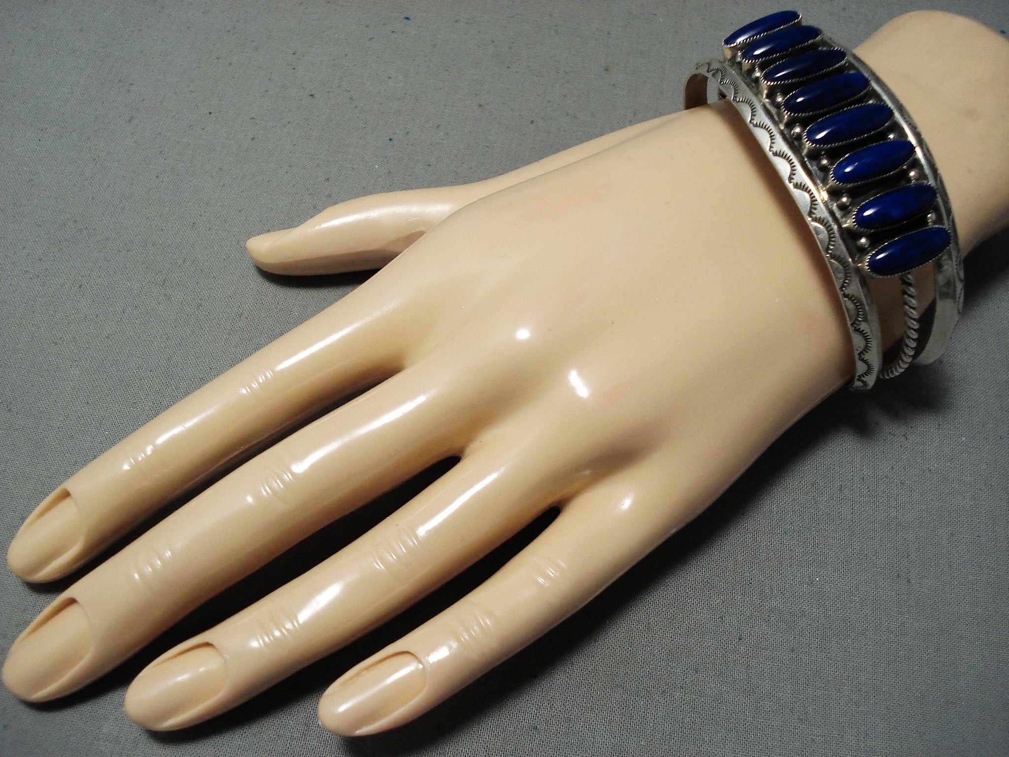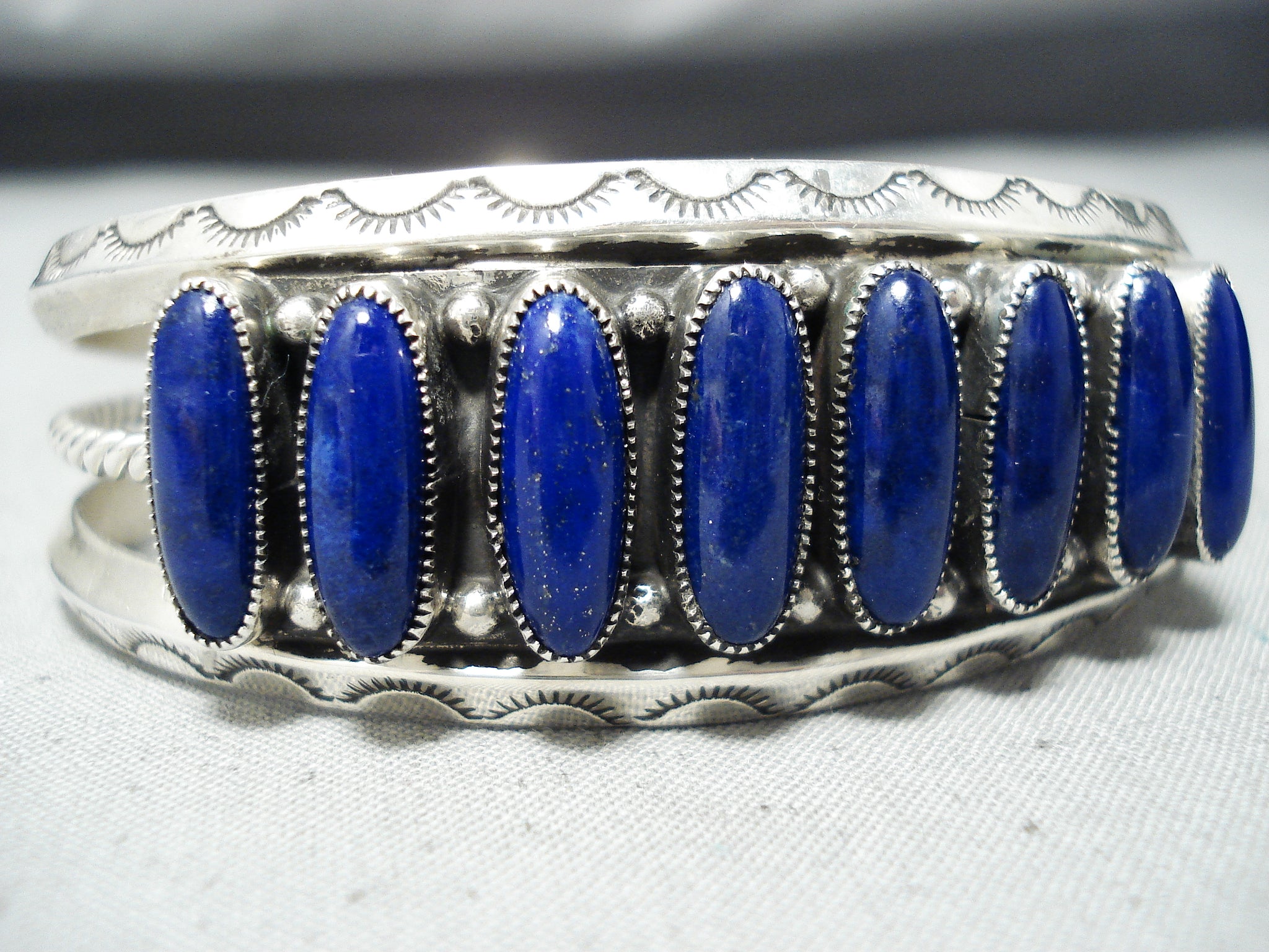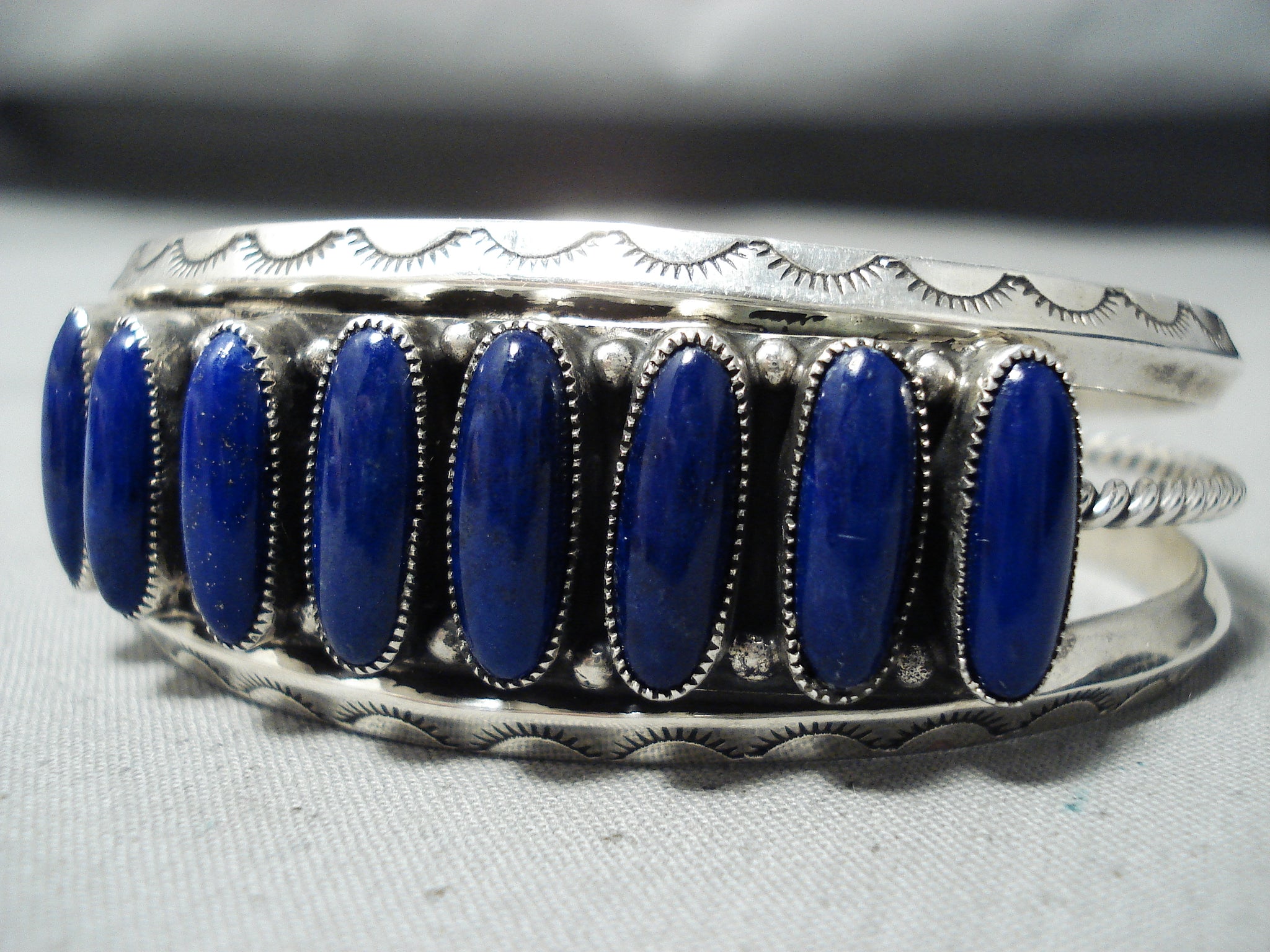Signed Vintage Native American Navajo Yazzie Lapis Sterling Silver Bracelet