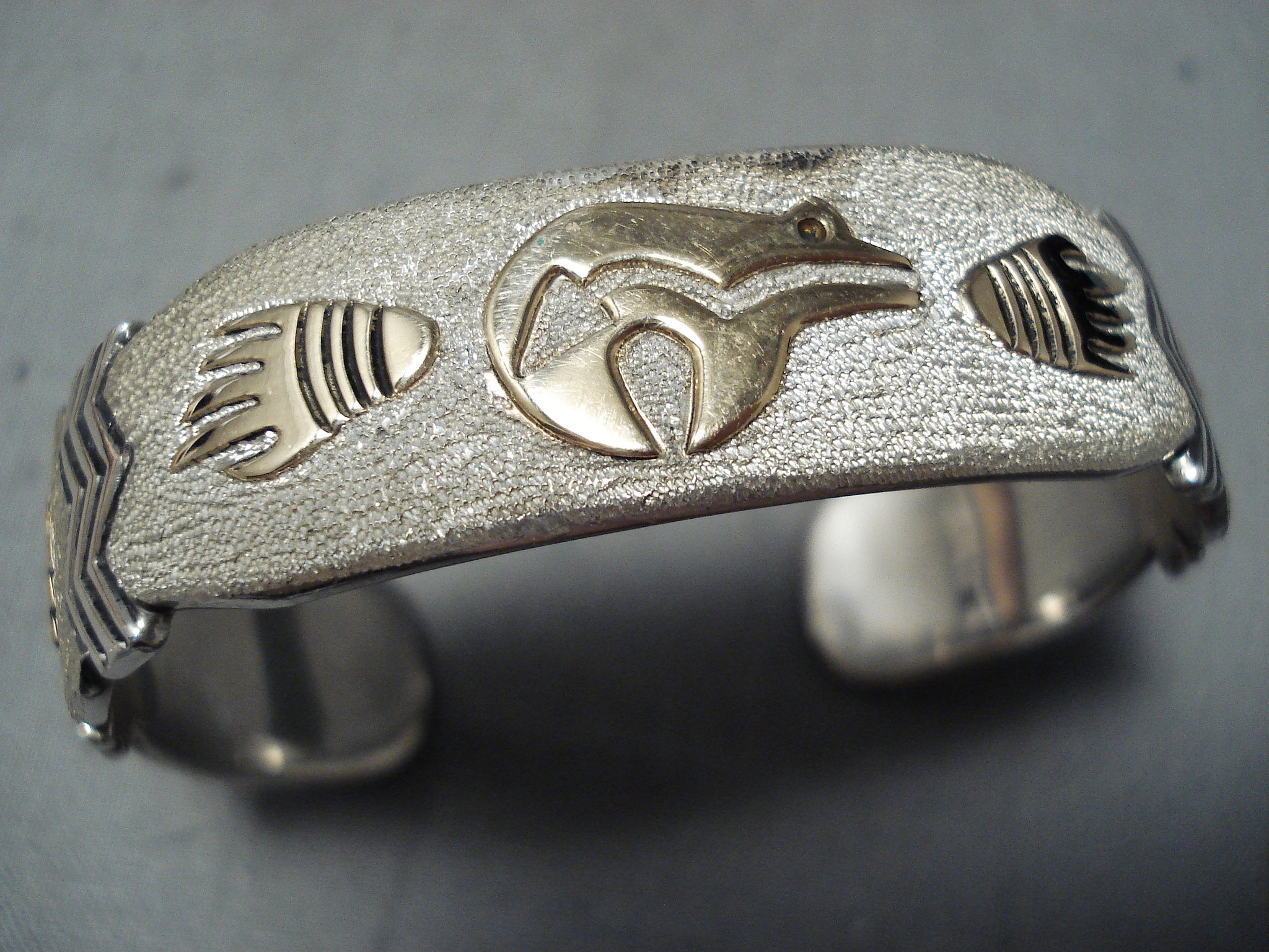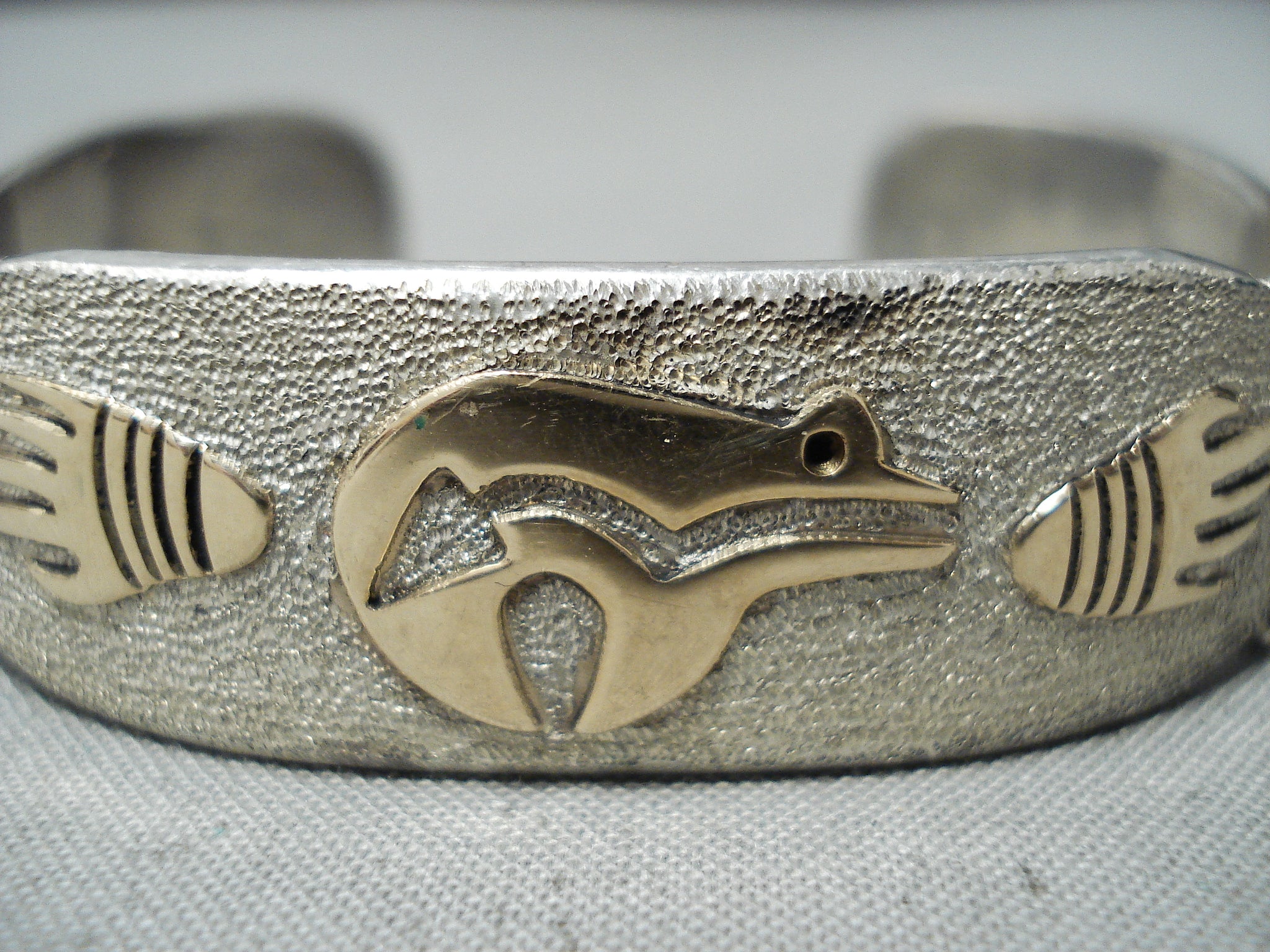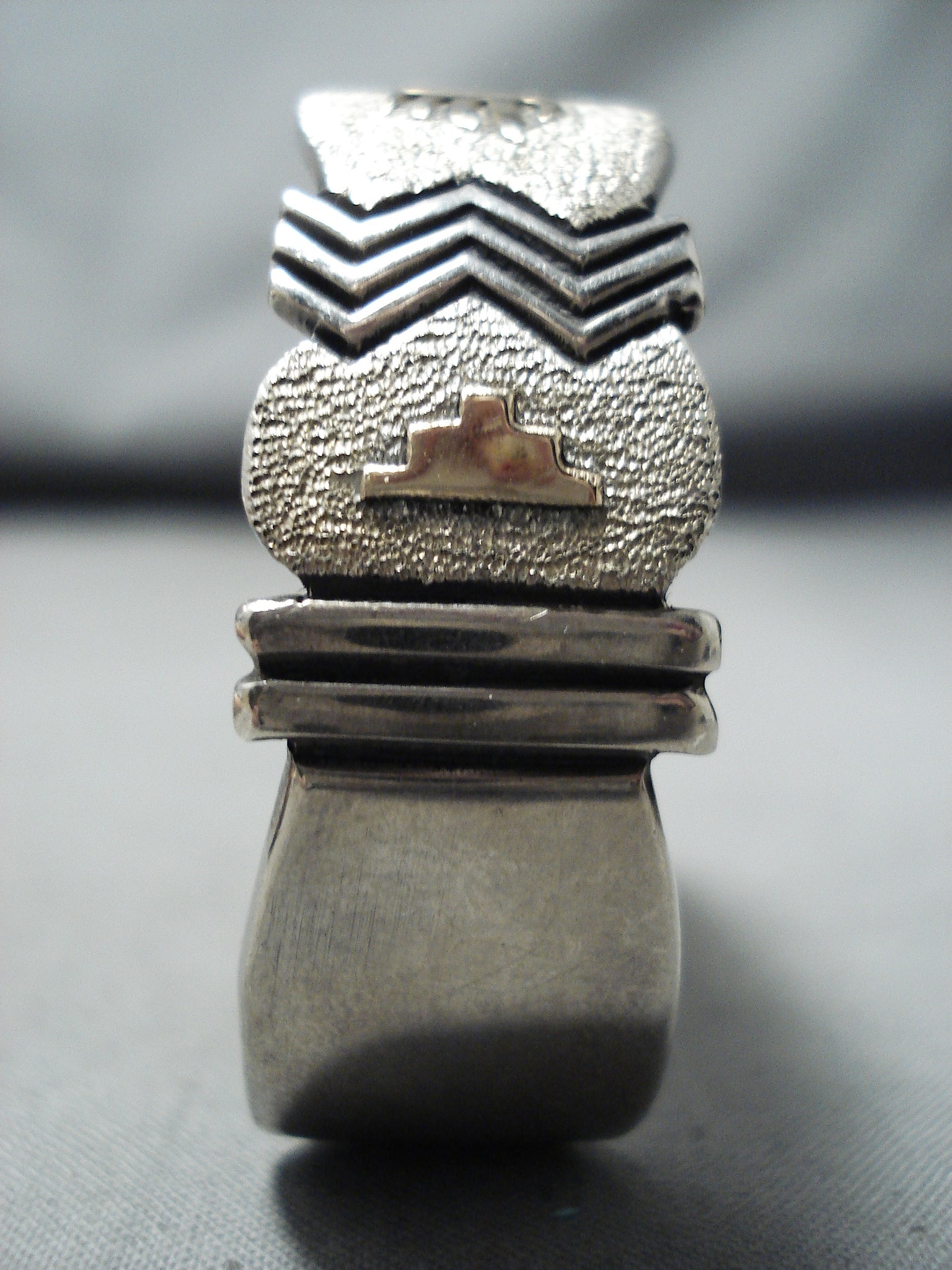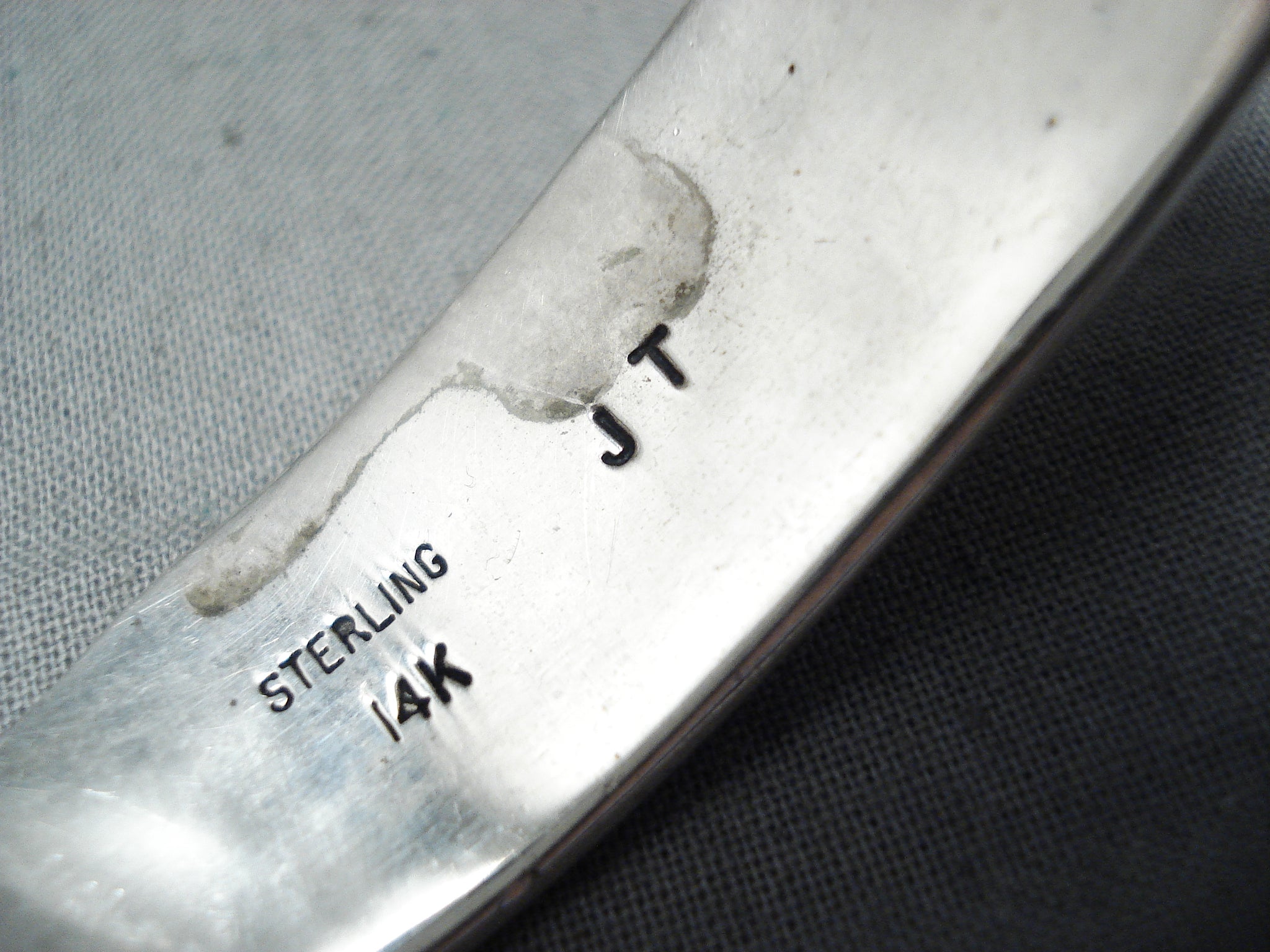Signed Vintage Navajo Native American 14k Gold Sterling Silver Bracelet