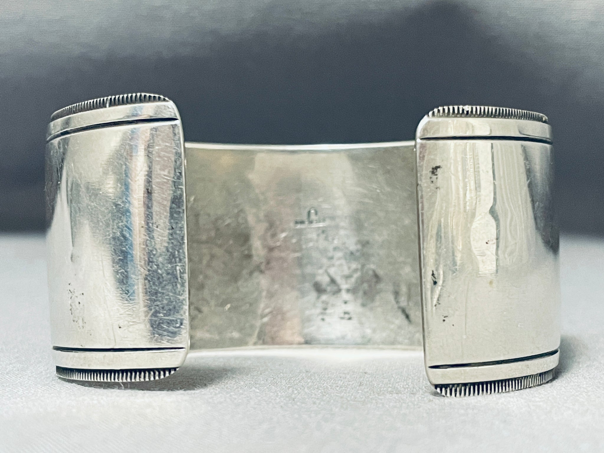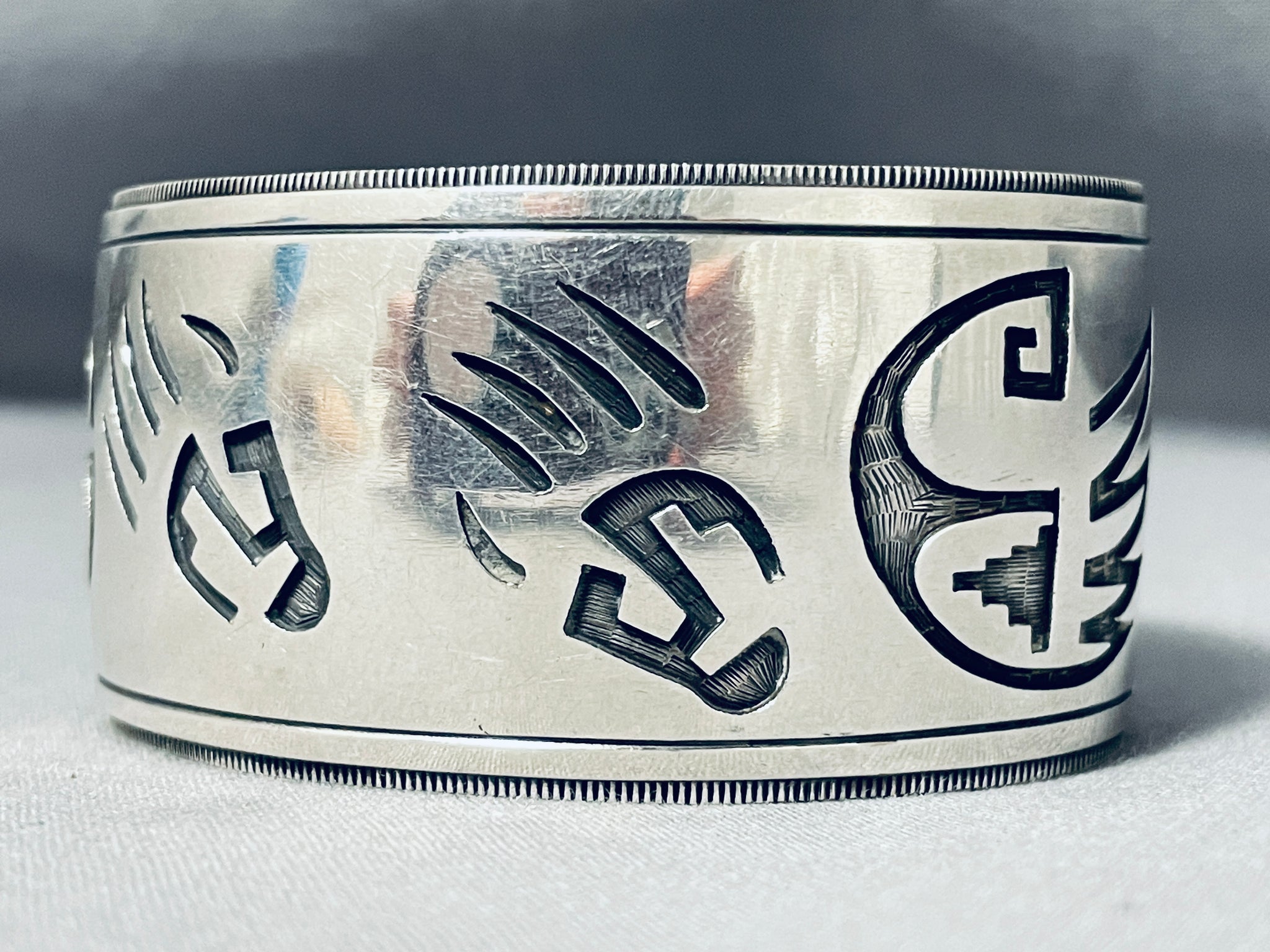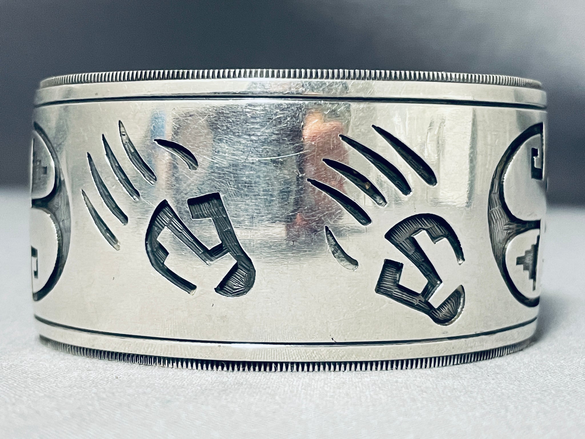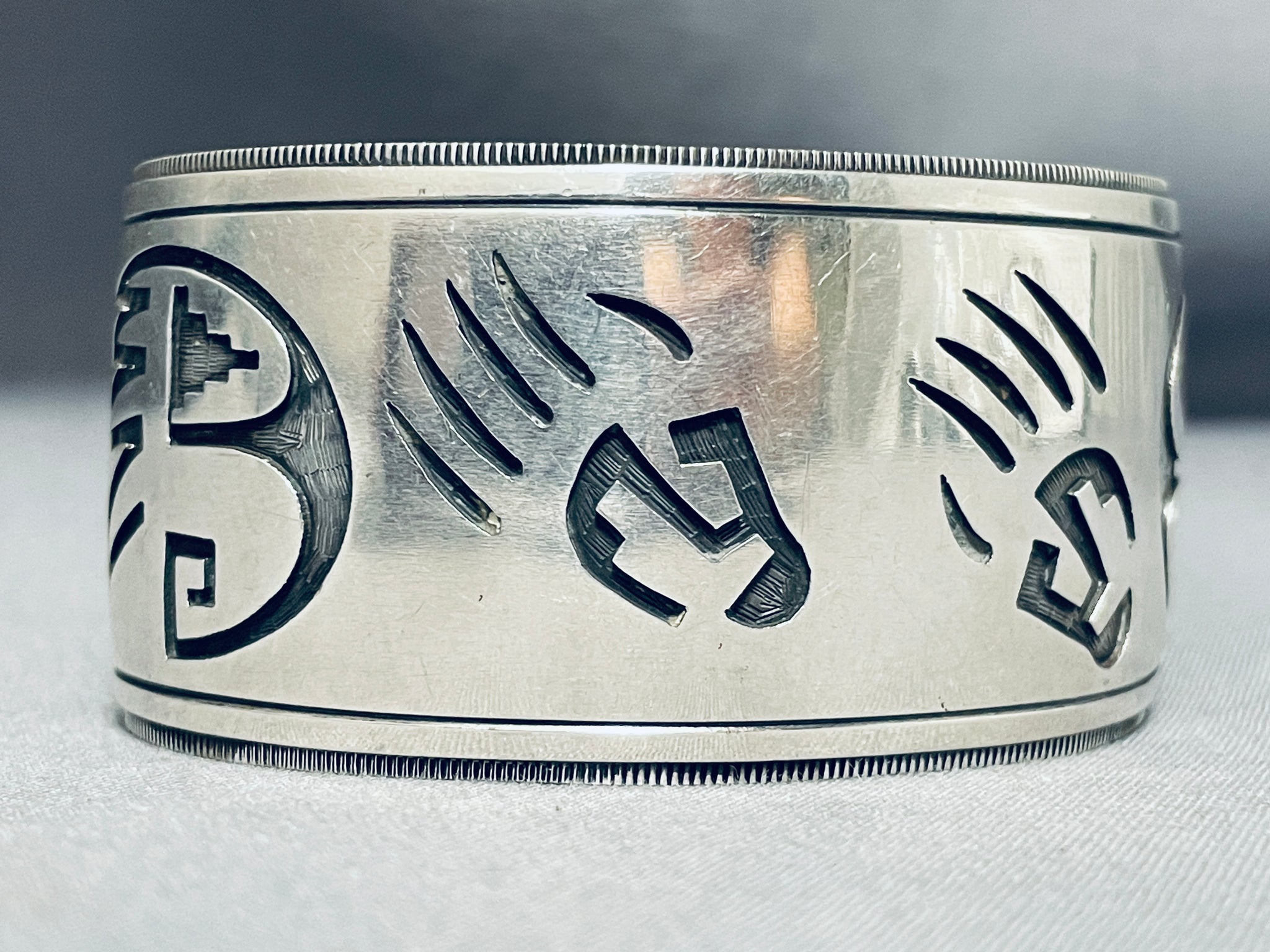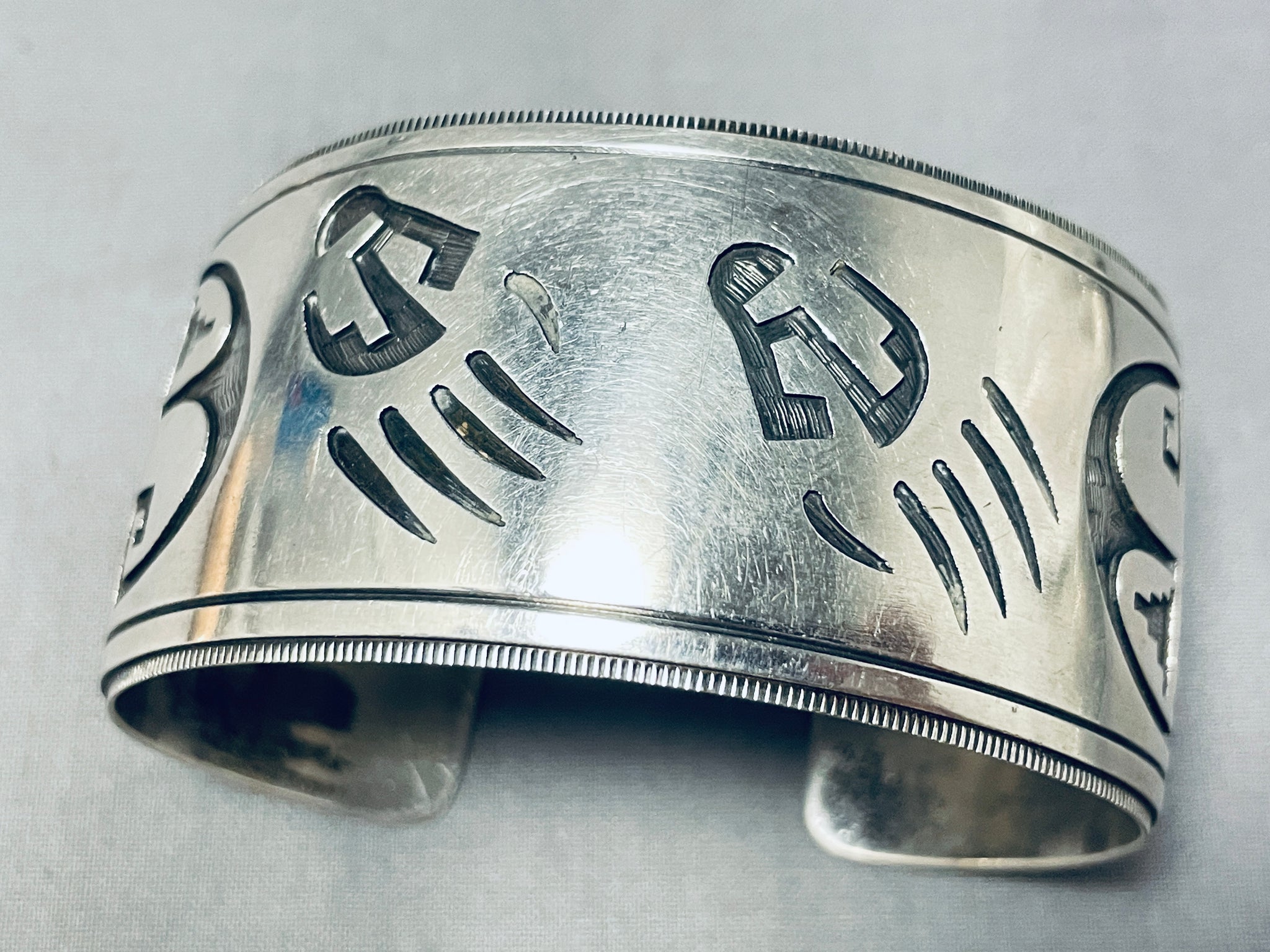 Signed Vintage Wide Native American Navajo Sterling Silver Paw Bracelet