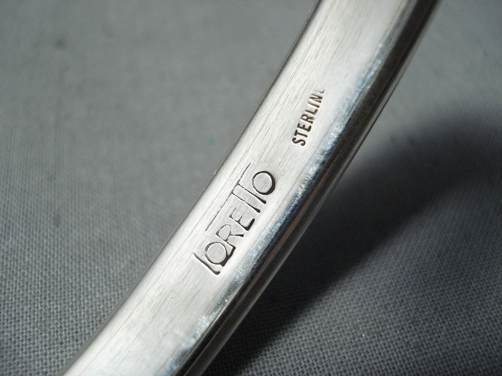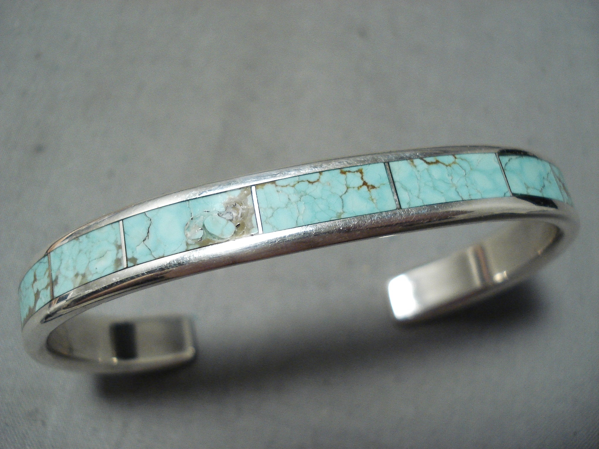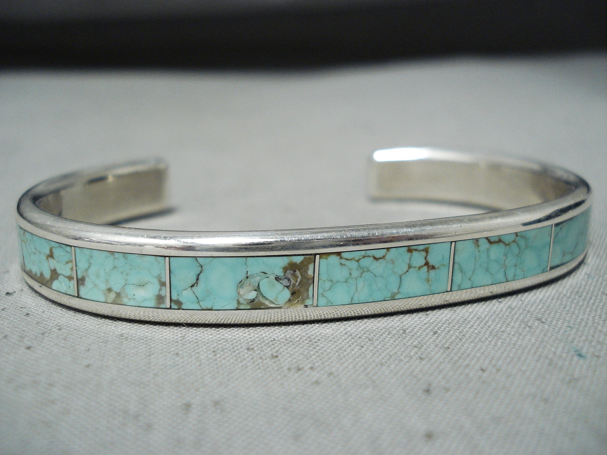 Signed Zuni Native American 8 Turquoise Inlay Sterling Silver Bracelet