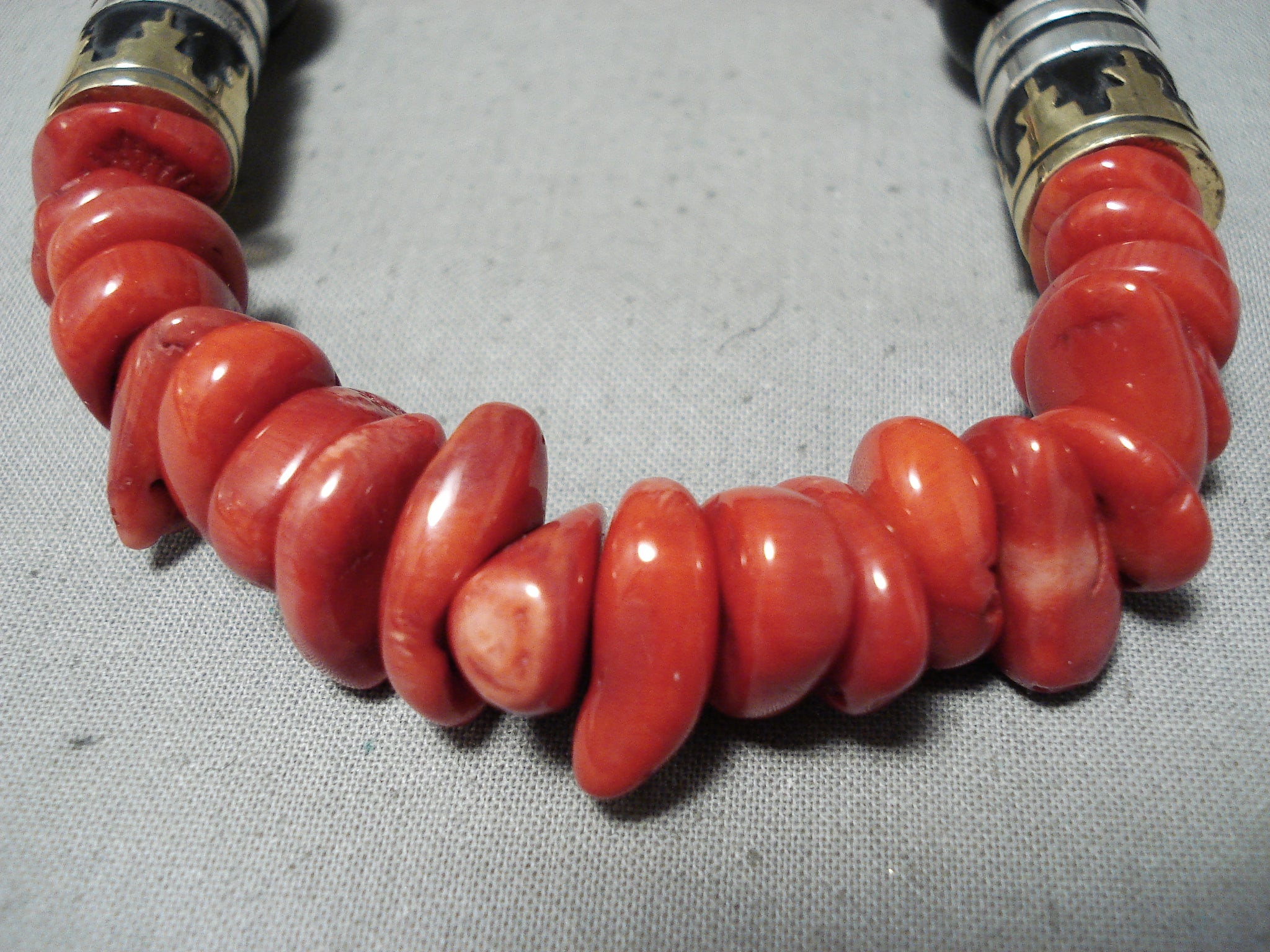 Singer Chunky Coral Native American Navajo Sterling Silver Necklace