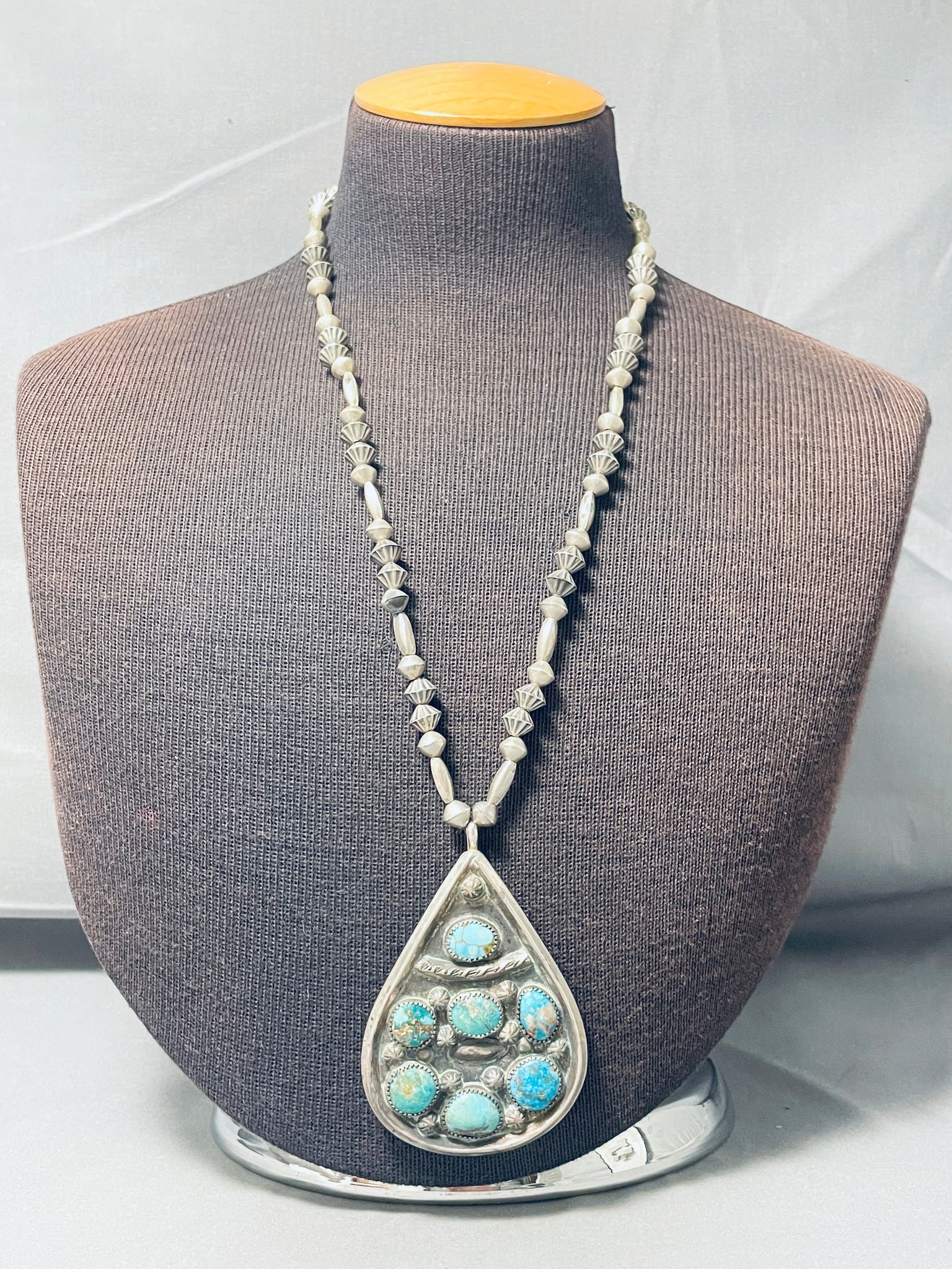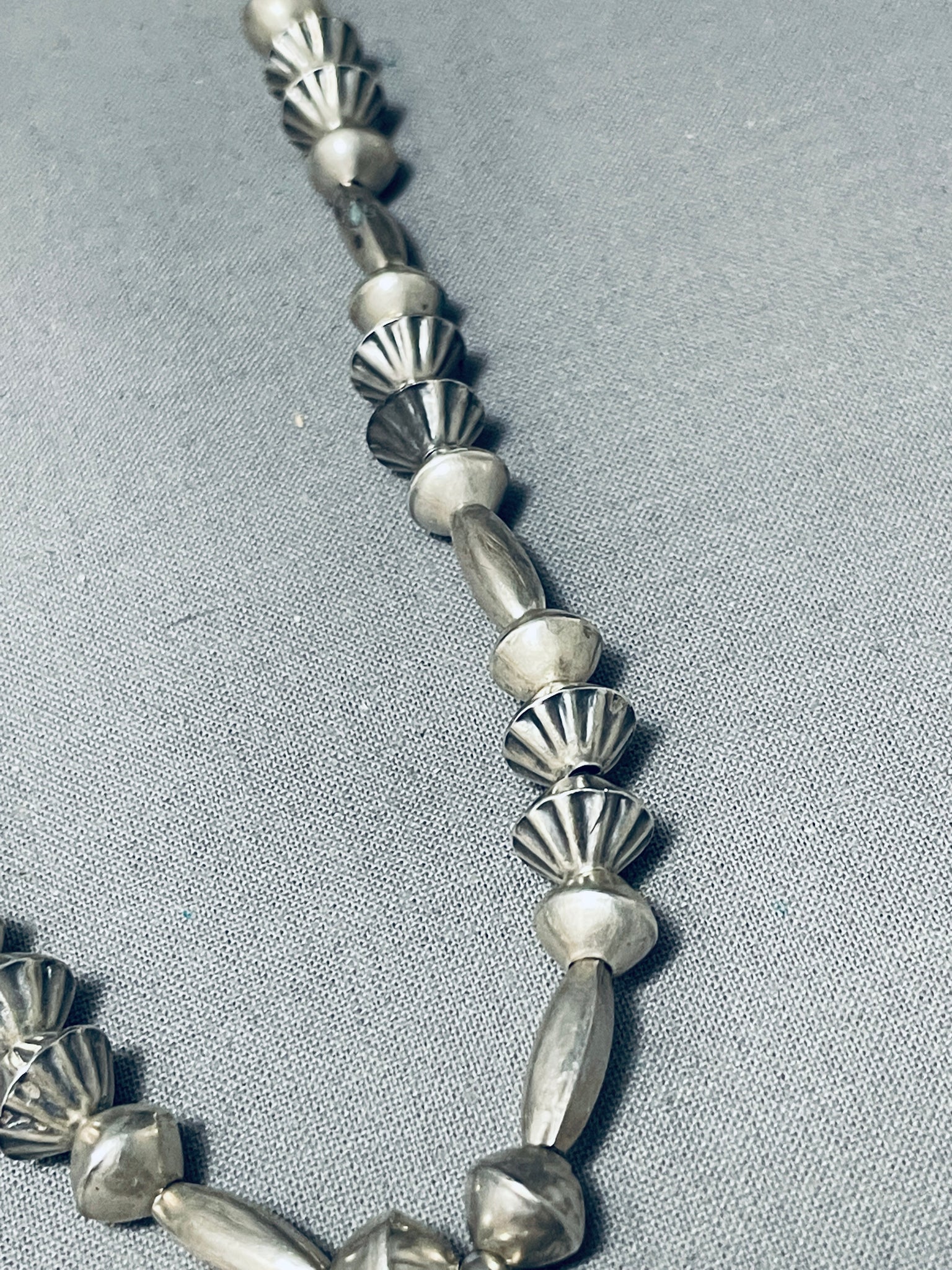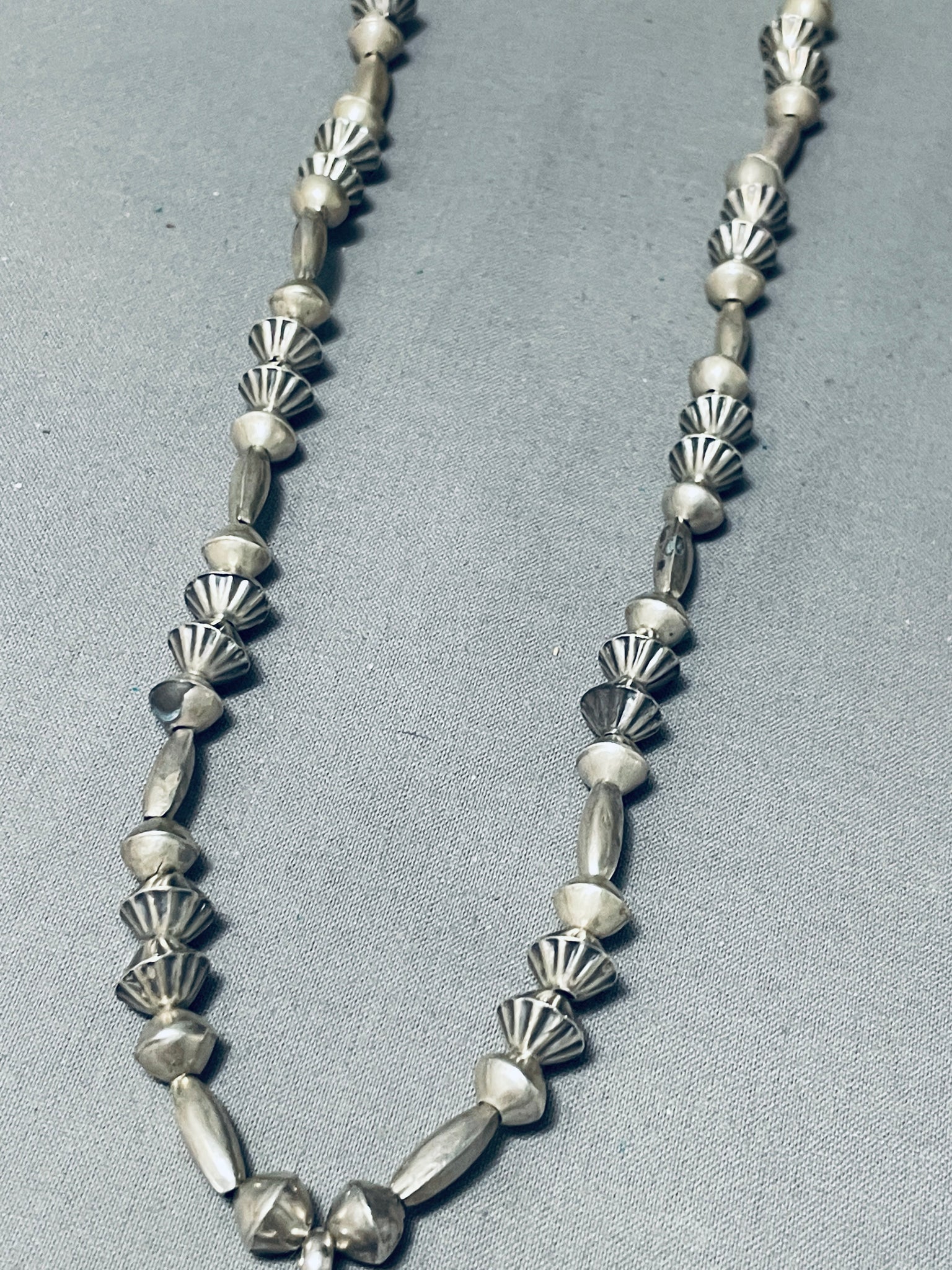 Skilled Hand Tooled Hogan Bead Vintage Native American Navajo Turquoise Sterling Silver Necklace