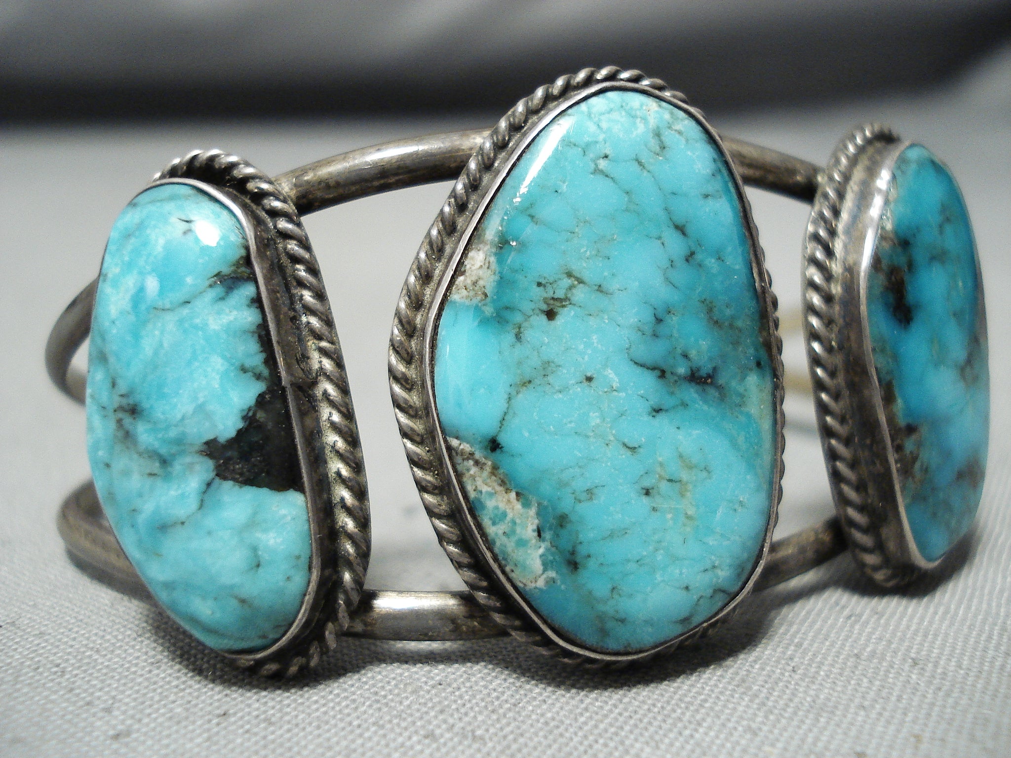 Small Wrist Vintage Native American Navajo Blue Diamond Turquoise Sterling Silver Bracelet