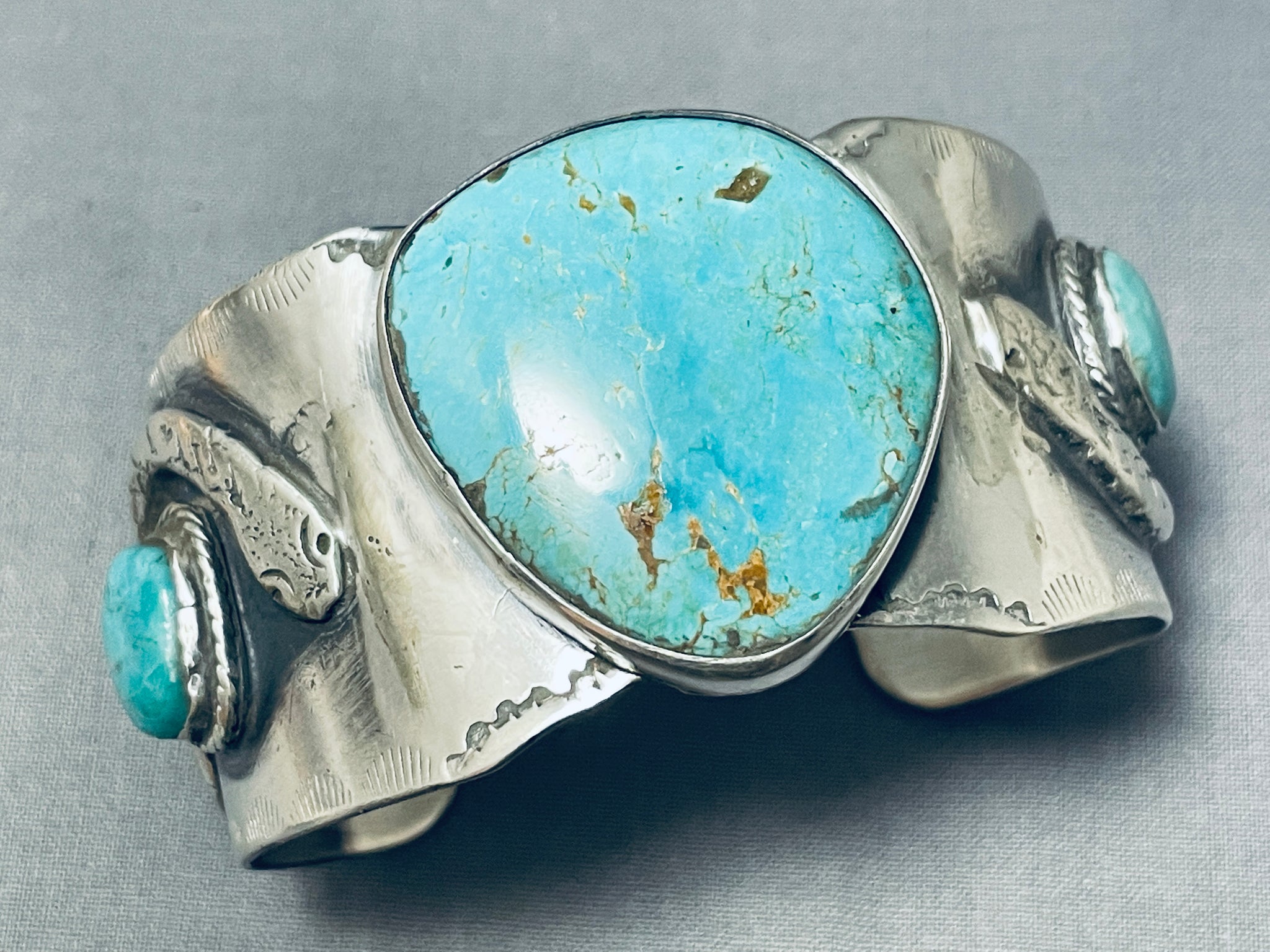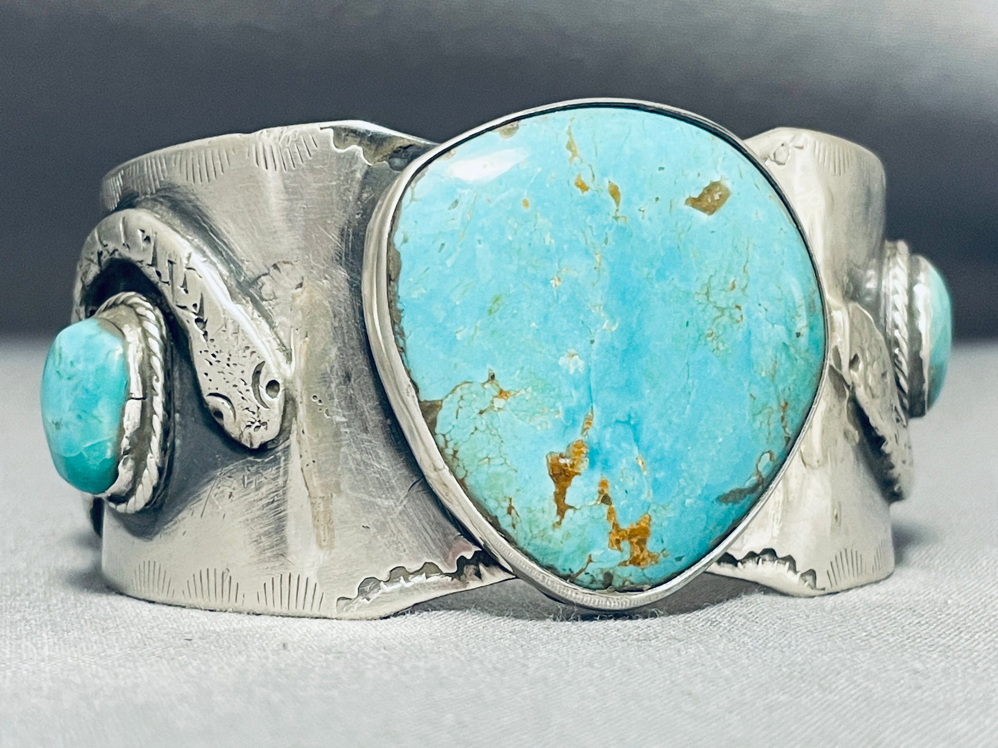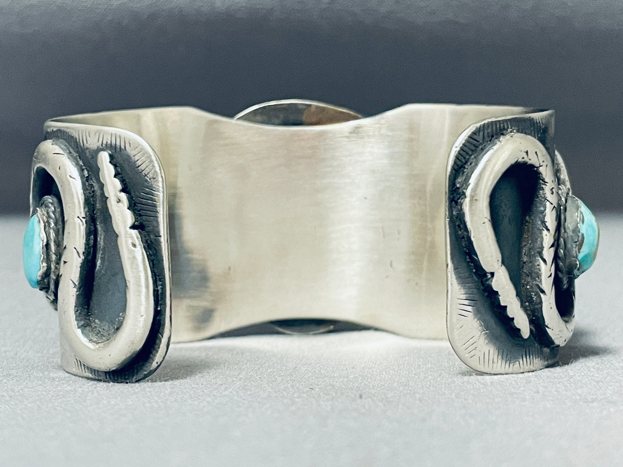 Snake Vintage Native American Navajo Kingman Turquoise Sterling Silver Bracelet