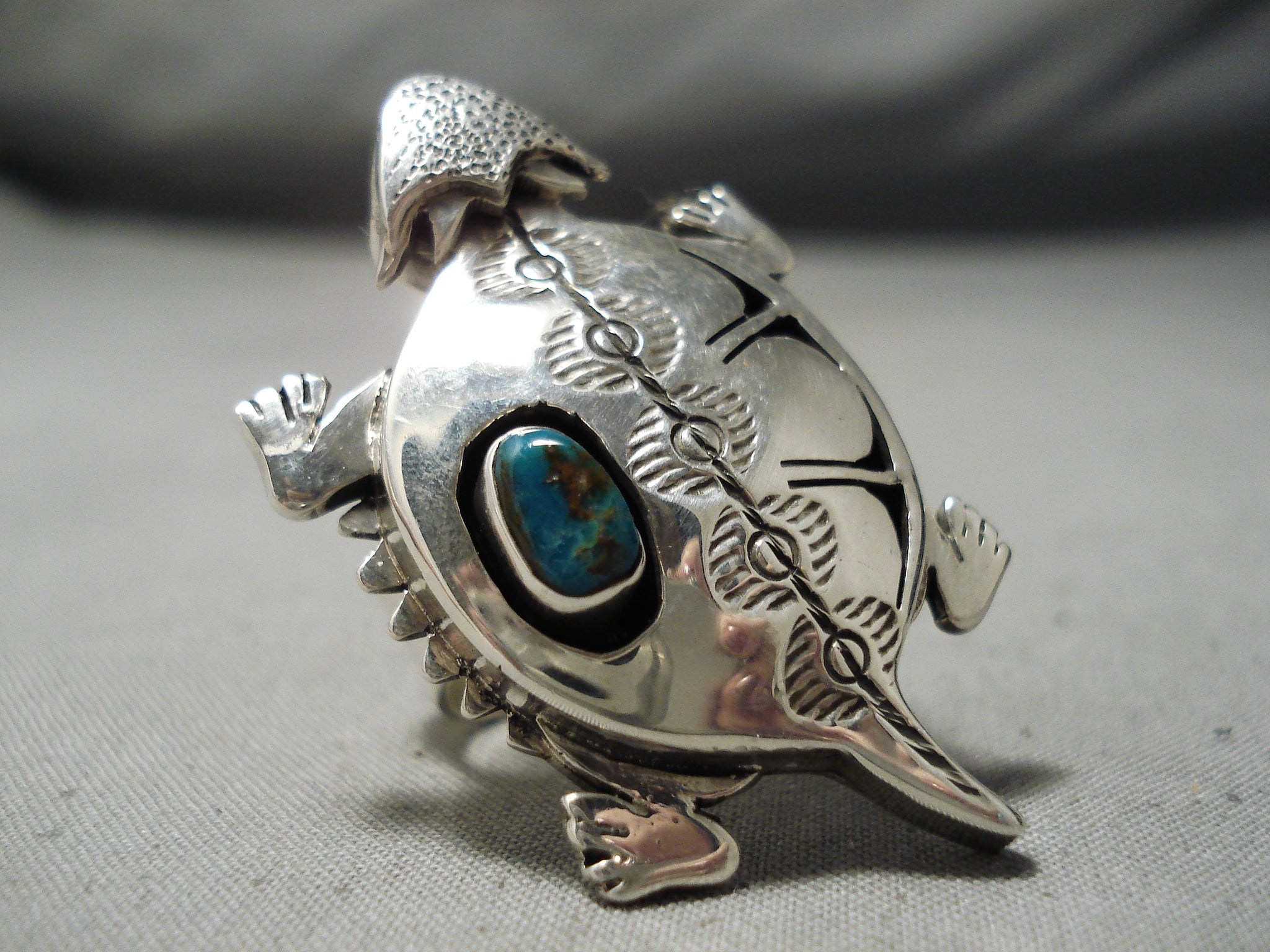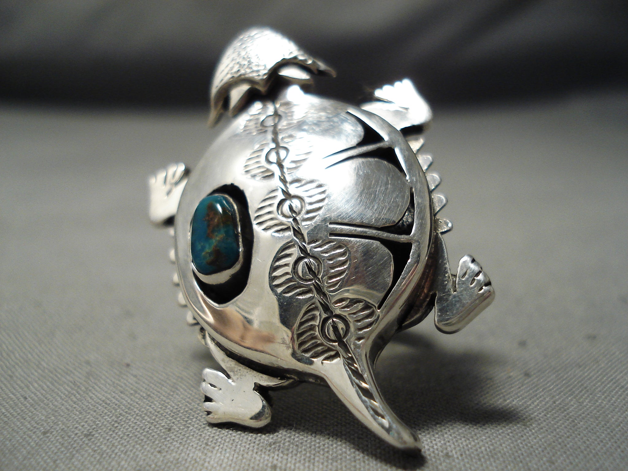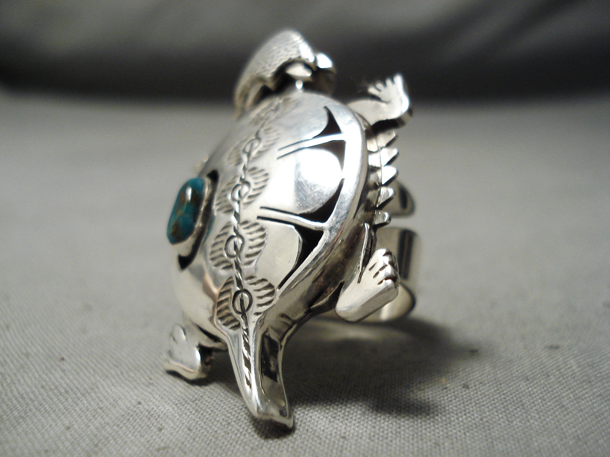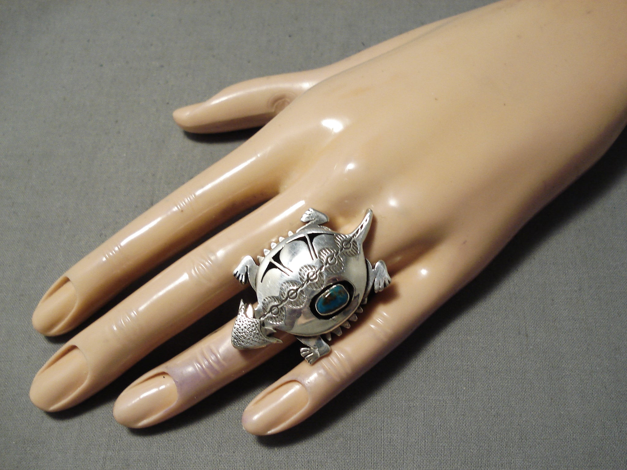 So Detailed Huge Native American Navajo Toad Turquoise Sterling Silver Ring