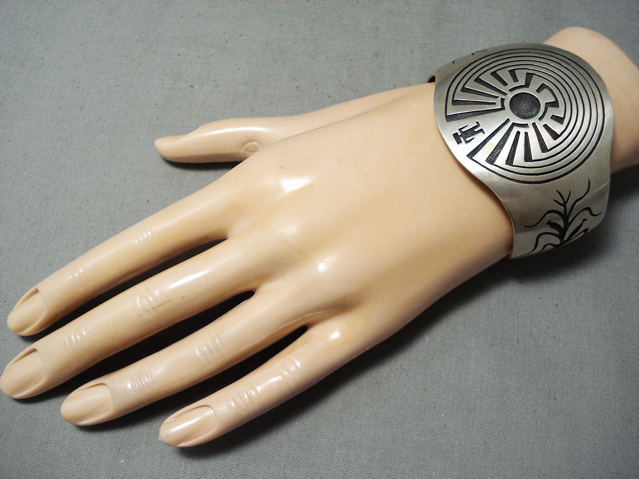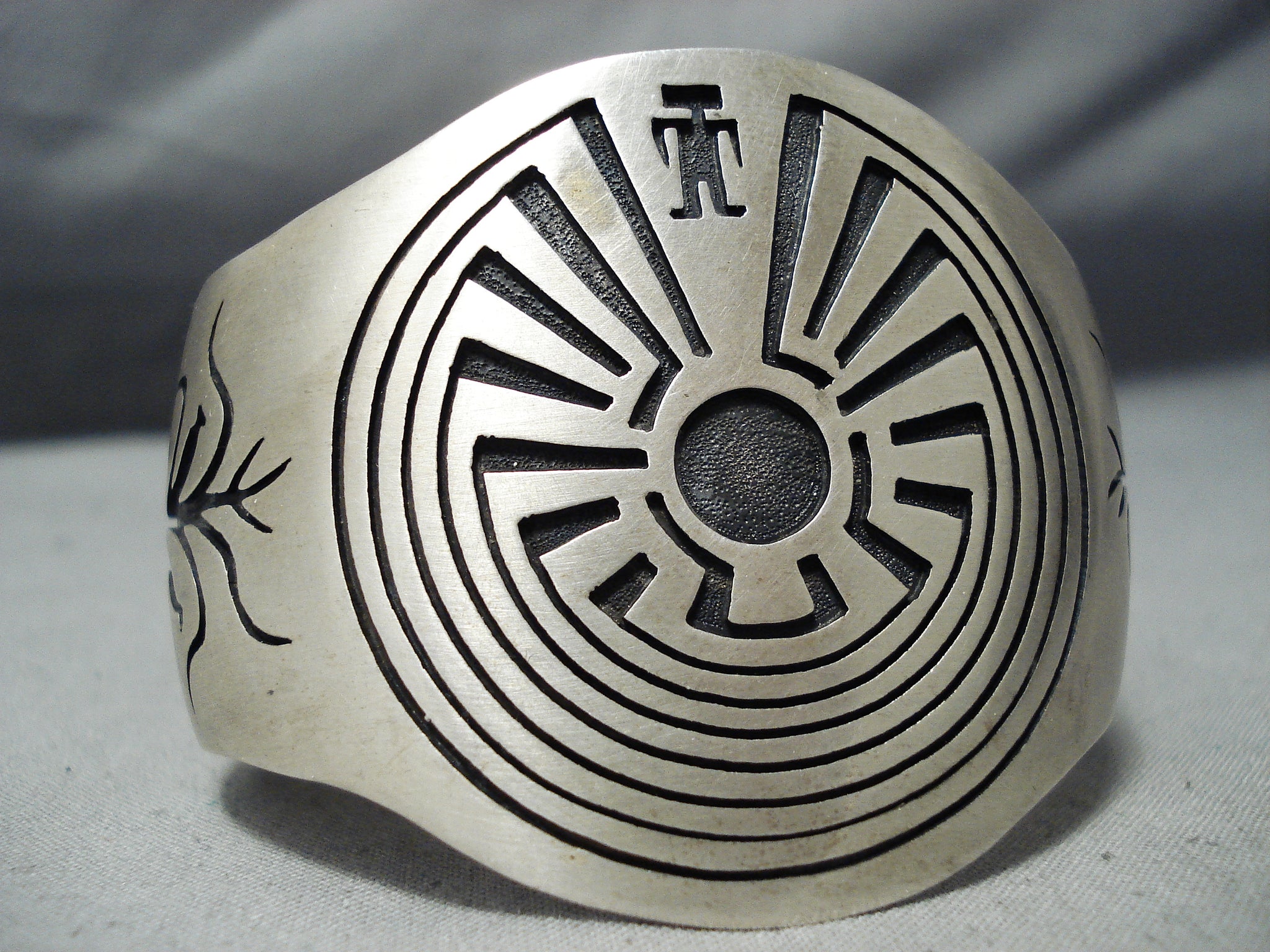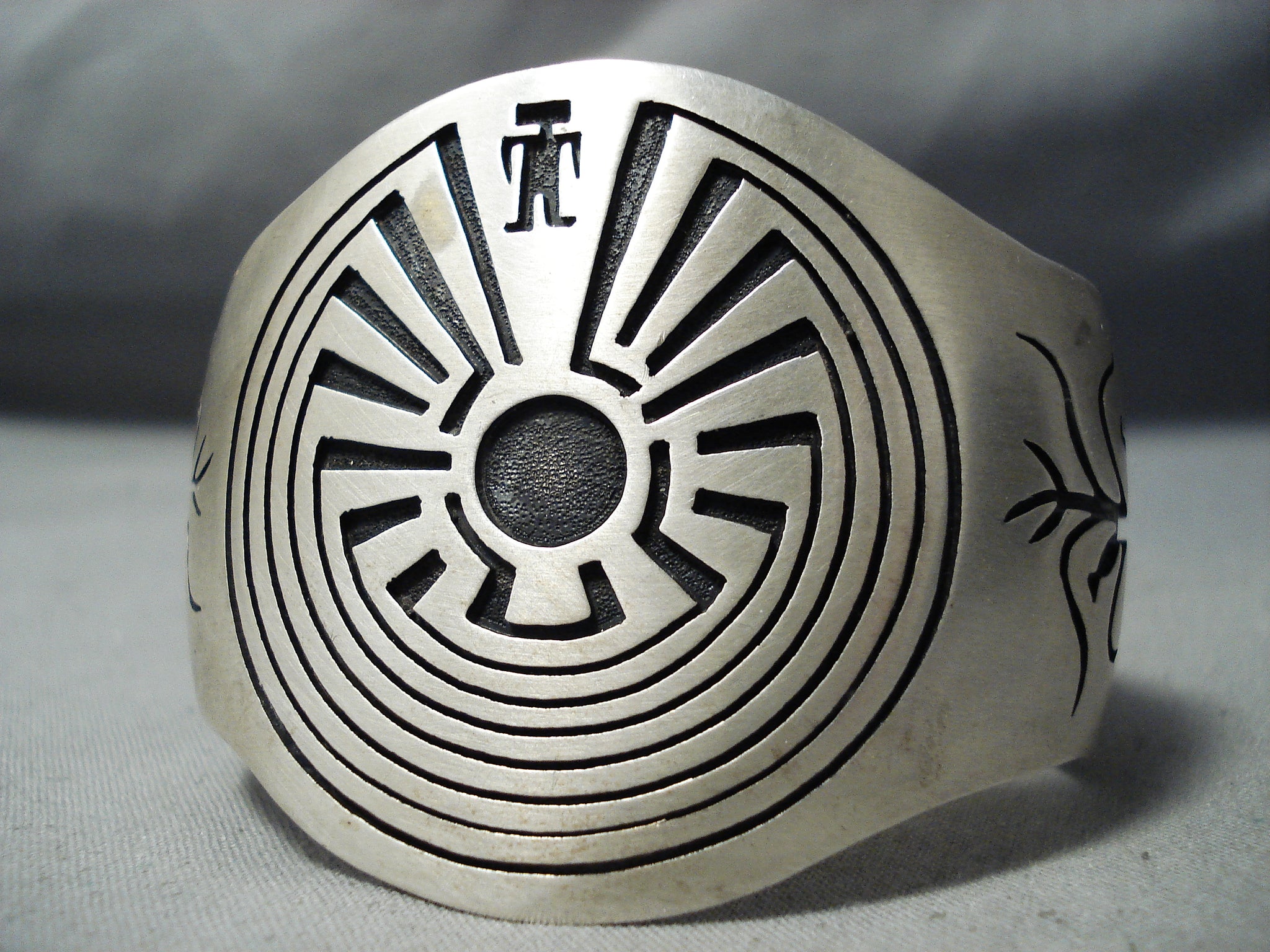 So Intricate! Vintage Native American Navajo Symbolic Sterling Silver Maze Bracelet Cuff