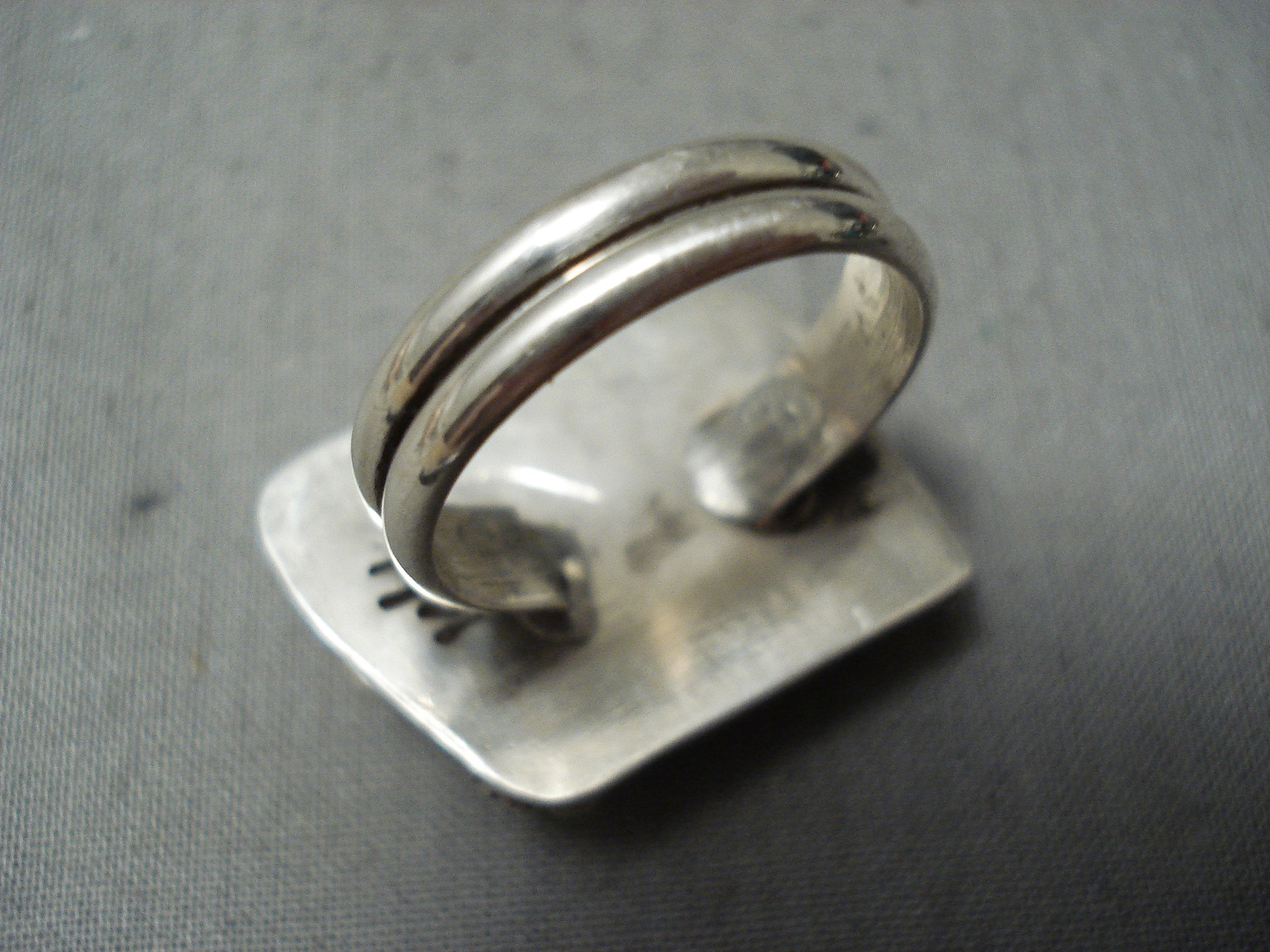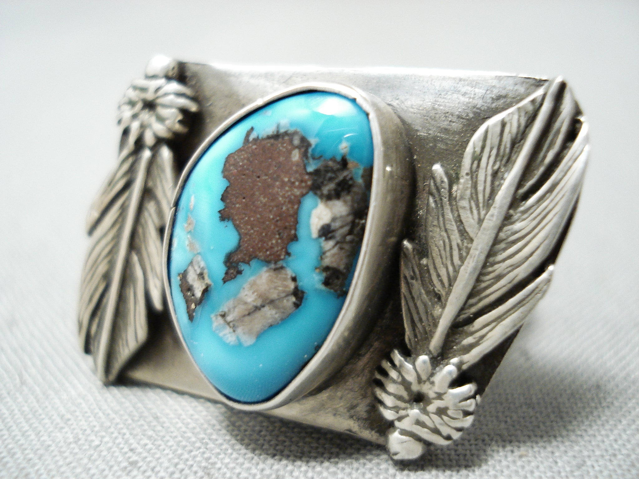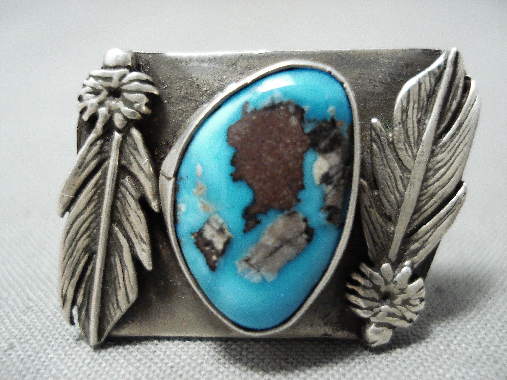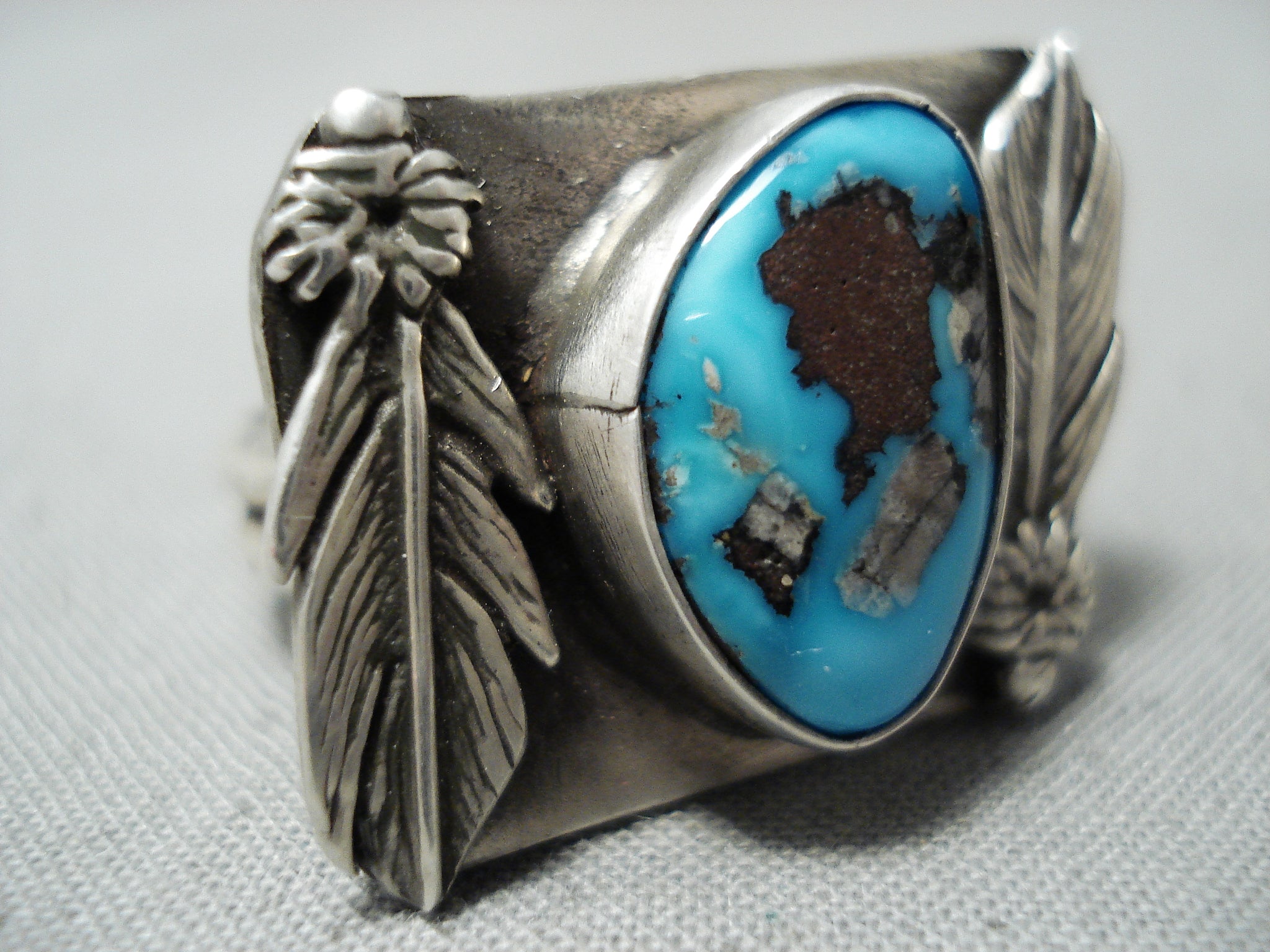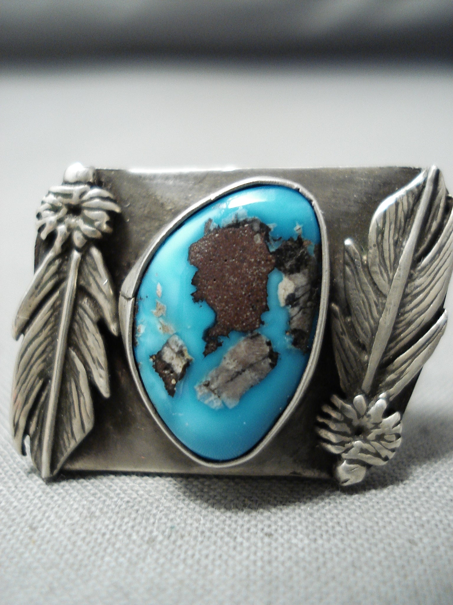 So Unique! Vintage Native American Navajo Old Deposit Turquoise Sterling Silver Feather Ring